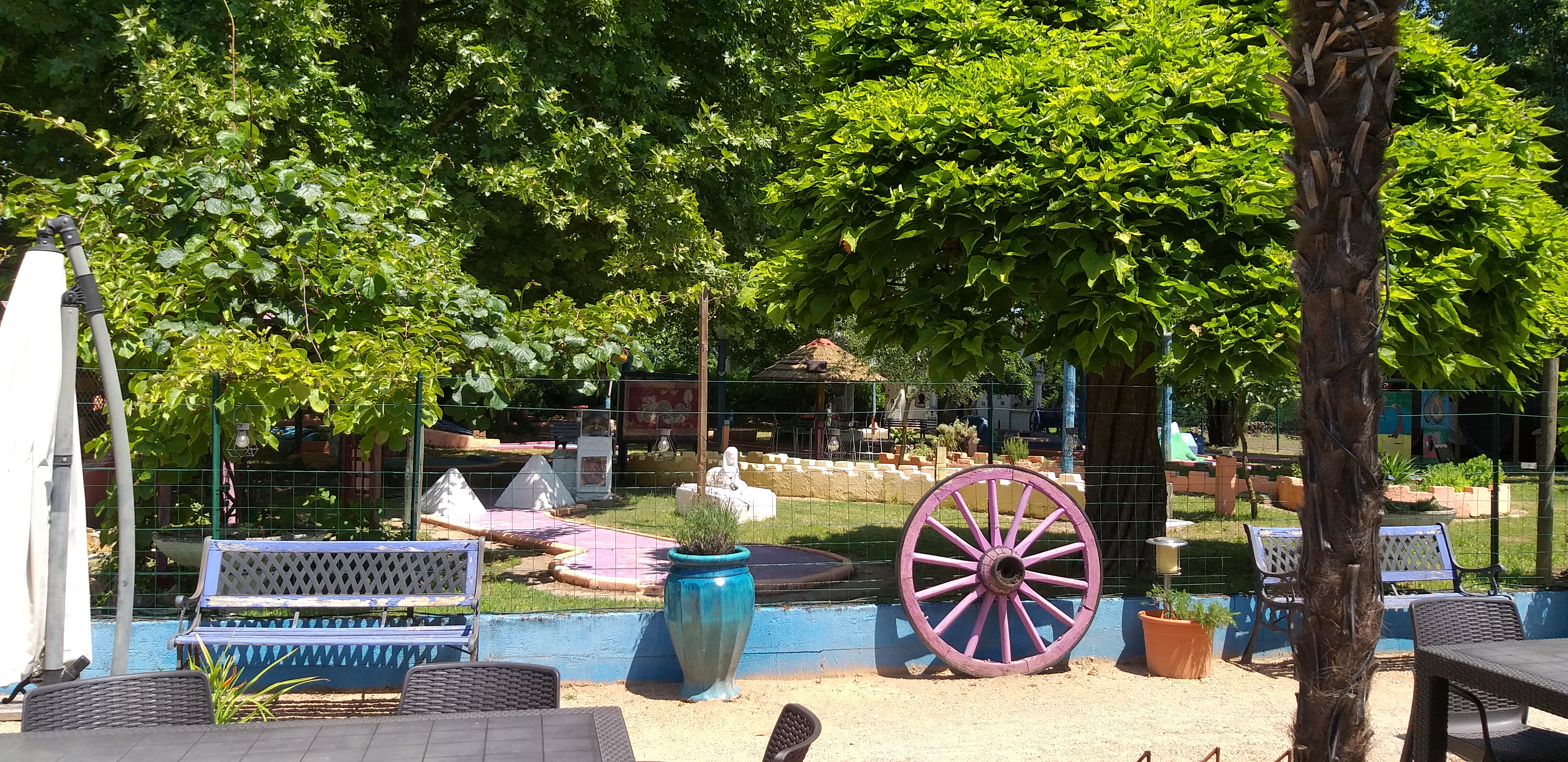 Cette année encore le CRAZY GOLF a fait peau neuve : Soucieux de vous accueillir dans un endroit toujours plus agréable, le parcours a revêtu de nouvelles couleurs et le parc s’est enrichi de nouveaux palmiers et farés tahitiens, ainsi que d’une volière, qui ravira les plus jeunes ! Les trampolines extérieurs, ping-pong, piste de pétanque et autres jeux de table vous garantissent un après-midi de plein air réussi!