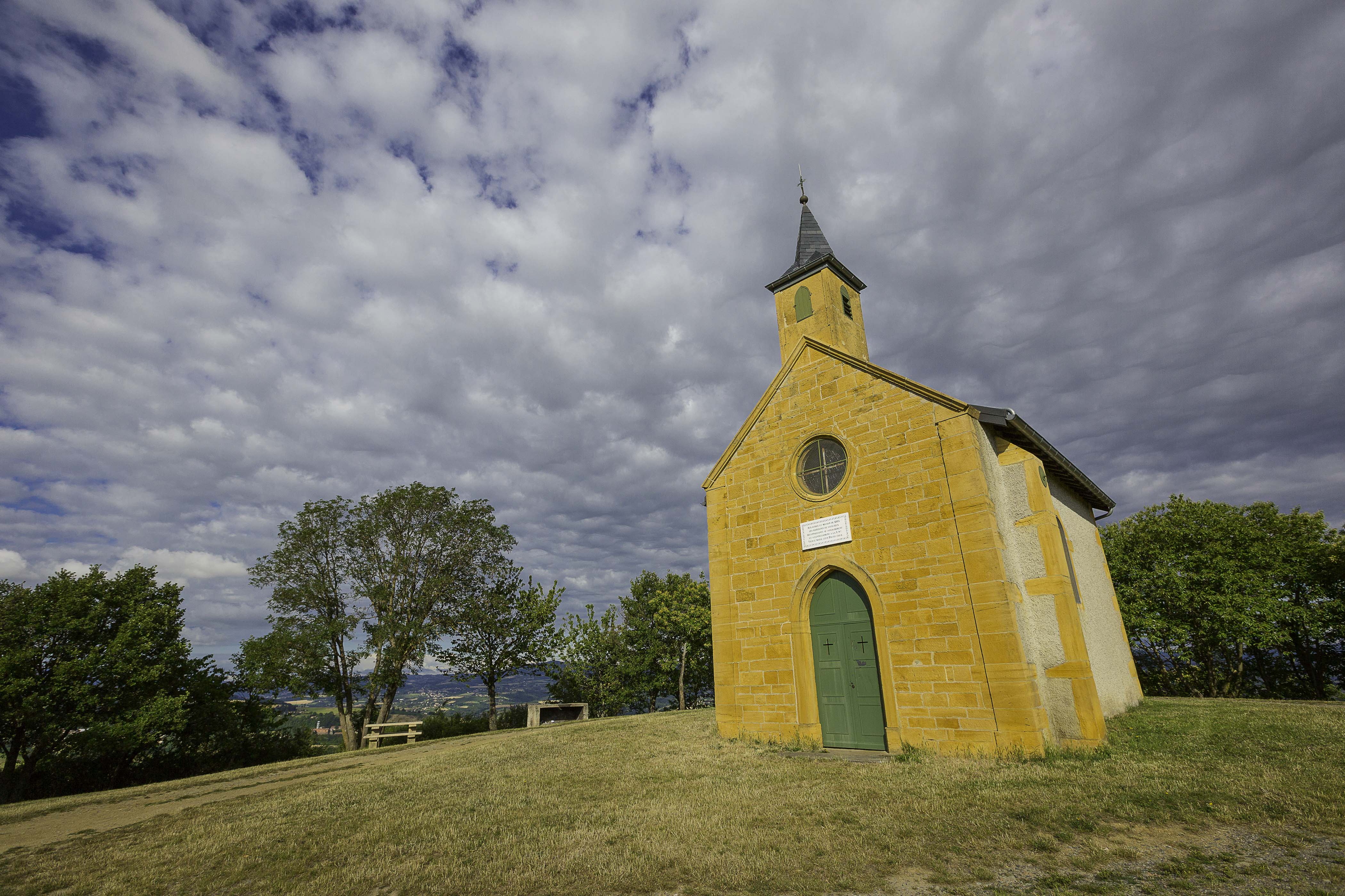 Édifiée en 1869 à la suite d’un ouragan, sur le crêt qui domine le village, cette chapelle votive est dédiée à la Vierge Marie. De l’esplanade, la vue s’étend sur les Monts du Lyonnais et du Beaujolais, l’agglomération de Lyon, et parfois jusqu’aux Alpes.