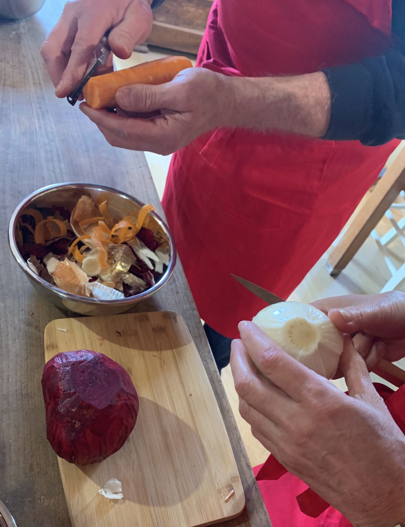 Chacun cuisine à partir des produits de base jusqu’au service à table.