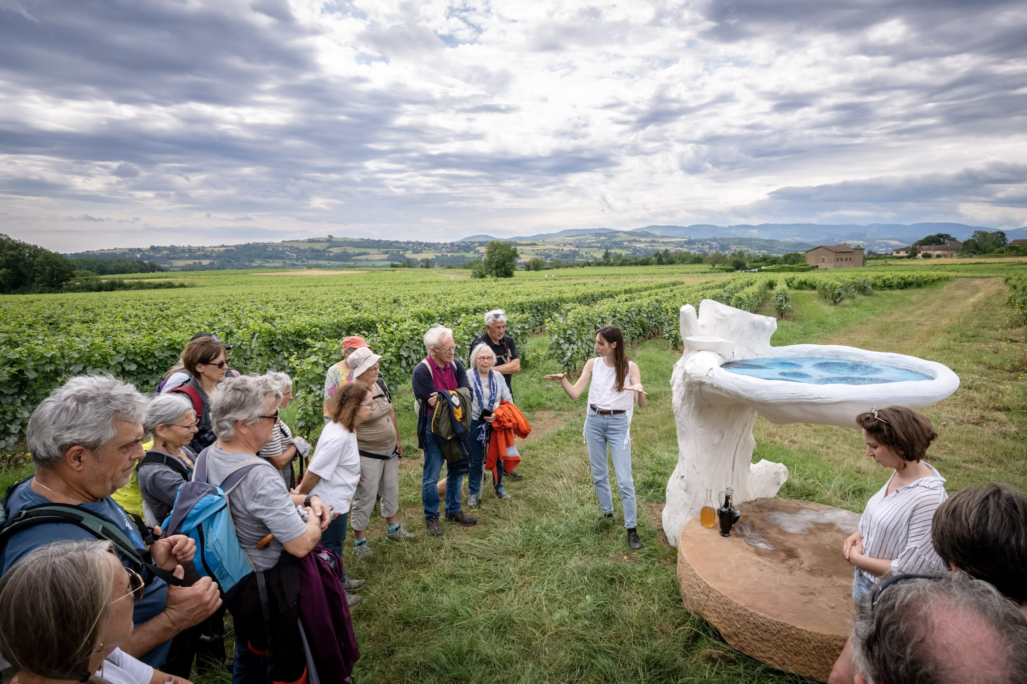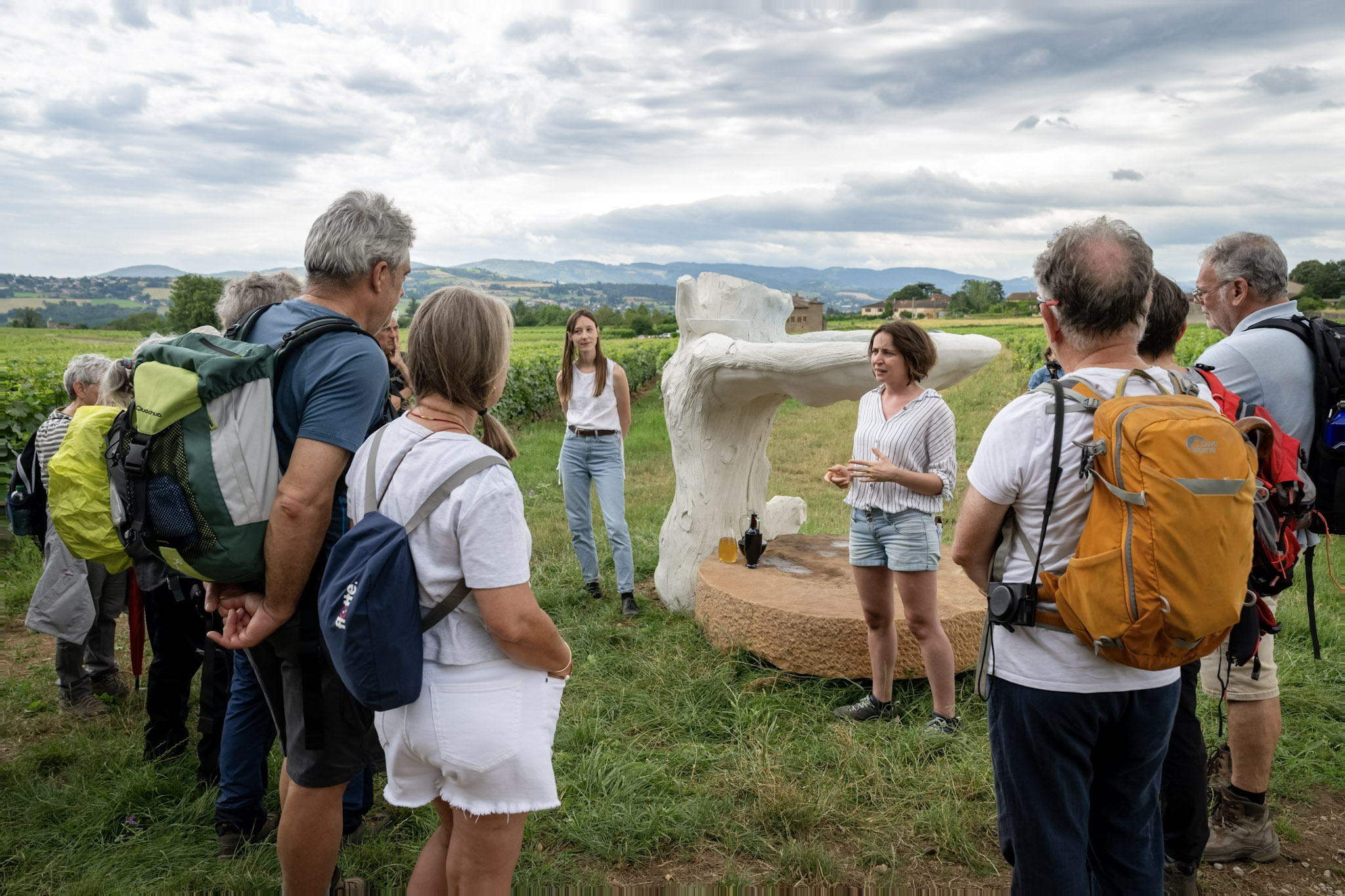 Balade de 9km guidée par une médiatrice culturelle à la découverte de 4 œuvres d'art installées en plein air, avec un arrêt aux Carrières de Glay et une animation de libation en compagnie de l'artiste Julie Escoffier devant l'œuvre "Géo-empathie".