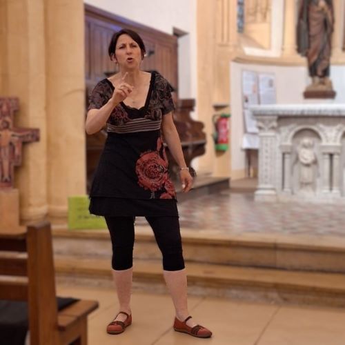 A travers l’histoire d’Emile, Josiane Rivier, guide du Géoparc (Diszy), invite les visiteurs à se questionner ce qui fait une œuvre d’art, incite à observer la pierre utilisée sur place et présente la majestueuse sculpture de Saint Christophe qui veille sur les charnaysiens depuis fort fort longtemps !