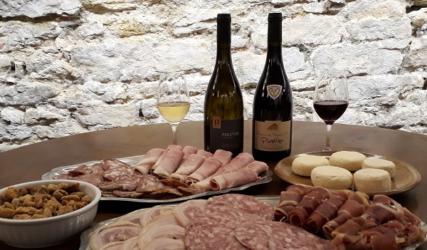 - Le mâchon/repas vigneron : Plateau de charcuterie locale, Plateau de fromages, accompagnés des vins du Domaine (dégustation 5 cuvées différentes)
