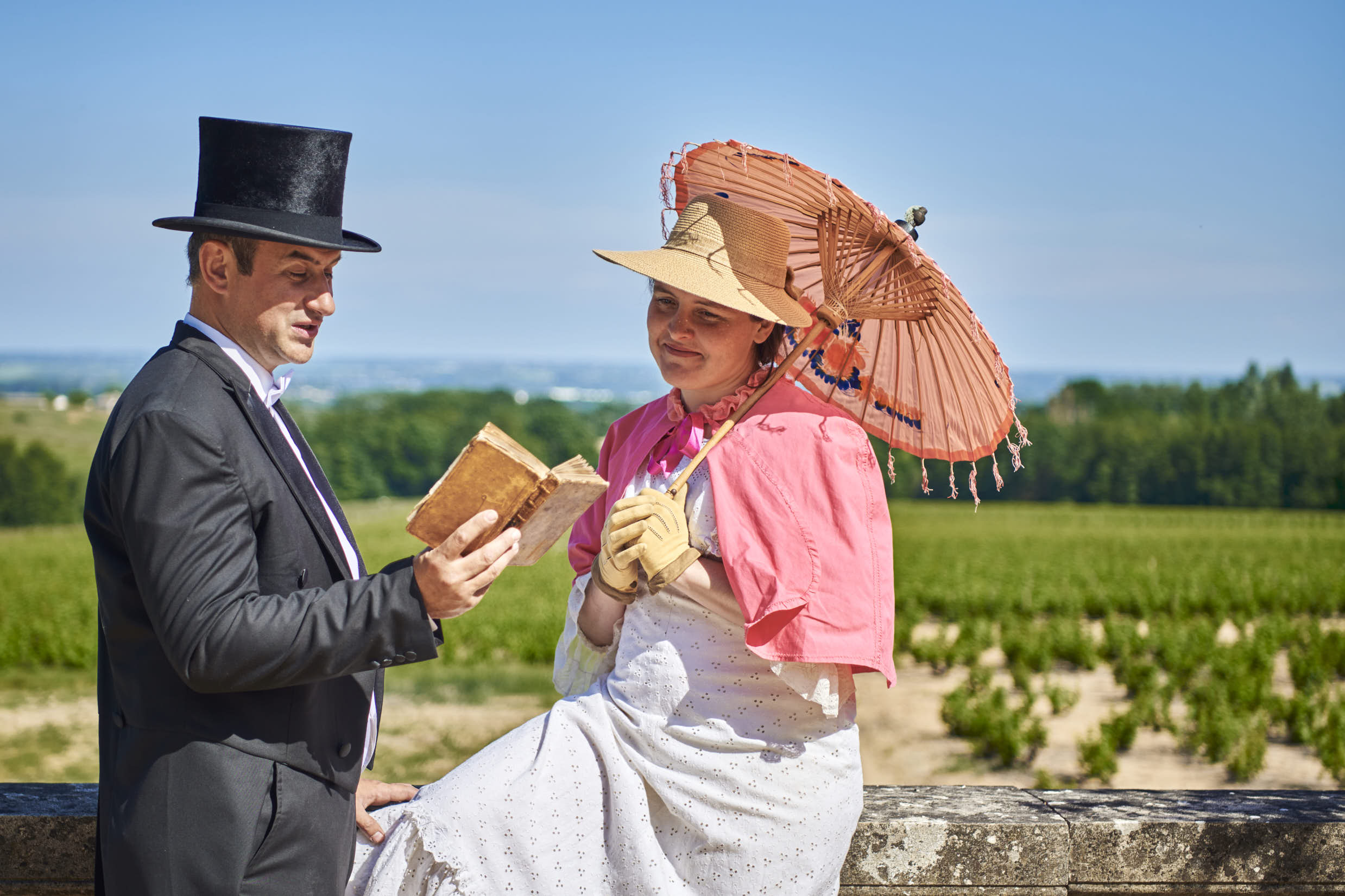 Visite immersive théâtrale et dégustation au Domaine : Jean-Benoît et Tiphaine, propriétaires du Château et gérants du Domaine, vous guident à travers les siècles et commentent la dégustation.