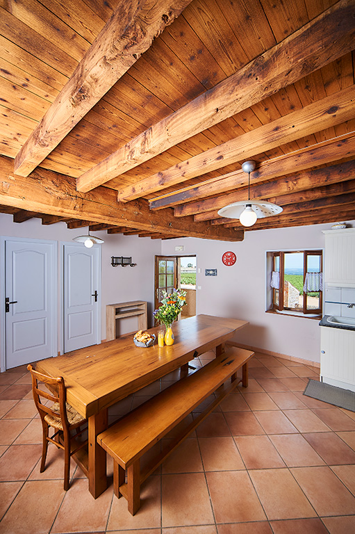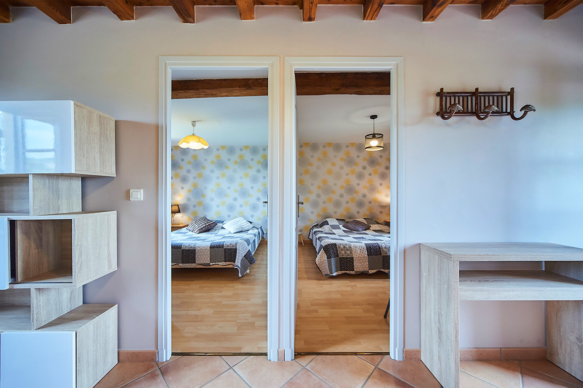 Dans une ancienne maison restaurée, totalement indépendante, située à 500 mètres du domaine, se trouve un gîte de 120m² pouvant recevoir 10 personnes. Accès par un escalier. Cuisine entièrement équipée : cave à vins, lave-vaisselle, lave-linge, four, réfrigérateur, four micro-ondes, grille pain, cafetière, TV, vaisselle et ustensiles de cuisine. 2 chambres x 1 lit 2 pers.