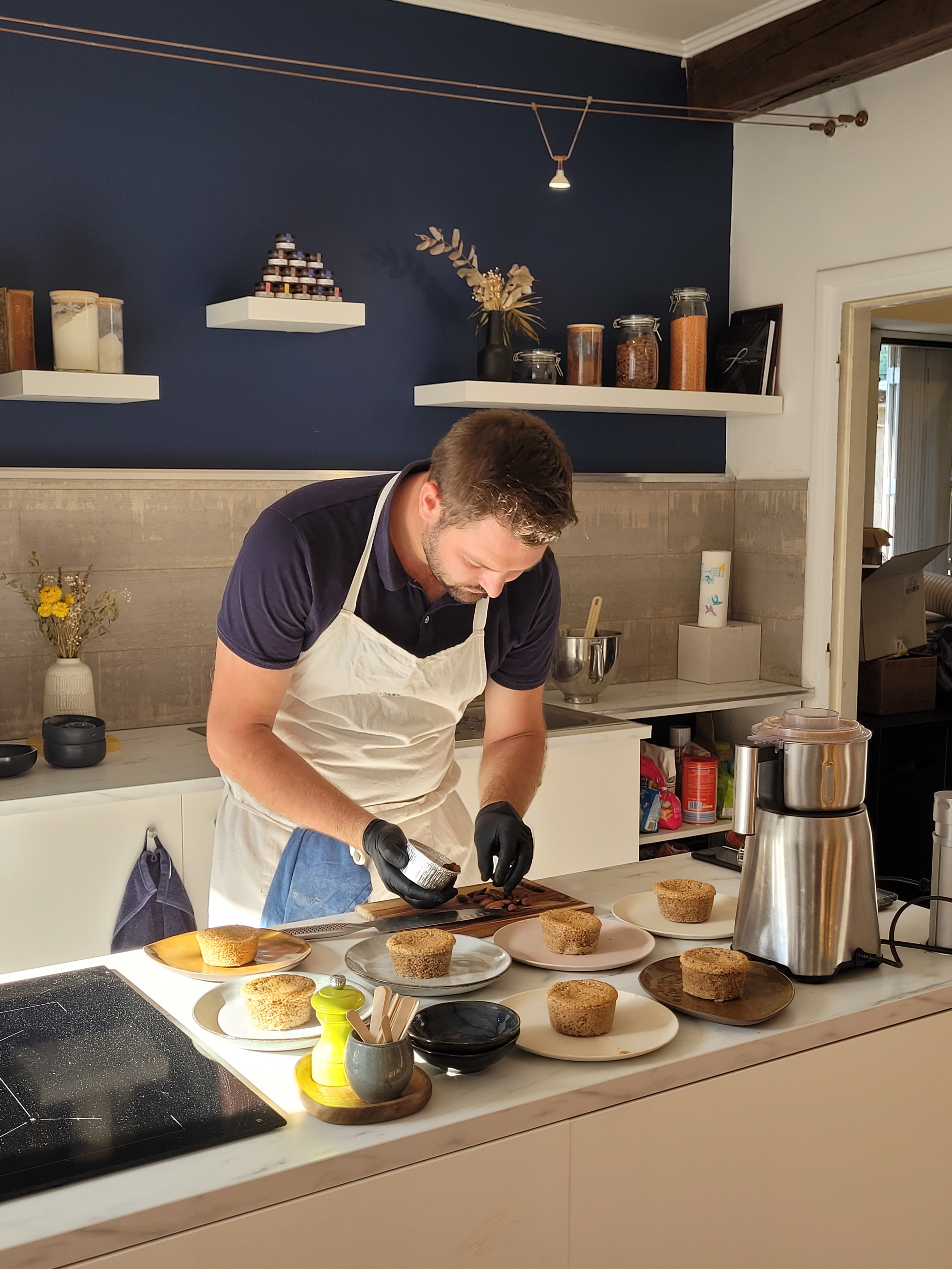 Il ne s’agit pas d’un cours de cuisine participatif, mais vous pourrez néanmoins, de façon ponctuelle, mettre la main à la pâte. Et, bien entendu, déguster ce qui aura été préparé devant vous.