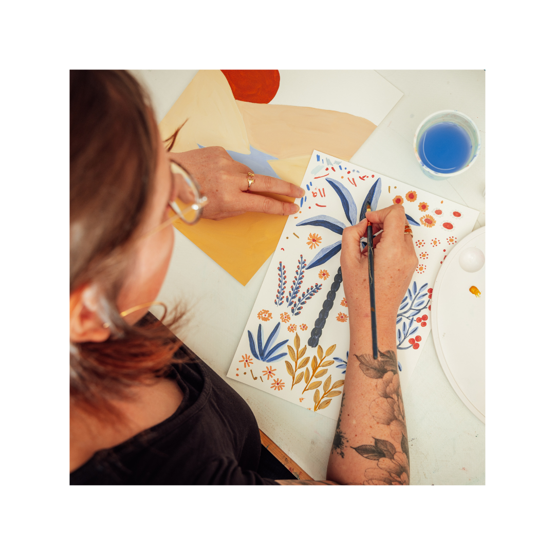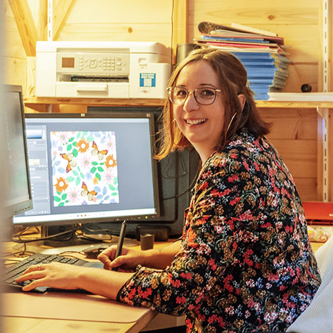 De formation artistique (lycée Claude Bernard option arts plastiques à Villefranche sur Saône, puis école des Arts Appliqués de la ville de Lyon), "MARINE" crée sa propre structure et travaille déjà comme designer textile free lance pour le compte de plusieurs entreprises. Sa palette de création, assez large s’étend de la carte (carte postale, carte d’invitation)à la la création de motifs textiles ou l’édition publicitaire. Elle travaille en associant les méthodes traditionnelles (dessin, peinture) aux performances de l’outil informatique.