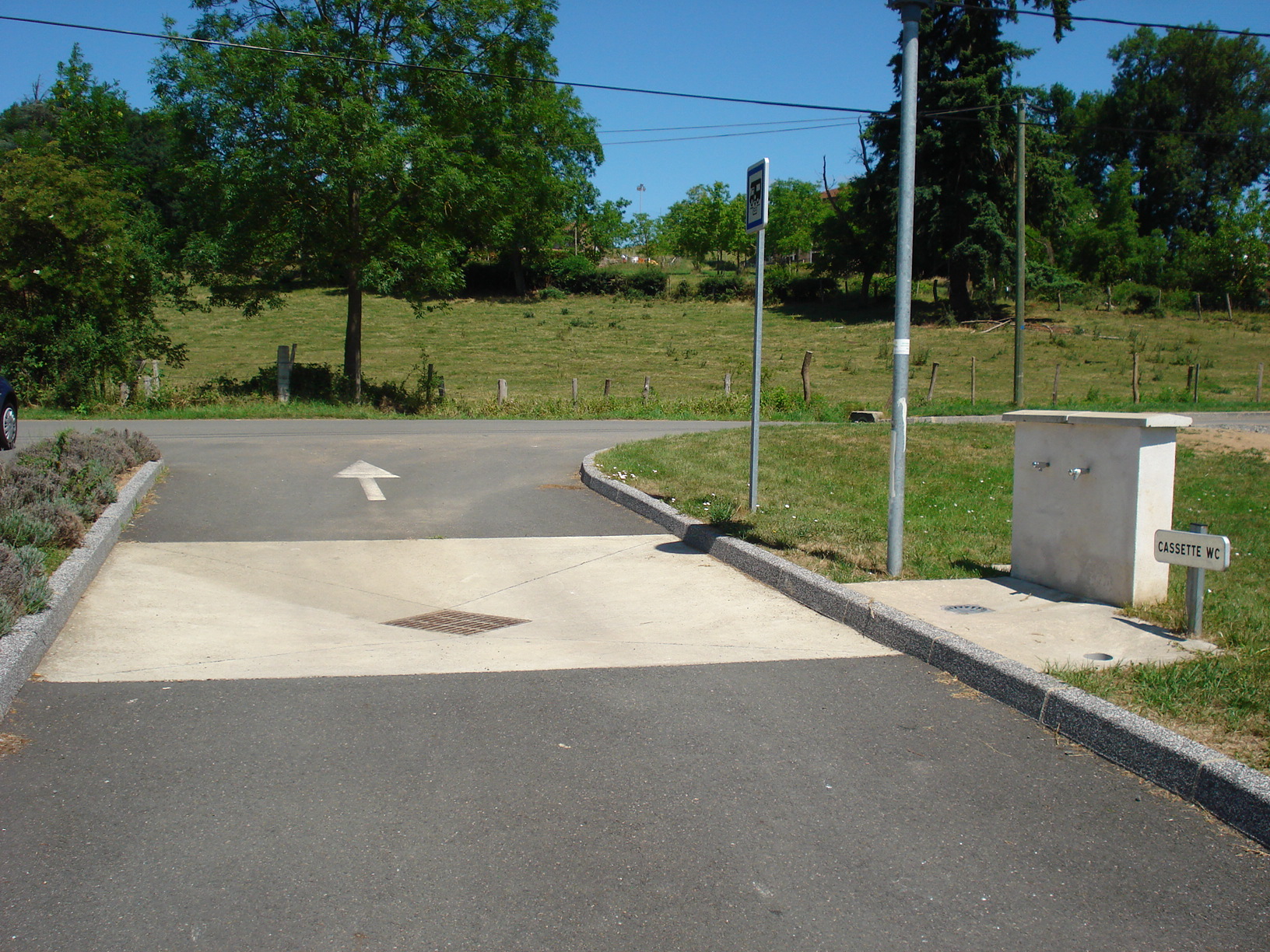 Aire de service pour camping cars avec vidange des eaux usées, vidange WC et eau potable..