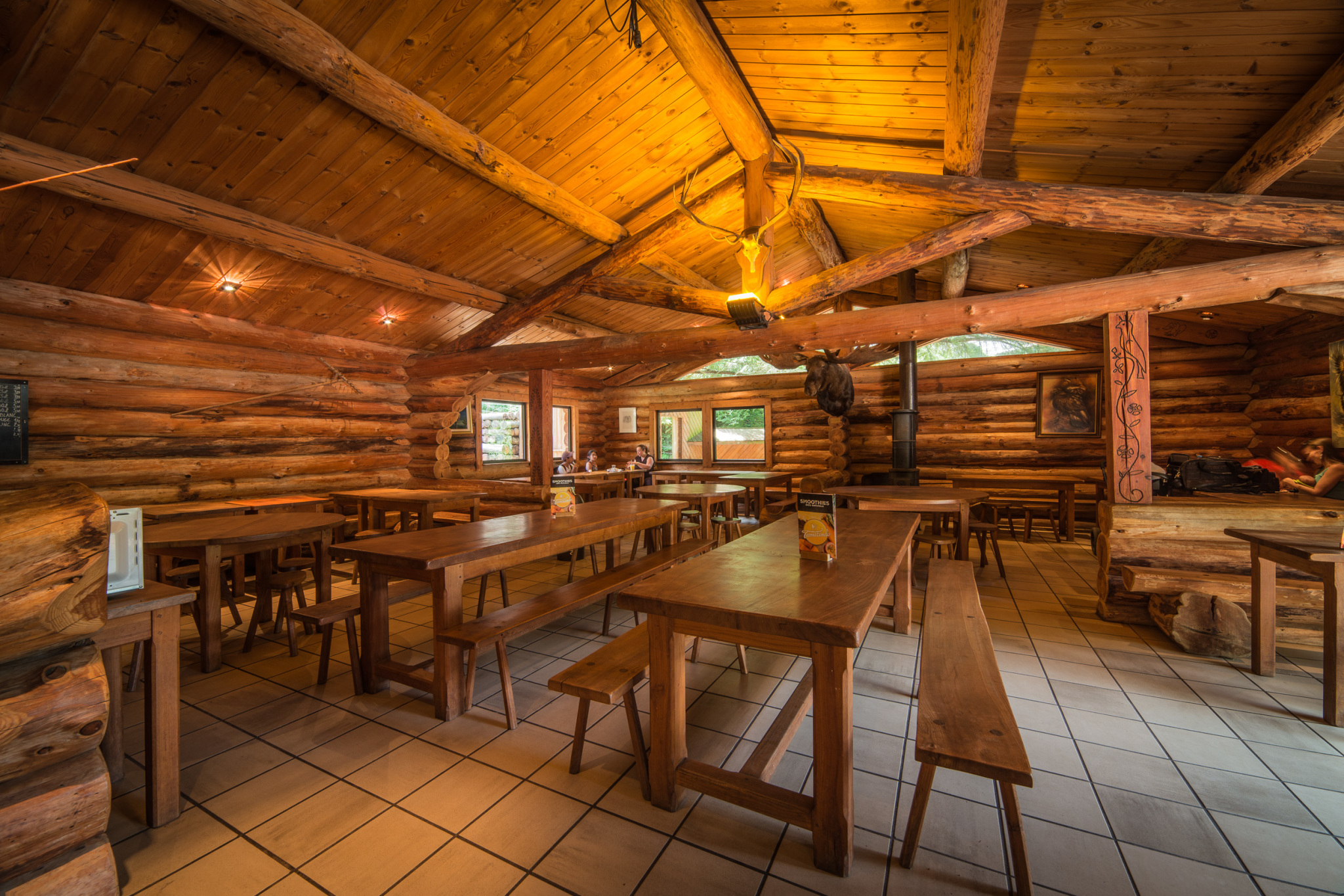 La Catiche, notre maison de rondin vous accueille pour déjeuner et goûter. Tout est pensé pour consommer local, bio ou éco responsable. Possibilité de pique-niquer.