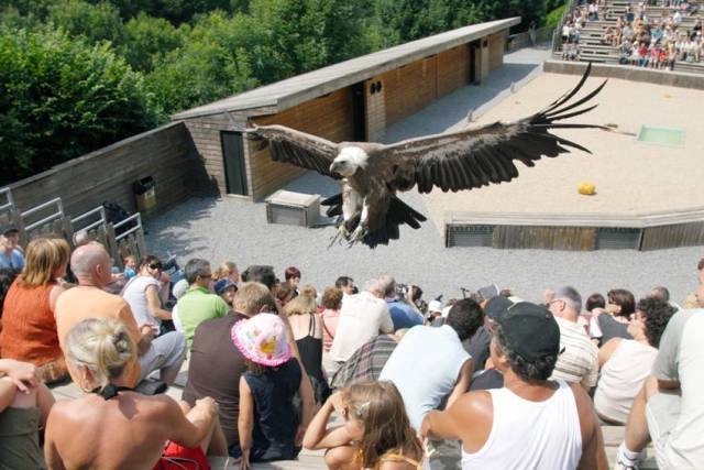 Le vol des rapaces : aigles, faucons, milans, vautours jouent avec les airs entre vols planés, acrobatiques et piqués foudroyants. Ces incroyables ballets aériens sont nés d'une tradition, la fauconnerie : oiseaux et fauconniers exercent leur talent en toute complicité ! Un spectacle magnifique !