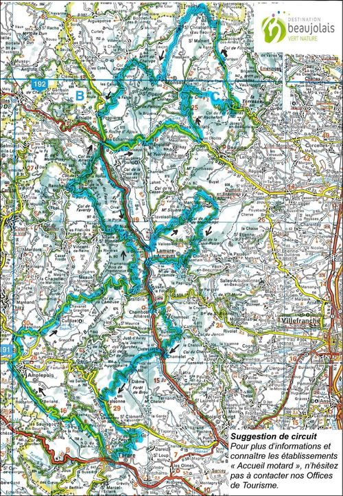 Plusieurs circuits sont disponibles : découvrez la Saône et Loire, en passant par La Clayette, Cluny... le Beaujolais vignoble en suivant la route des crus et les routes de la Dombes.