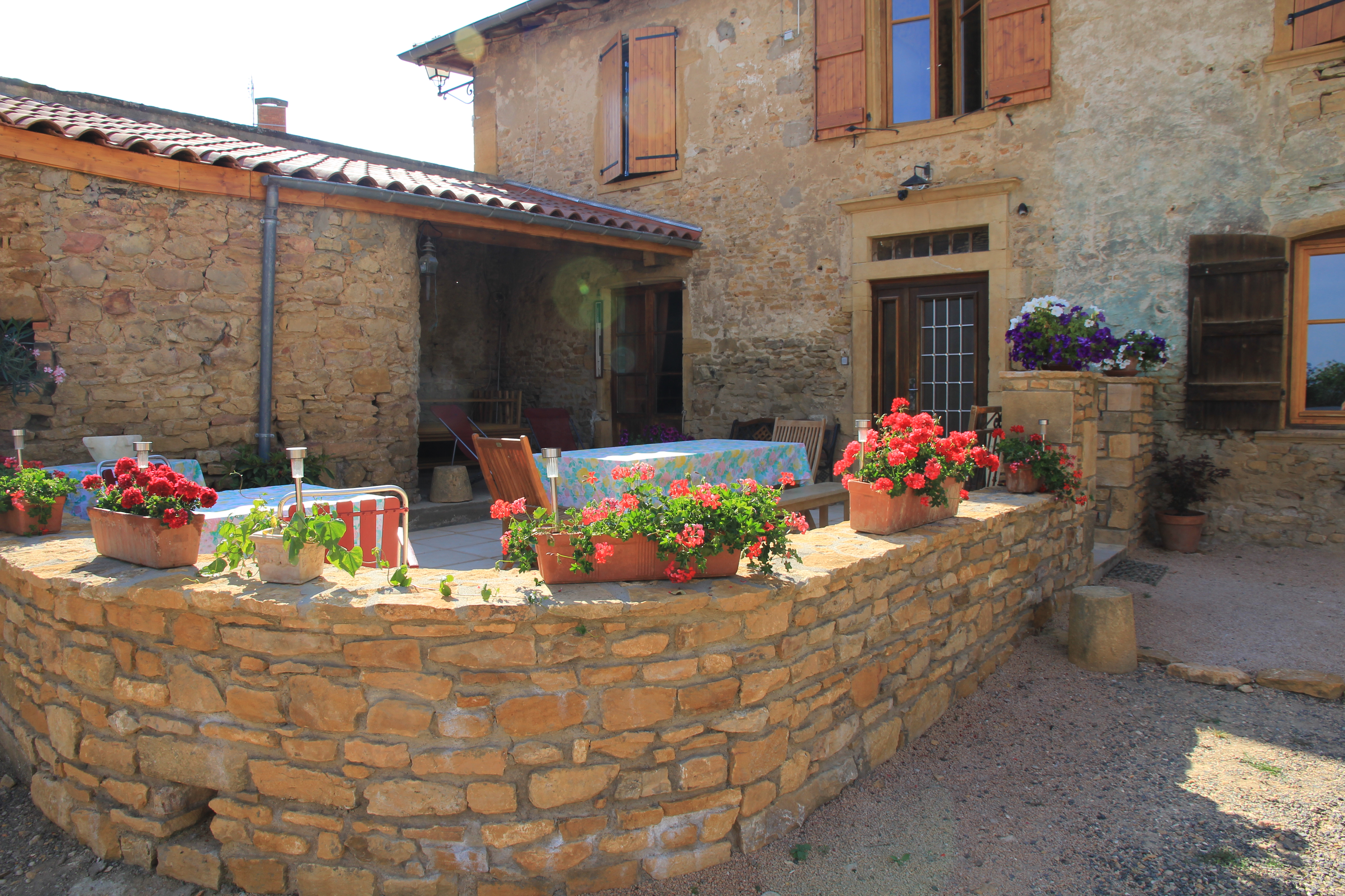 A Moiré, petit village du Beaujolais des Pierres Dorées, situé à 2 km du château de Bagnols et 3 km du village classé d'Oingt, proche de Lyon et de Villefranche sur Saône, vous serez accueillis dans une bâtisse en pierres dorées