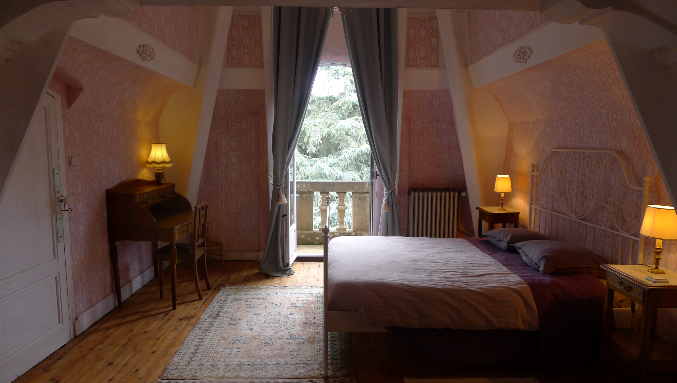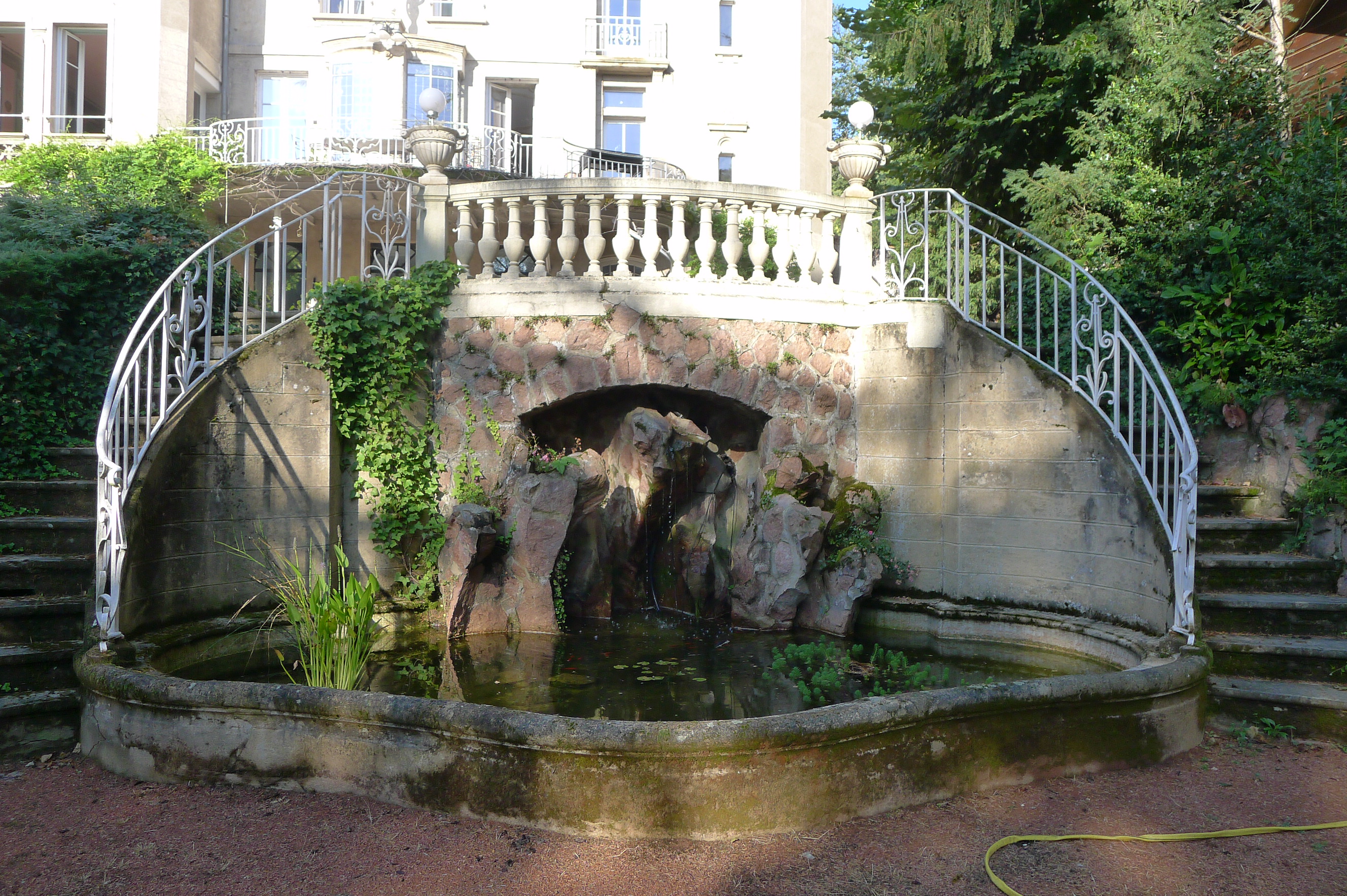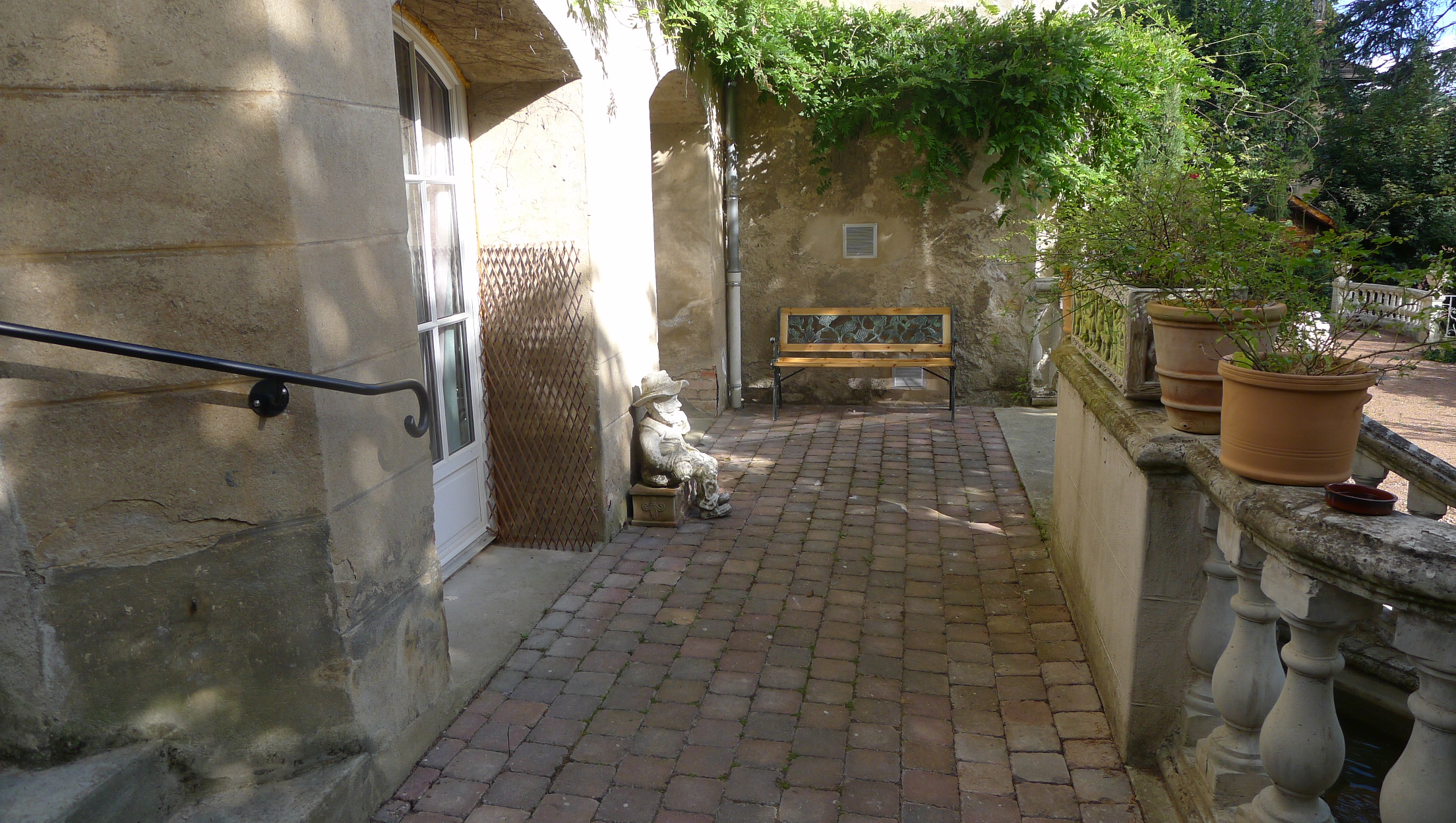 Construit par un industriel à la belle époque où le textile était florissant, construction « à la lyonnaise », une façade simple et discrète du coté de la route, pour ne pas déranger et le coté exubérant, avec tout ce qu’il faut, pour regarder la bonne ville industrieuse de Tarare à travers les arbres plus que centenaires.
