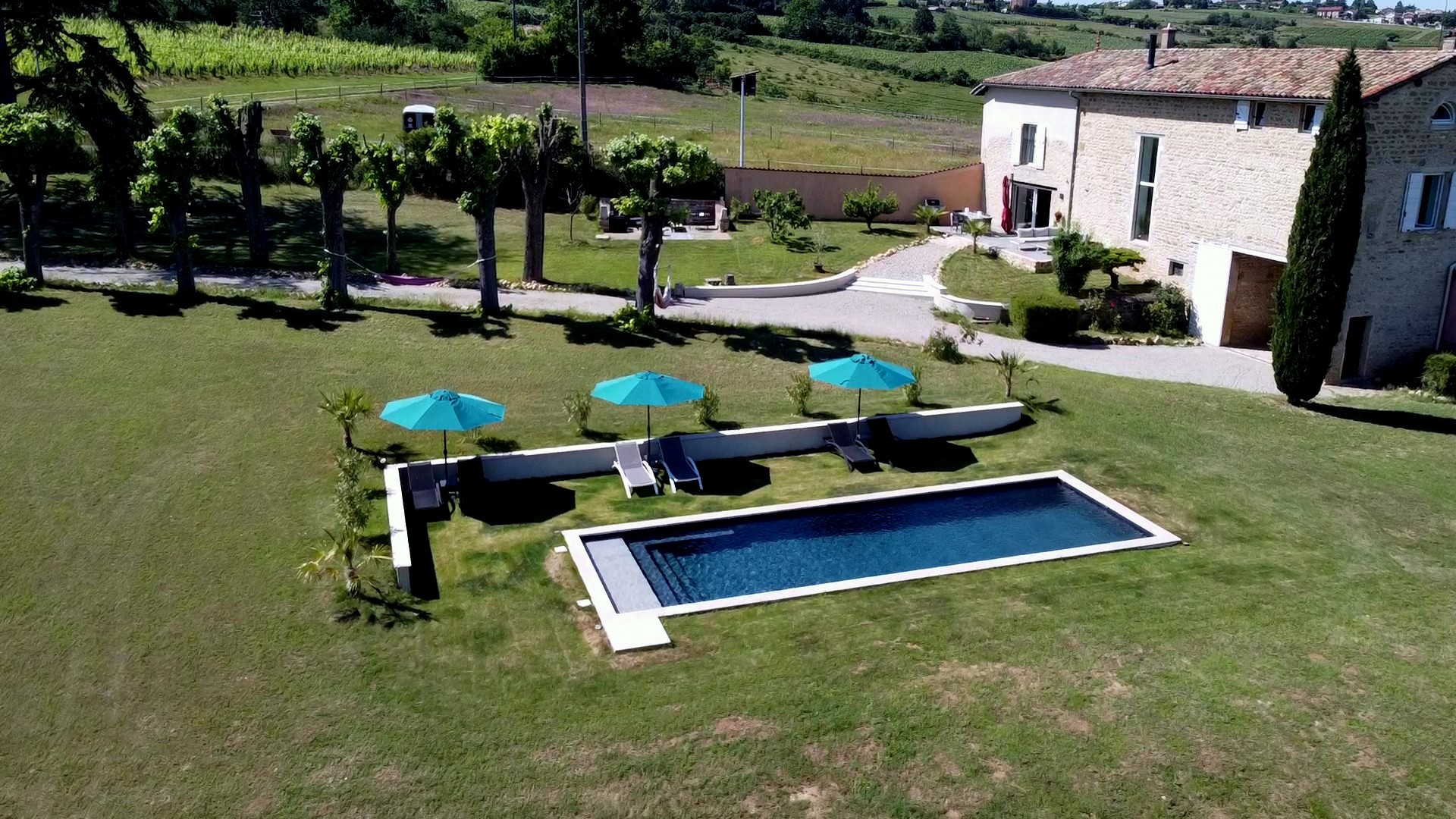 Elle vous accueille dans ses trois chambres doubles spacieuses avec tout le confort moderne : TV, Wifi, salle de bain privative. Vous avez le choix entre la lumière bleutée de la chambre CHARNAY, les feuilles modernes de la chambre VAL D’OINGT ou le ciel de lit de la chambre LACHASSAGNE. A l’extérieur, une grande piscine chauffée au design contemporain de 12 x 4 m vous accueille et vous offre une vue plongeante sur le val de Saône. Vous pourrez profiter du calme du grand terrain arboré de 4.500 m 2 de jour comme de nuit.