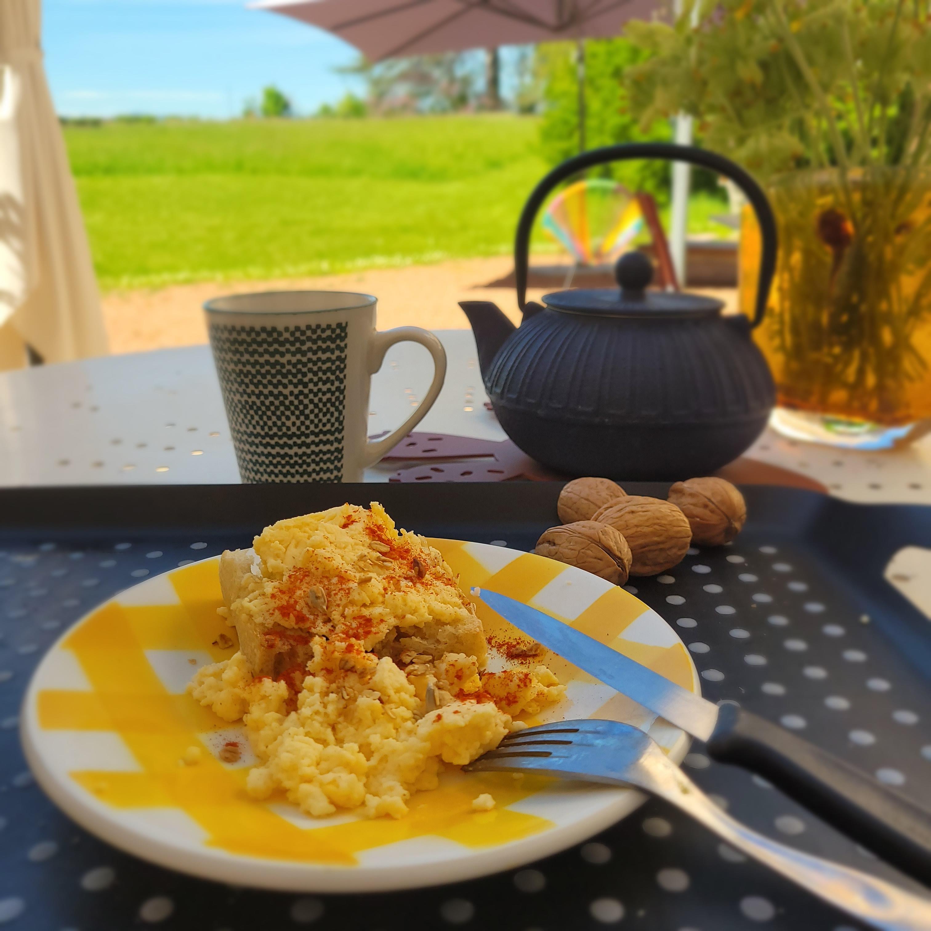 Un petit-déjeuner continental augmenté de saveurs d'inspirations gourmandes et saisonnières du marché. Granola et yaourts maison. Confitures maison du verger comme la figue à la lavande ou la reine-claude au basilic.