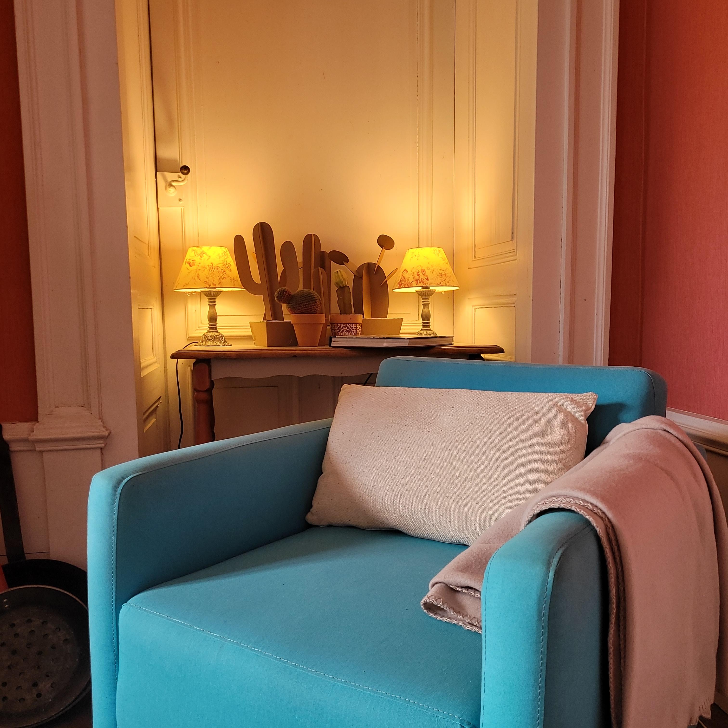 Dans cette chambre, nous rendons hommage à cette artiste : Forte, volontaire et débordante de couleurs, reflet d'un ancrage vital et politique relié à son Mexique.