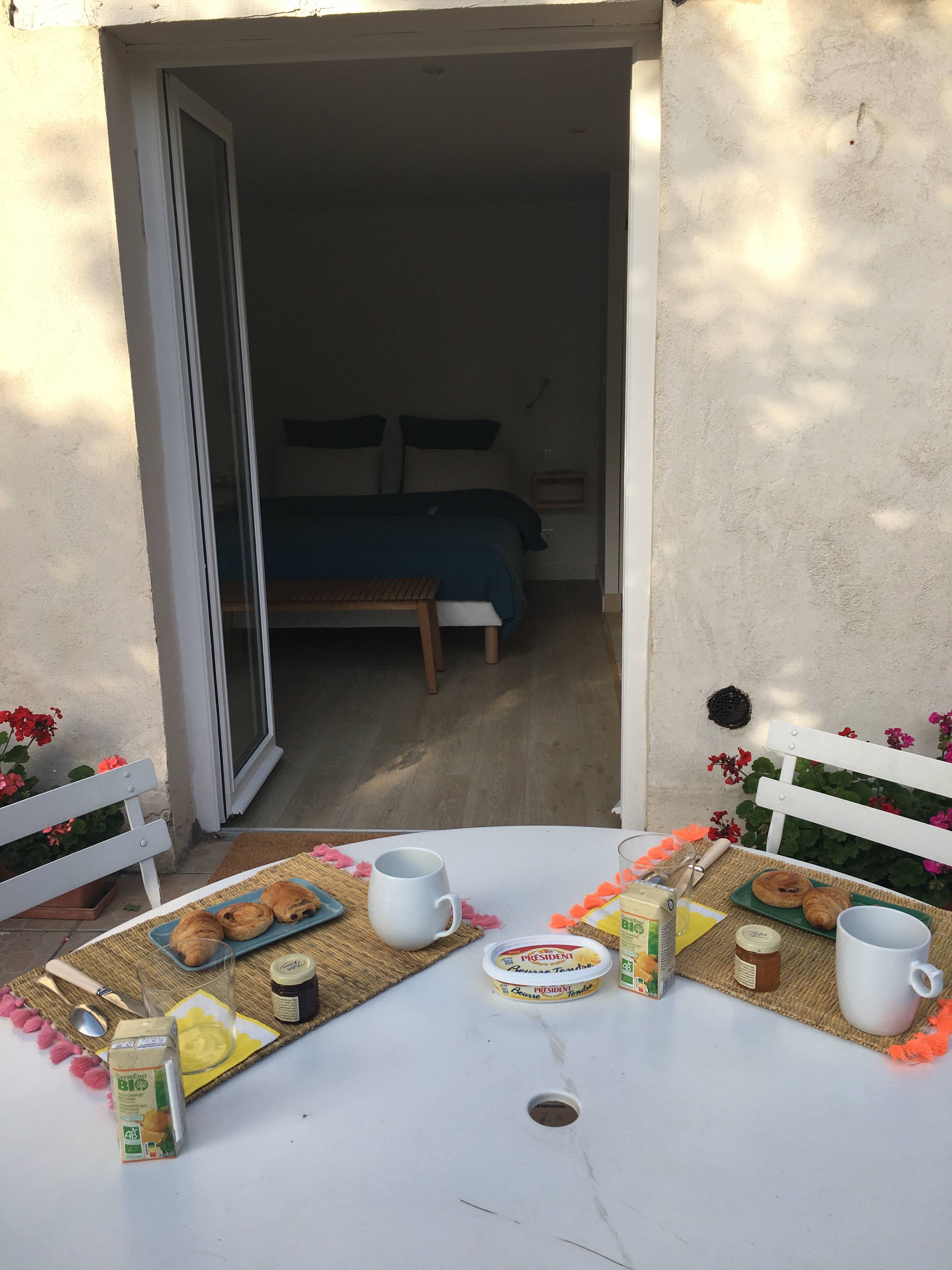 Cette chambre dispose d’une entrée indépendante de plain-pied. Elle est située dans un environnement calme. Pour votre confort, climatisation, wifi et télévision (Netflix) sont accessibles.