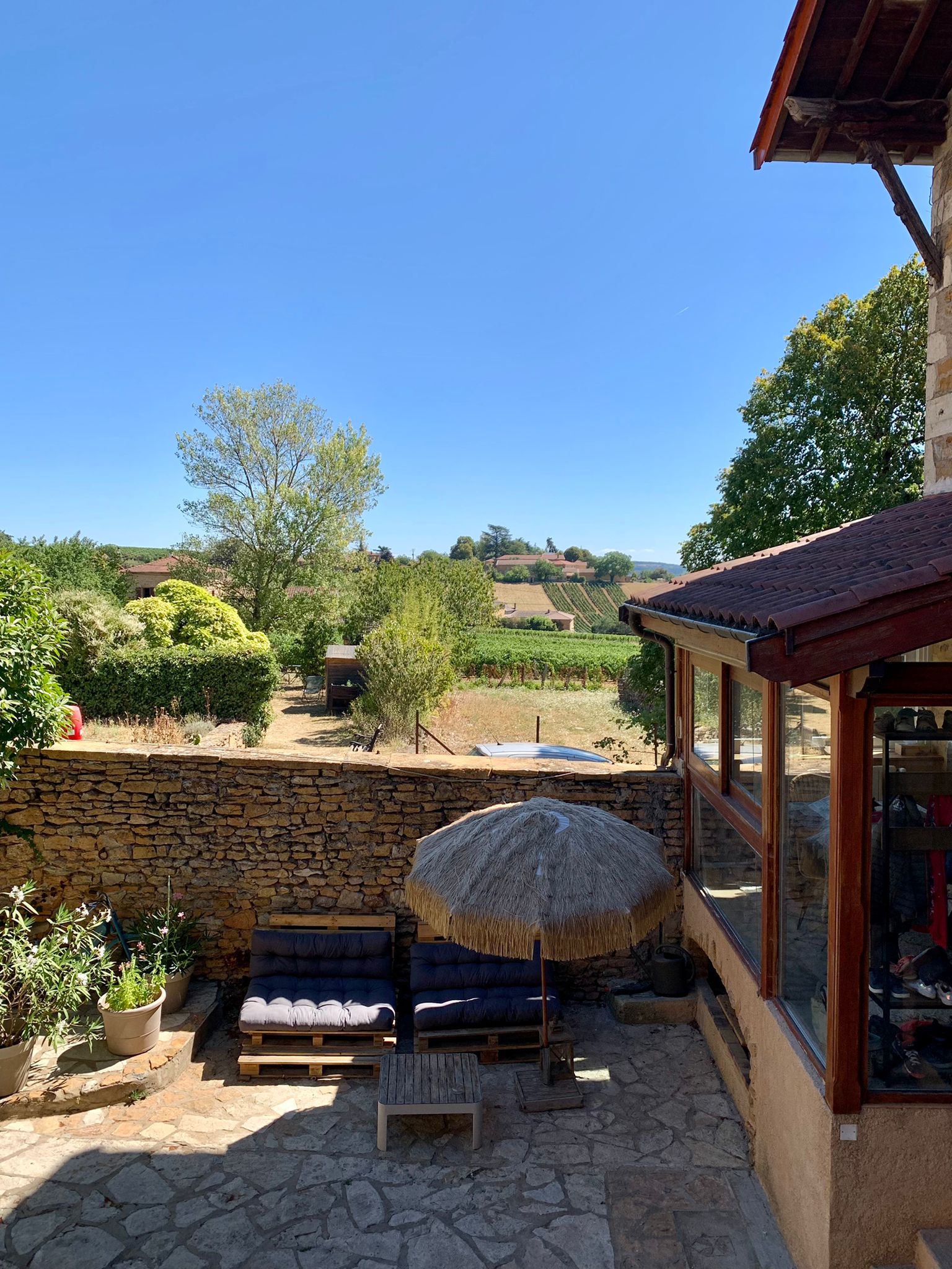Songes de vigne : Une invitation à prendre le temps. Le temps d'un livre dans le jardin, le temps d'un bain à remous et d'une nuit reposante propice à l'évasion dans nos chambres, le temps d'une balade dans les vignes autour de la maison … Un temps pour être en contact avec soi, et avec la nature. Alexandra vous propose de passer une ou plusieurs nuits dans ses deux superbes chambres d'hôtes, mitoyennes à la maison, en pierres dorées et disposant d'une vue magnifique sur le vignoble du Beaujolais. A votre arrivée, vous serez tout d'abord séduits par cette belle maison typique de la région, disposant d'une cour intérieure et un auvent couvert puis l'accueil charmant de la propriétaire des lieux : Alexandra. Les Chambres d'hôtes sont aménagées l'une au rez-de-chaussée et l'autre à l'étage. Un petit hall permet de desservir l'ensemble. Au rez-de-chaussée, la Chambre "Nuit d'Automne", belle décoration, matériaux nobles, mur en pierre et en bois local, dispose d'un lit en grand dimension (1.80 X 2.00), une partie salon/détente et une salle d'eau ouverte avec vasque et double douche, les toilettes privées dans la chambre sont séparées. A l'étage, la chambre "Nuit d'Eté" avec vue magnifique et ambiance cosy, idéal pour se ressourcer grâce à sa baignoire balnéo + douche. Lit en grande dimension (1.80 X 2.00), deux vasques, toilettes privées dans la chambre. Climatisation réversible. Puis pour vous détendre, Alexandra vous met à disposition, le vaste salon avec un panorama imprenable, canapés, bibliothèque, tables et chaises, tout a été pensé pour votre bien être. Cour commune, jardin paysager avec salon de détente, table, chaises et hamac. Parking extérieur, possibilité si nécessaire de garer un véhicule dans la cour fermée. Une adresse en Beaujolais des Pierres Dorées à ne pas manquer !