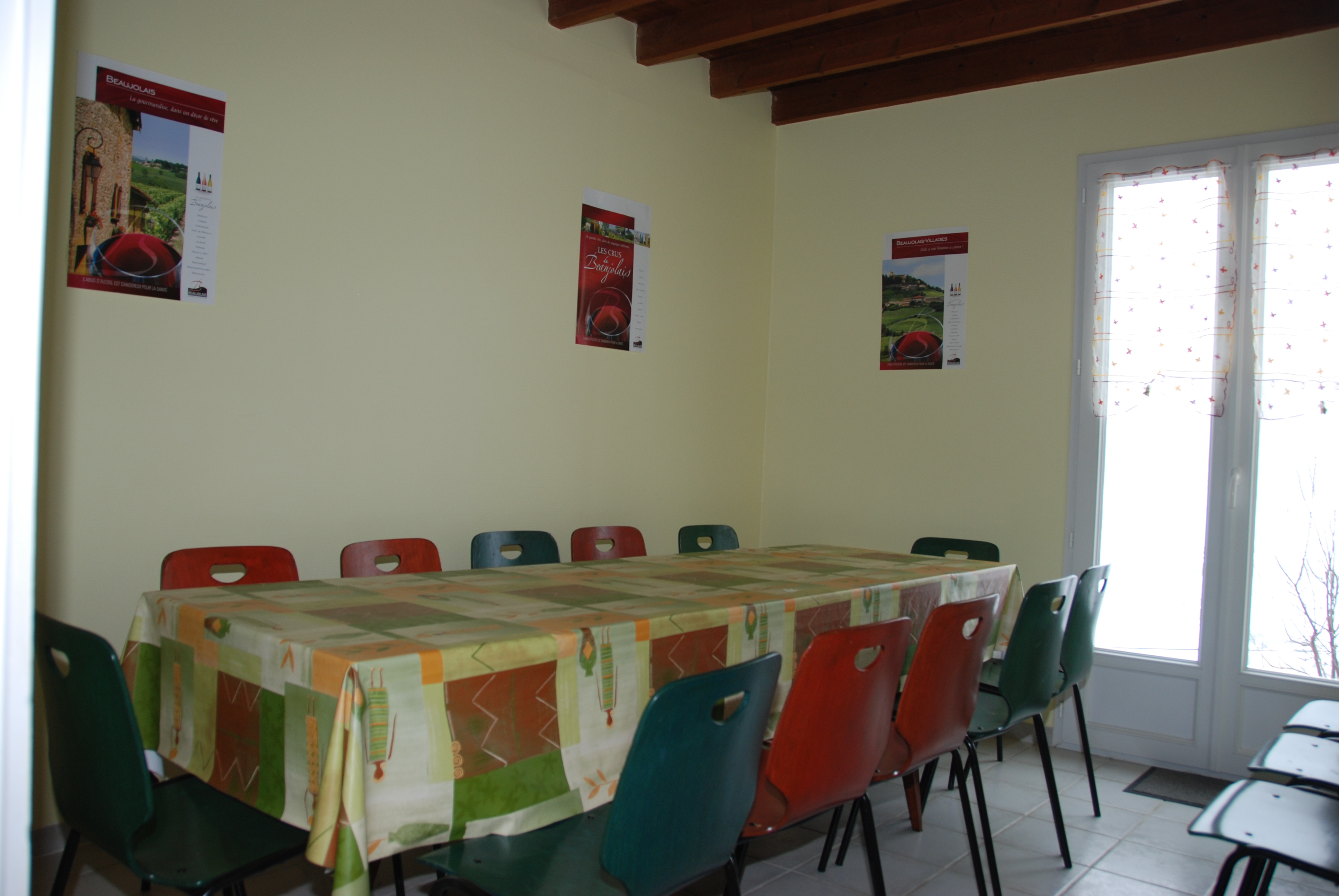 Sanitaires : 3 douches, 3 WC. Accès terrain extérieur avec tables.