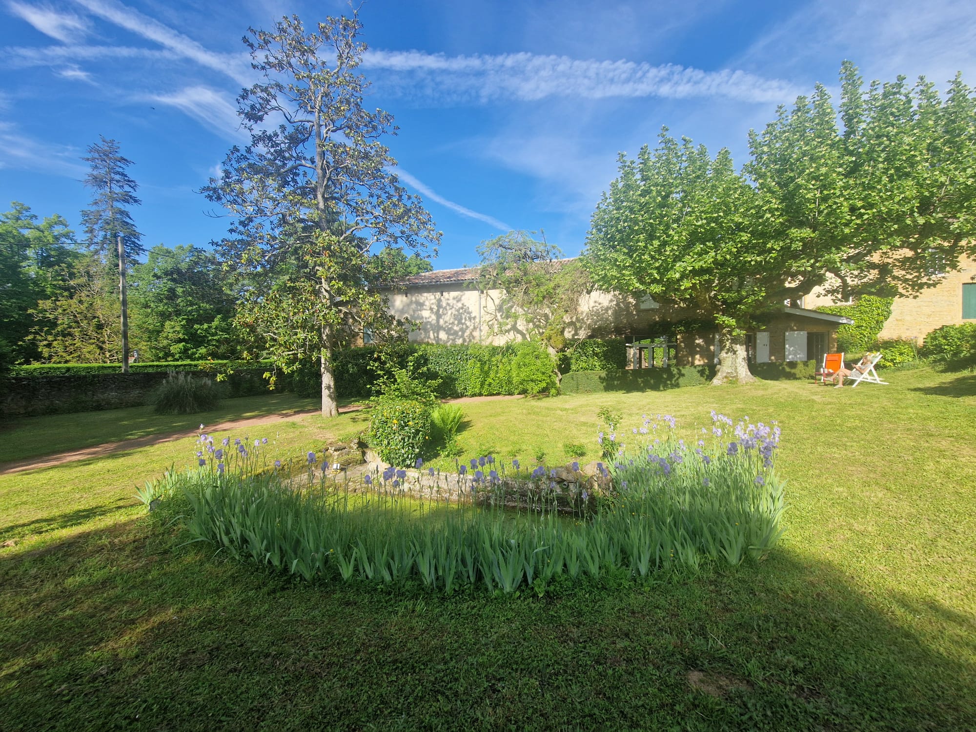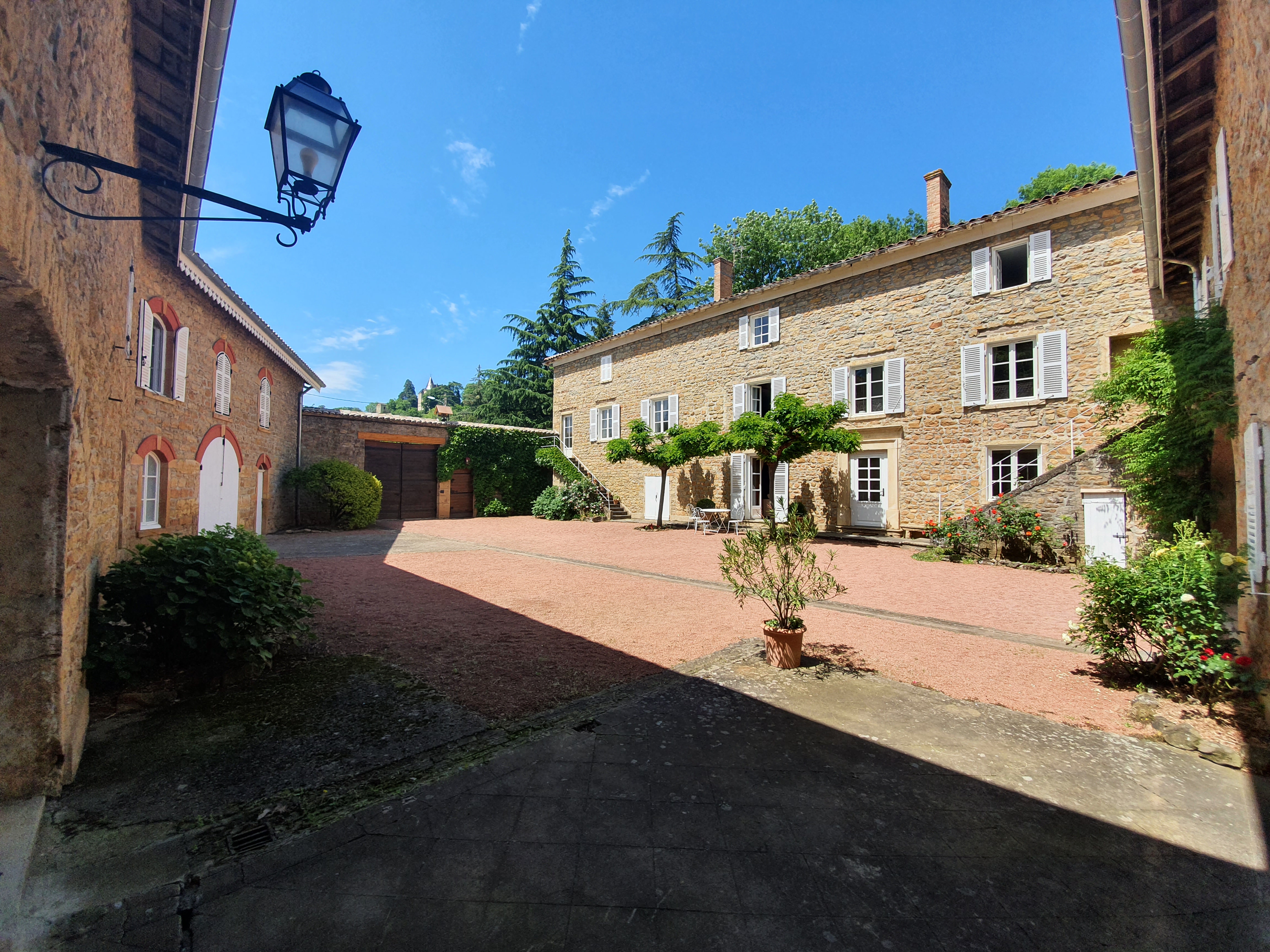 Son architecture présente une cour typique du Beaujolais et un parc clos et paysagé, arboré d'arbres centenaires.