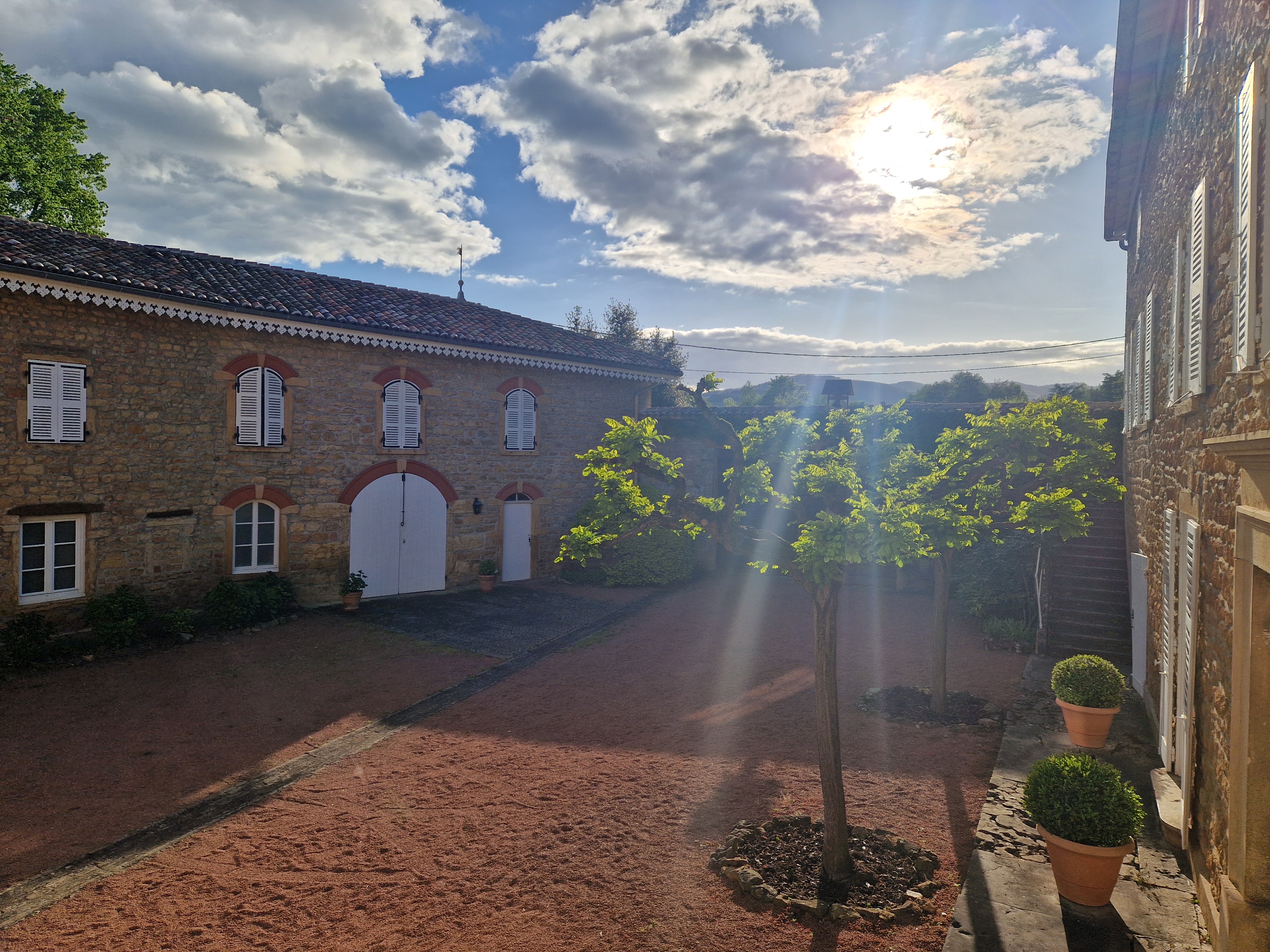 Le Domaine des Franchises, lieu historique, à l'architecture typique, qui dégage beauté et sérénité, est situé au cœur du vignoble à l’appellation Beaujolais village.