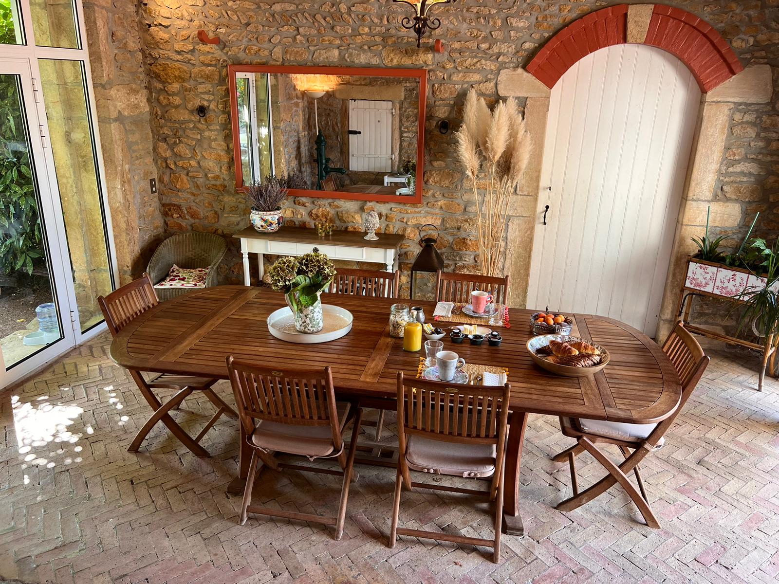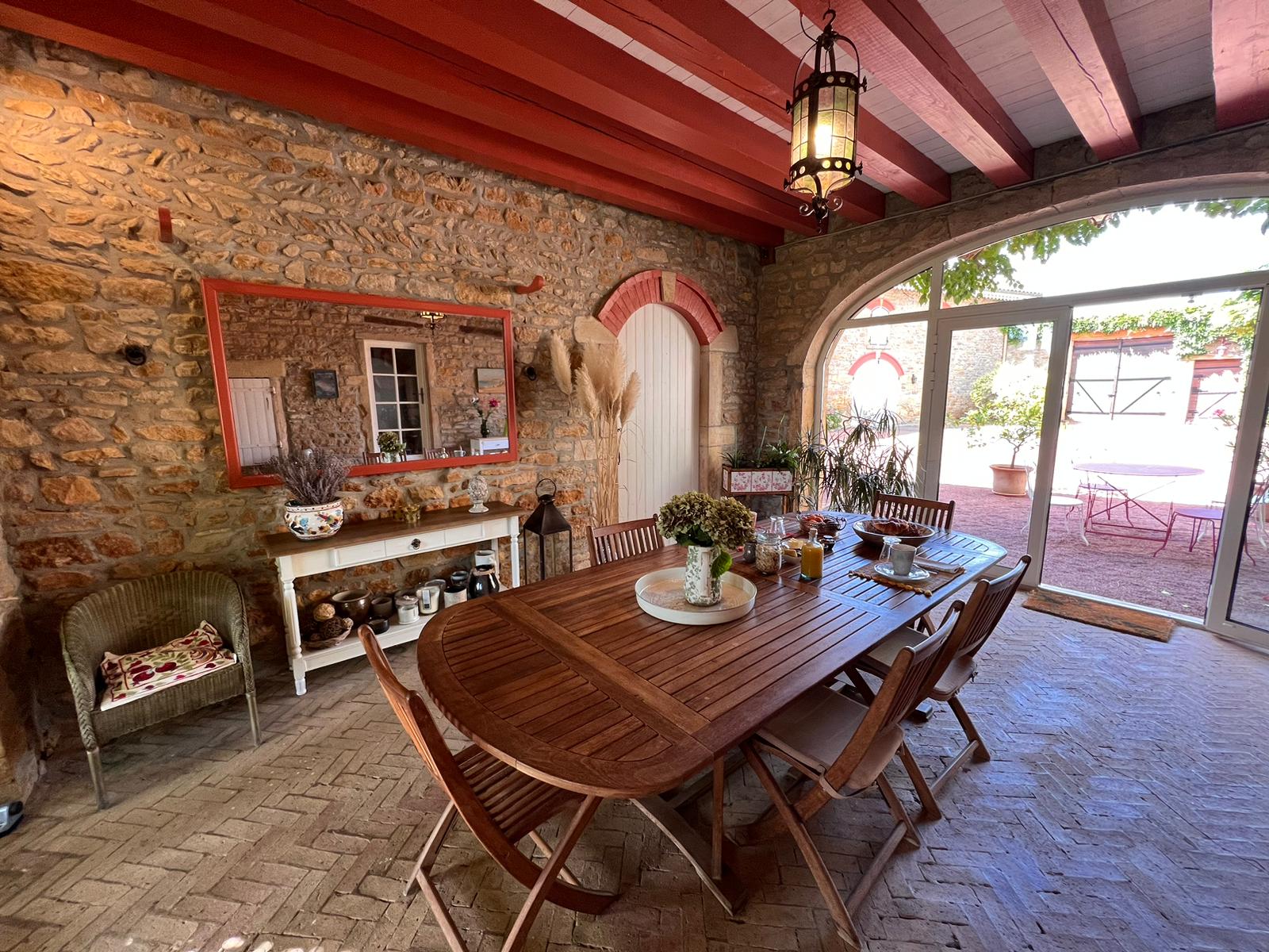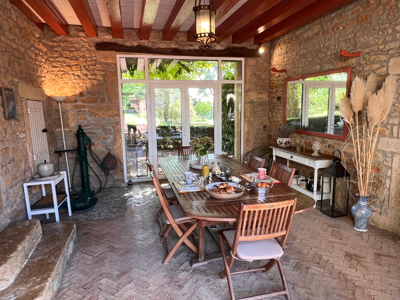 Beauté et sérénité sont au rendez-vous dans ce lieu historique à l’architecture typique du Beaujolais, où la simplicité de la pierre dorée se mêle au raffinement du mobilier d’époque et à une rénovation respectant son caractère d’origine.