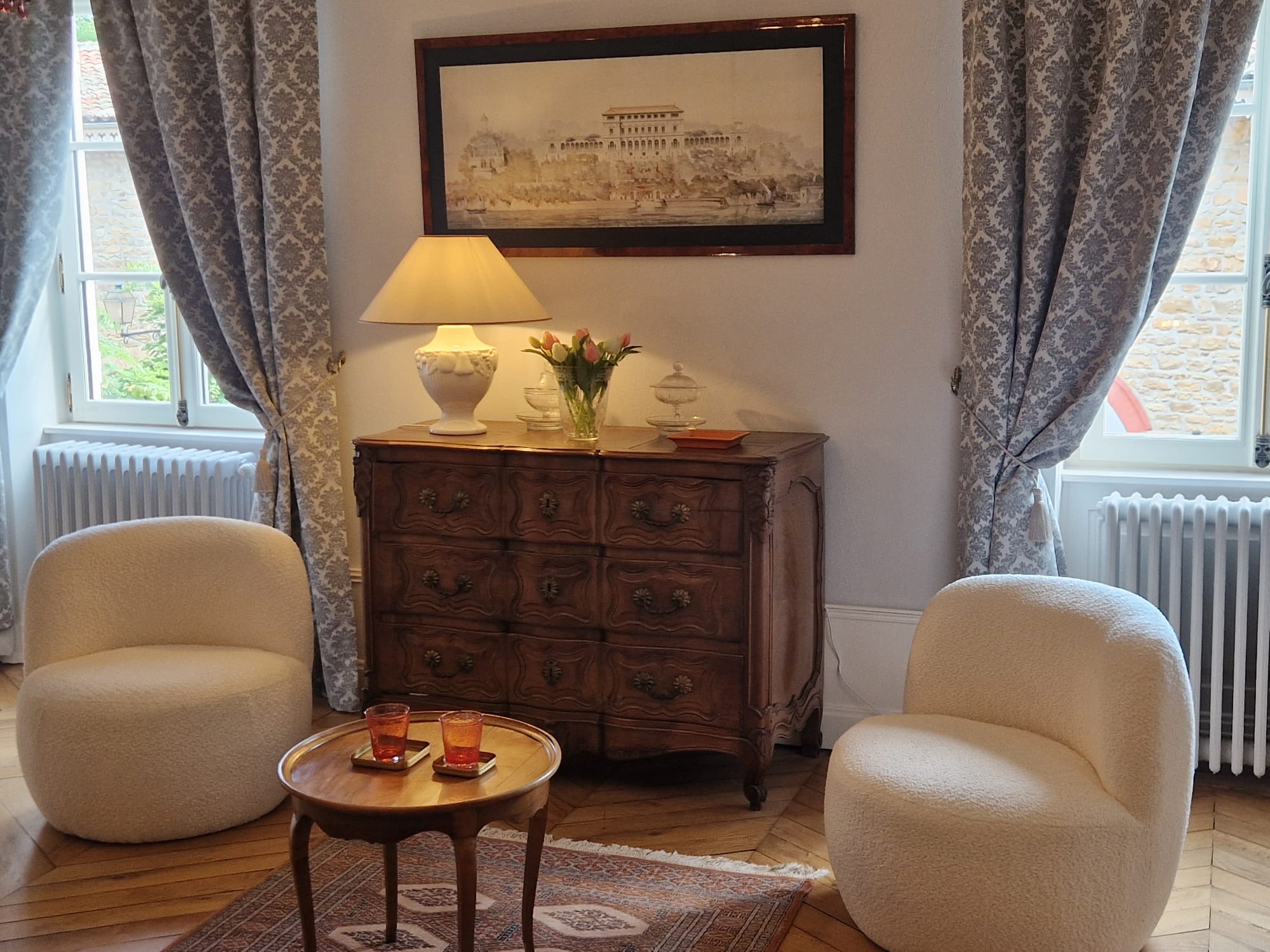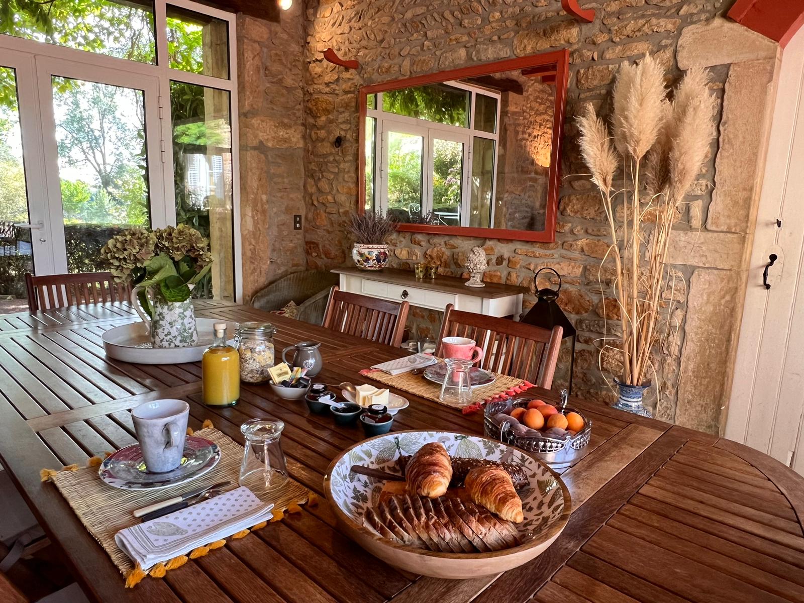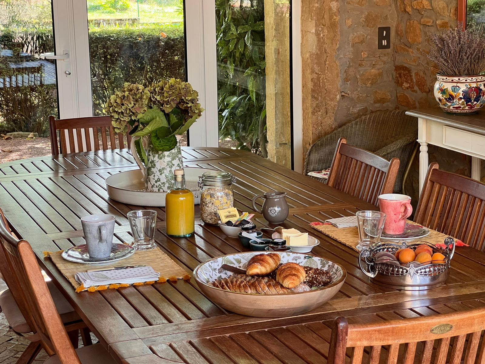 Beauté et sérénité sont au rendez-vous dans ce lieu historique à l’architecture typique du Beaujolais, où la simplicité de la pierre dorée se mêle au raffinement du mobilier d’époque et à une rénovation respectant son caractère d’origine.