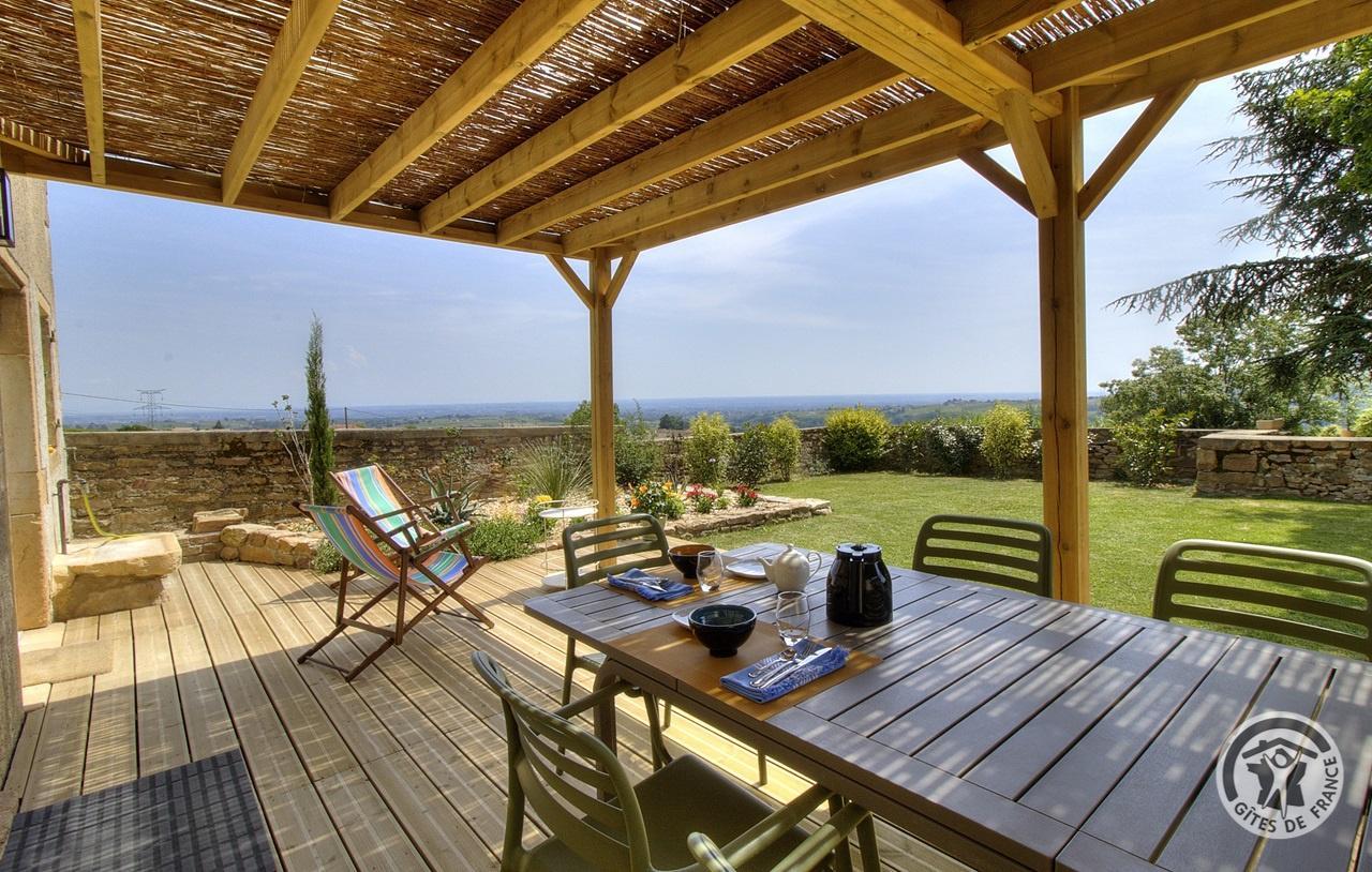 Lors de votre séjour, vous serez enchantés par une vue imprenable sur les vignobles, la vallée de la Saône et, certains jours, le Mont Blanc.