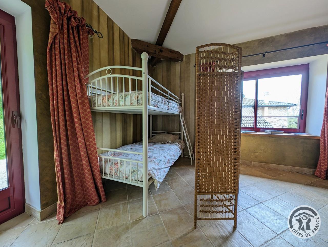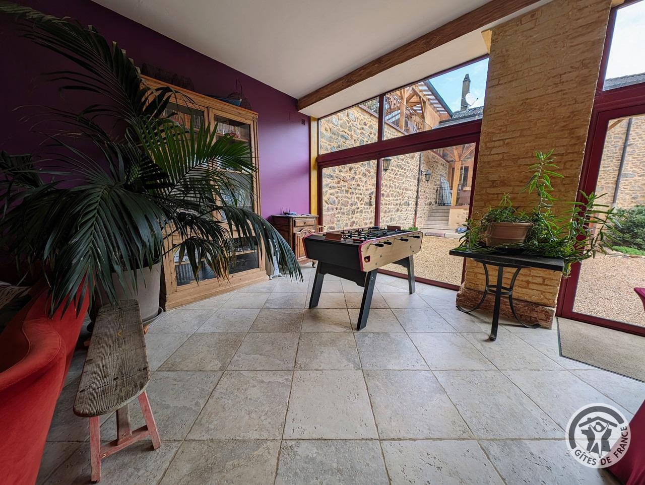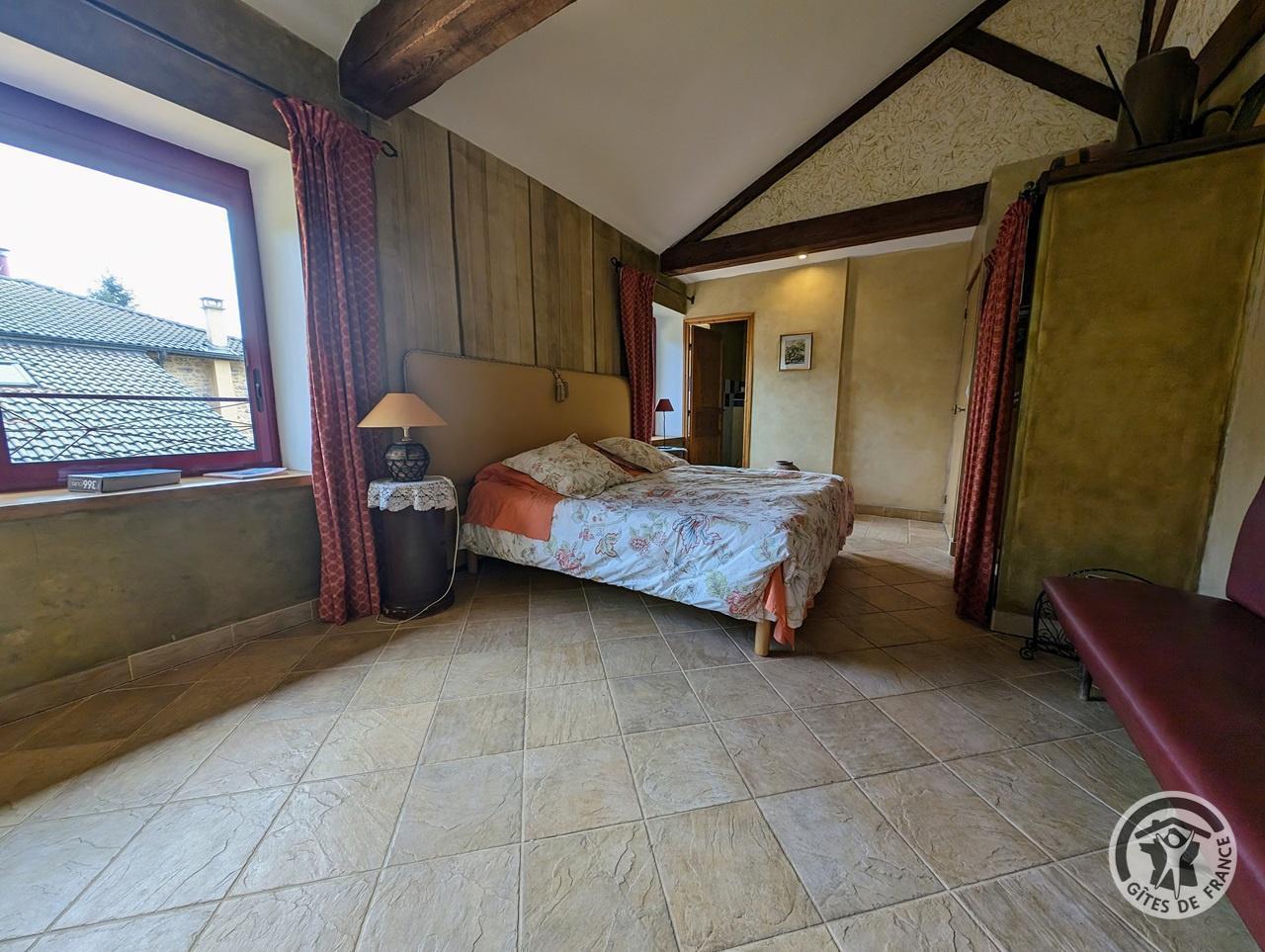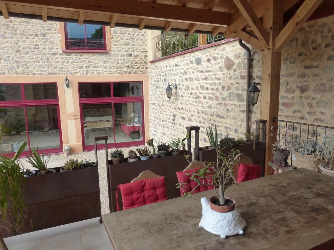 Notre coup de coeur pour cette ancienne ferme située dans le Beaujolais Vert, nous a fait nous installer dans cet endroit retiré, en pleine campagne et créer 5 chambres d'hôtes de caractère, restaurées avec beaucoup d'originalité. A la lisière du massif des bois des Mollières, et au départ des chemins de randonnées pédestres, vtt et équestres, toutes nos chambres (entre 35 et 55 m²) comportent un sanitaire privé (douche et wc). 2 chambres (1 lit 2 personnes 160x200), 3 chambres (familiales ou pour groupe) Possibilité lits supplémentaires. Les petits déjeuners et la table d'hôtes seront servis dans la maison des propriétaires . Idéal pour proposer des stages ou séminaire à un groupe de 10 à 13 personnes. Professeurs de yoga ou de peinture renseignez vous.