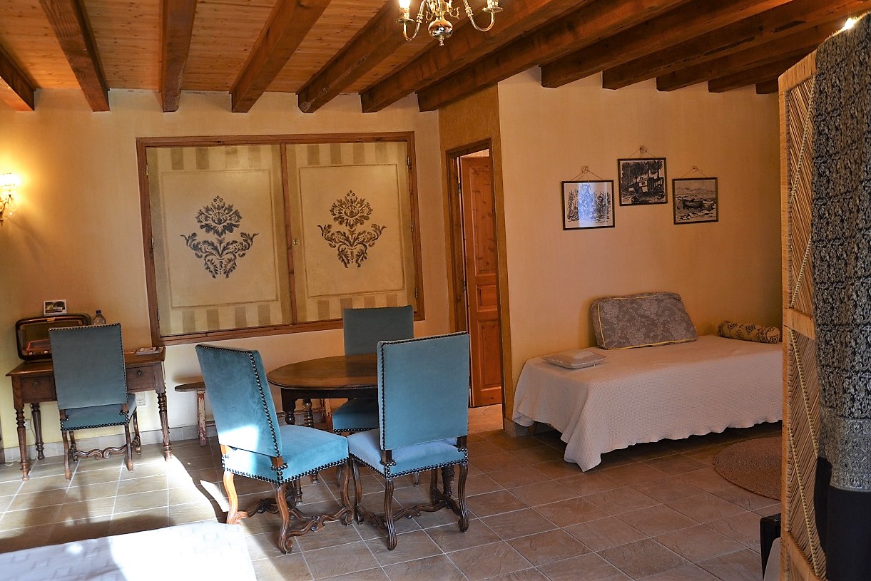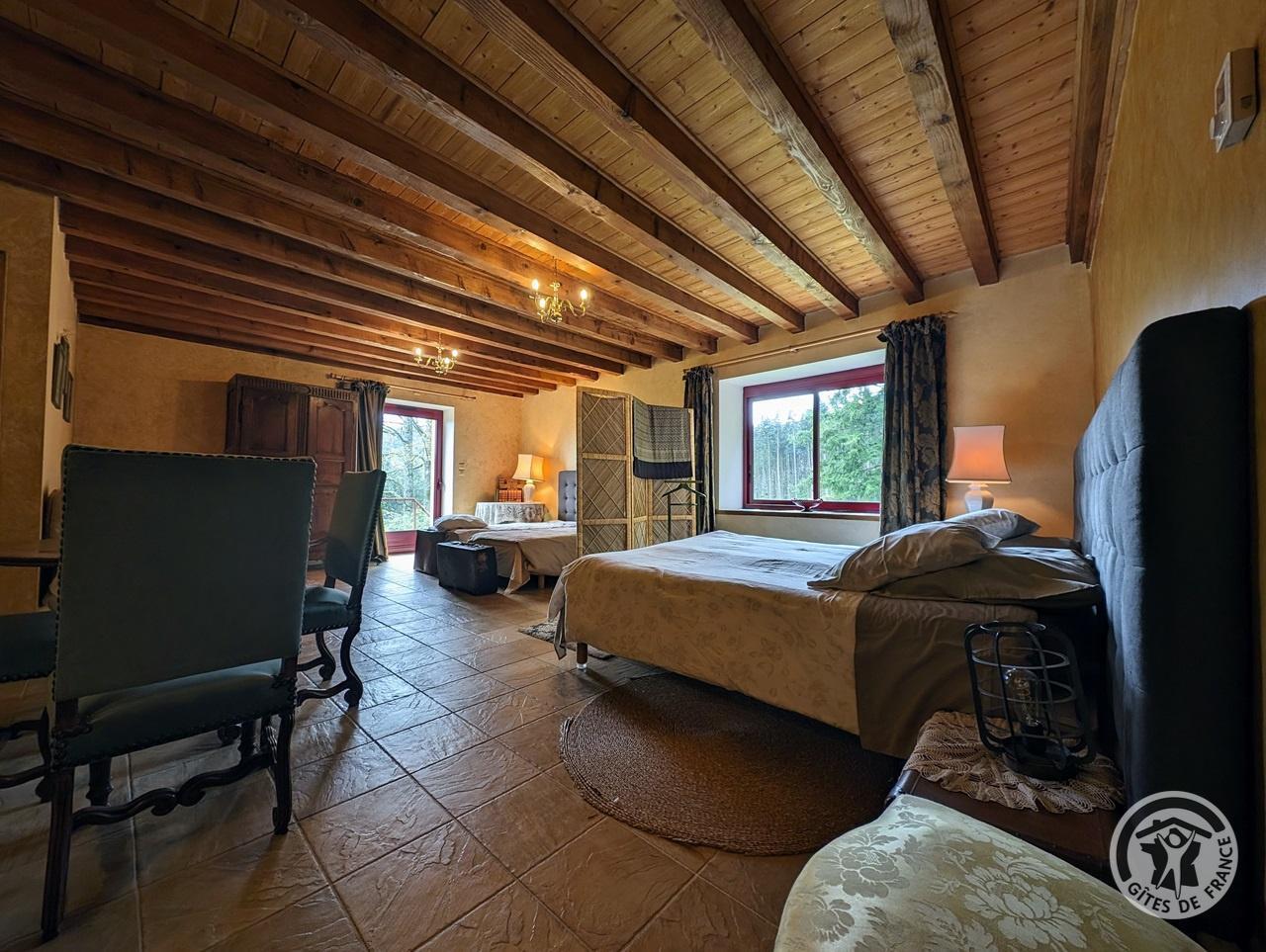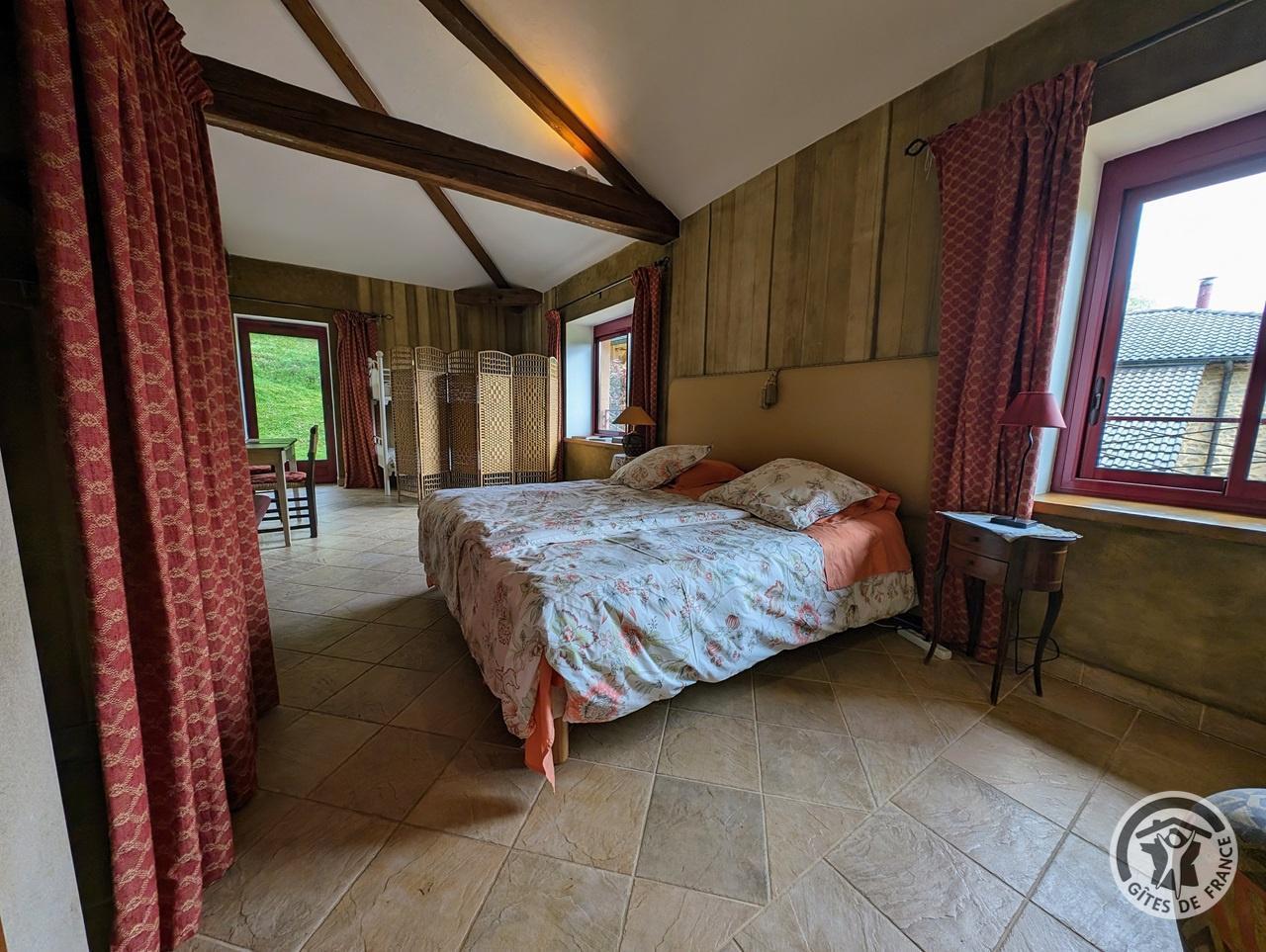 Notre coup de coeur pour cette ancienne ferme située dans le Beaujolais Vert, nous a fait nous installer dans cet endroit retiré, en pleine campagne et créer 5 chambres d'hôtes de caractère, restaurées avec beaucoup d'originalité. A la lisière du massif des bois des Mollières, et au départ des chemins de randonnées pédestres, vtt et équestres, toutes nos chambres (entre 35 et 55 m²) comportent un sanitaire privé (douche et wc). 2 chambres (1 lit 2 personnes 160x200), 3 chambres (familiales ou pour groupe) Possibilité lits supplémentaires. Les petits déjeuners et la table d'hôtes seront servis dans la maison des propriétaires . Idéal pour proposer des stages ou séminaire à un groupe de 10 à 13 personnes. Professeurs de yoga ou de peinture renseignez vous.