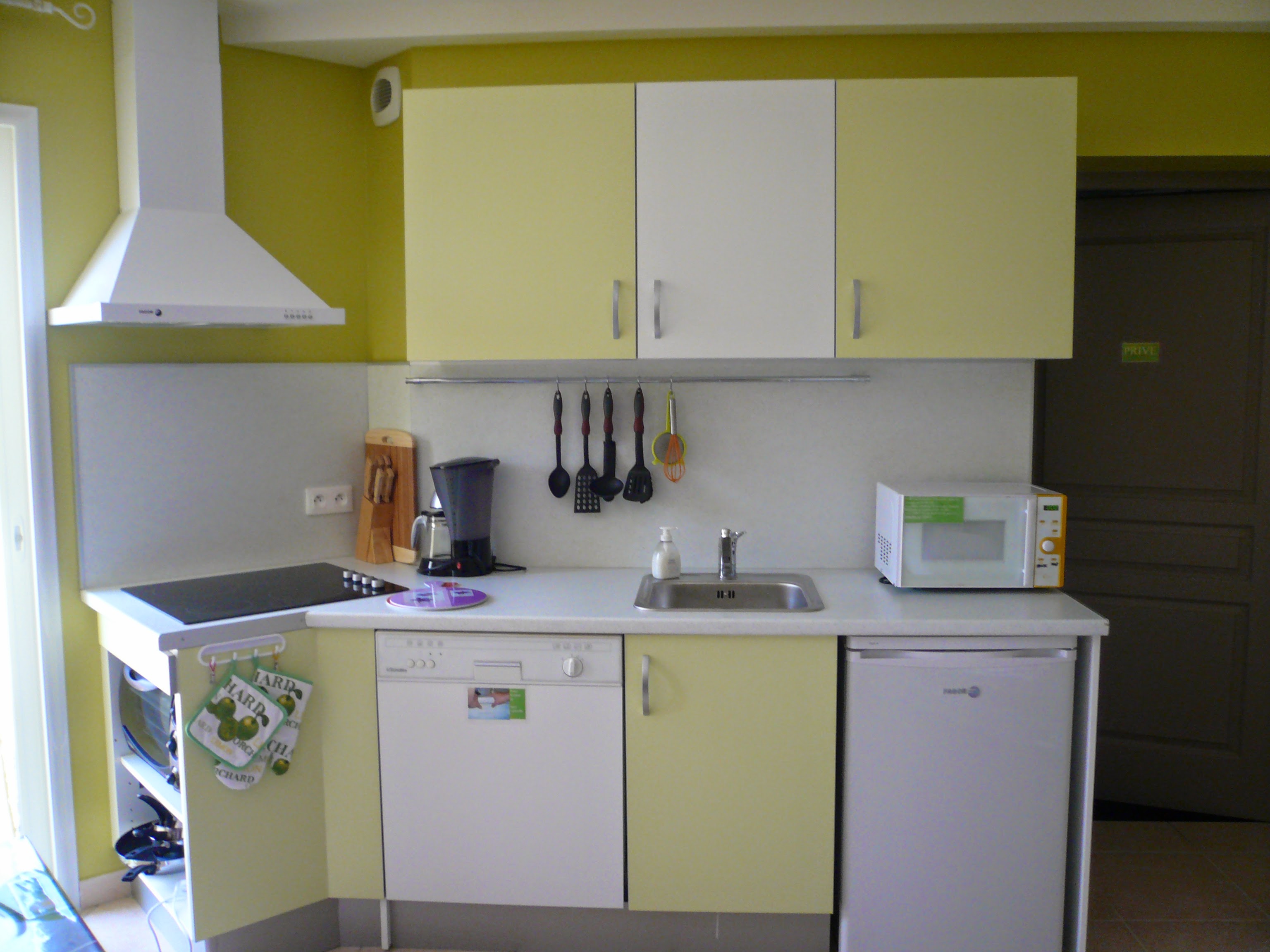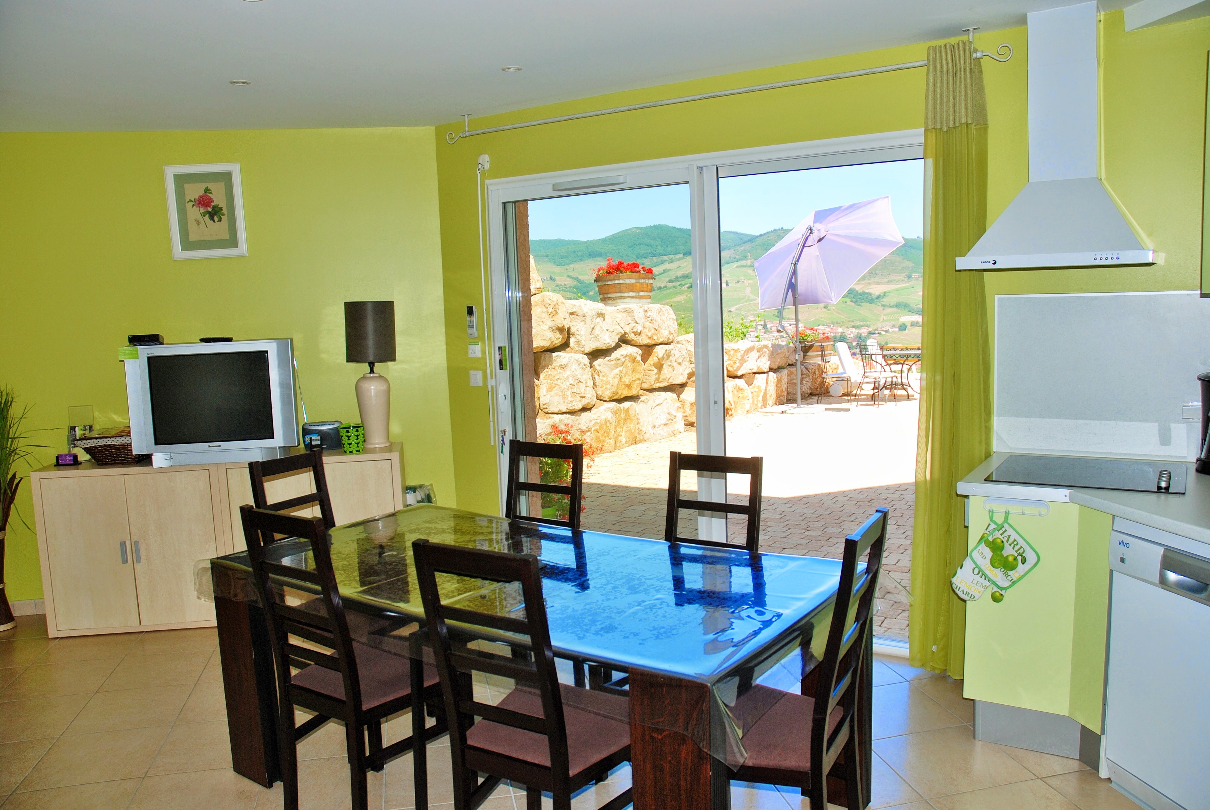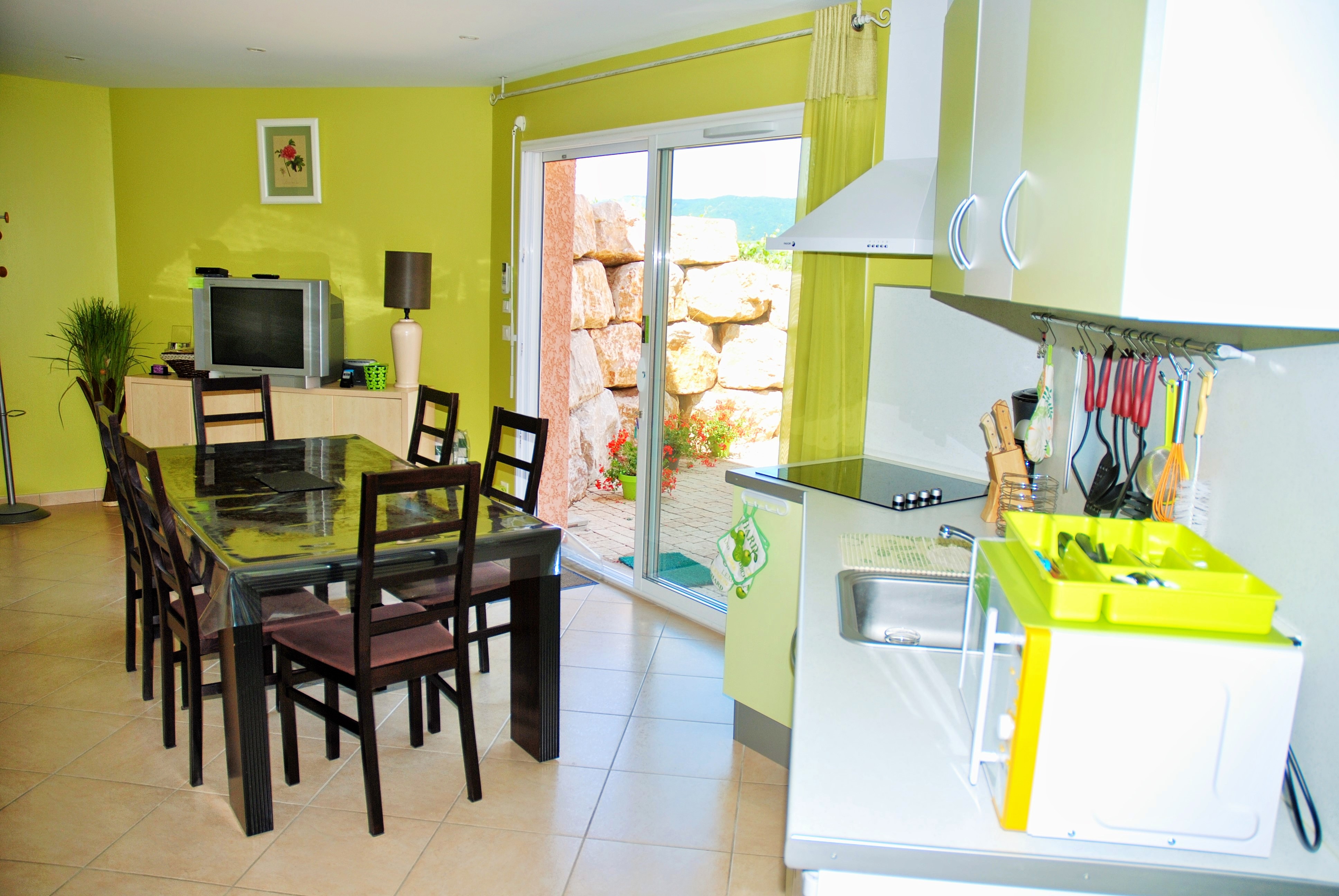Une salle à manger-cuisine entièrement équipée et fonctionnelle.