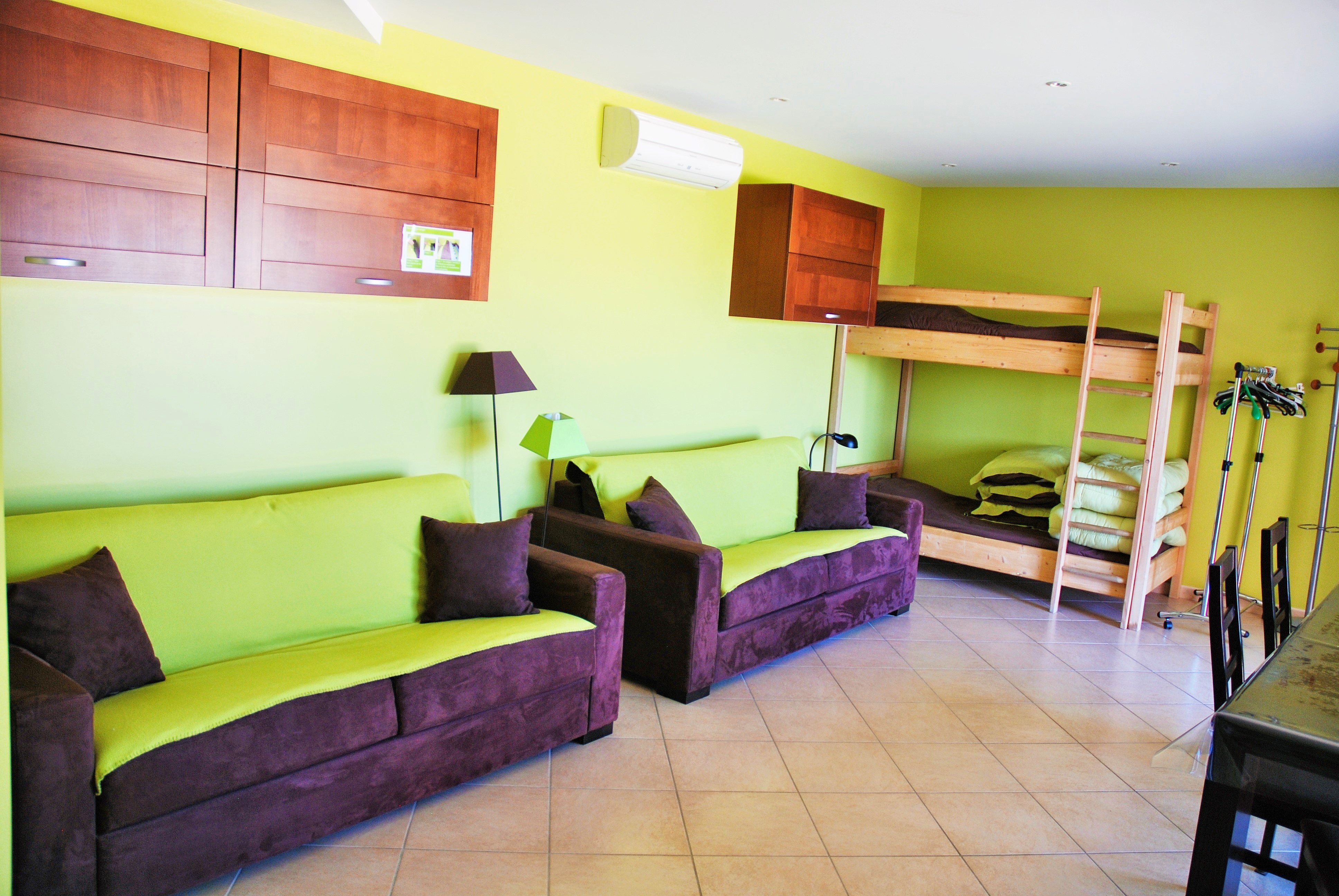L’espace lit (1 à 6 couchages) avec des canapés-lits neufs grands conforts.