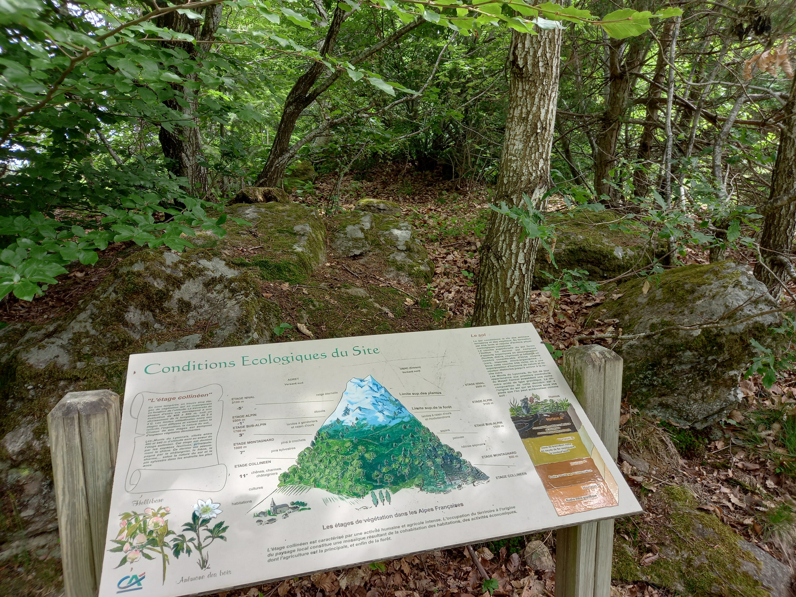 Le sentier géobiologique permet de découvrir le phénomène des réseaux telluriques. Les panneaux explicatifs sont installés sur le site des Verpillères au Parc Monroc.