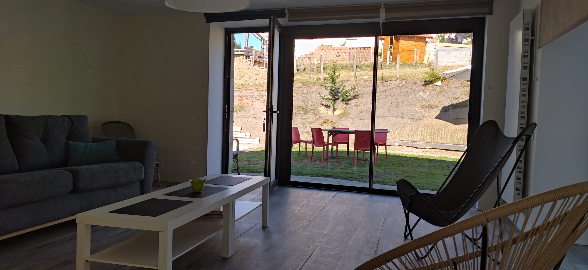 La maison se situe dans un hameau très sécure au milieu des champs et des collines ,elle est aménagée de façon contemporaine et dispose de deux terrasses, un deck nord et une terrasse herbée .Elle est mitoyenne mais les entrées sont sur des façades opposées et très très indépendantes .Aucune partie commune .Elle se trouve à 11 mn en voiture du lac des sapins ,de nombreux chemins de randonnée au départ de la maison .