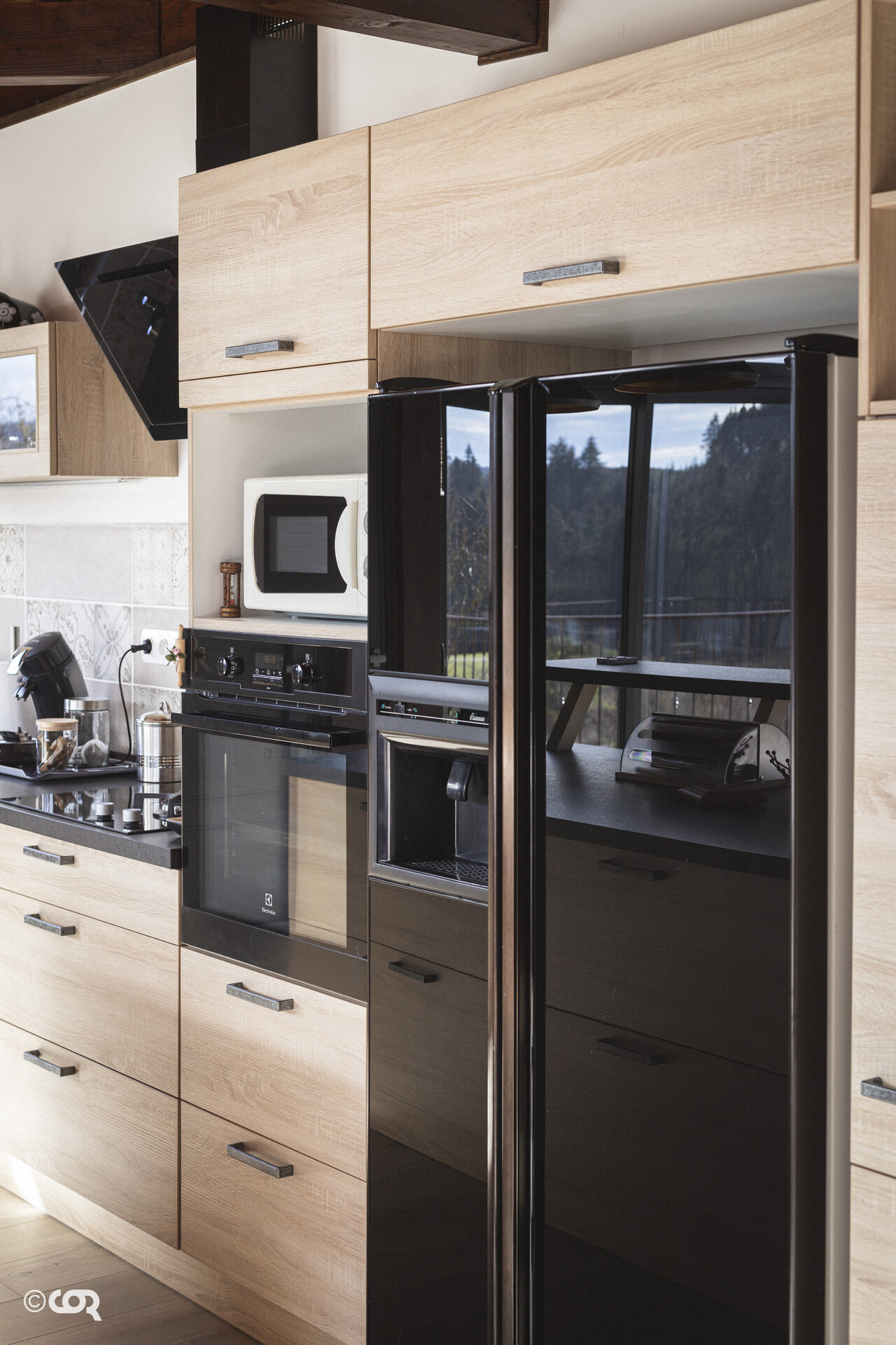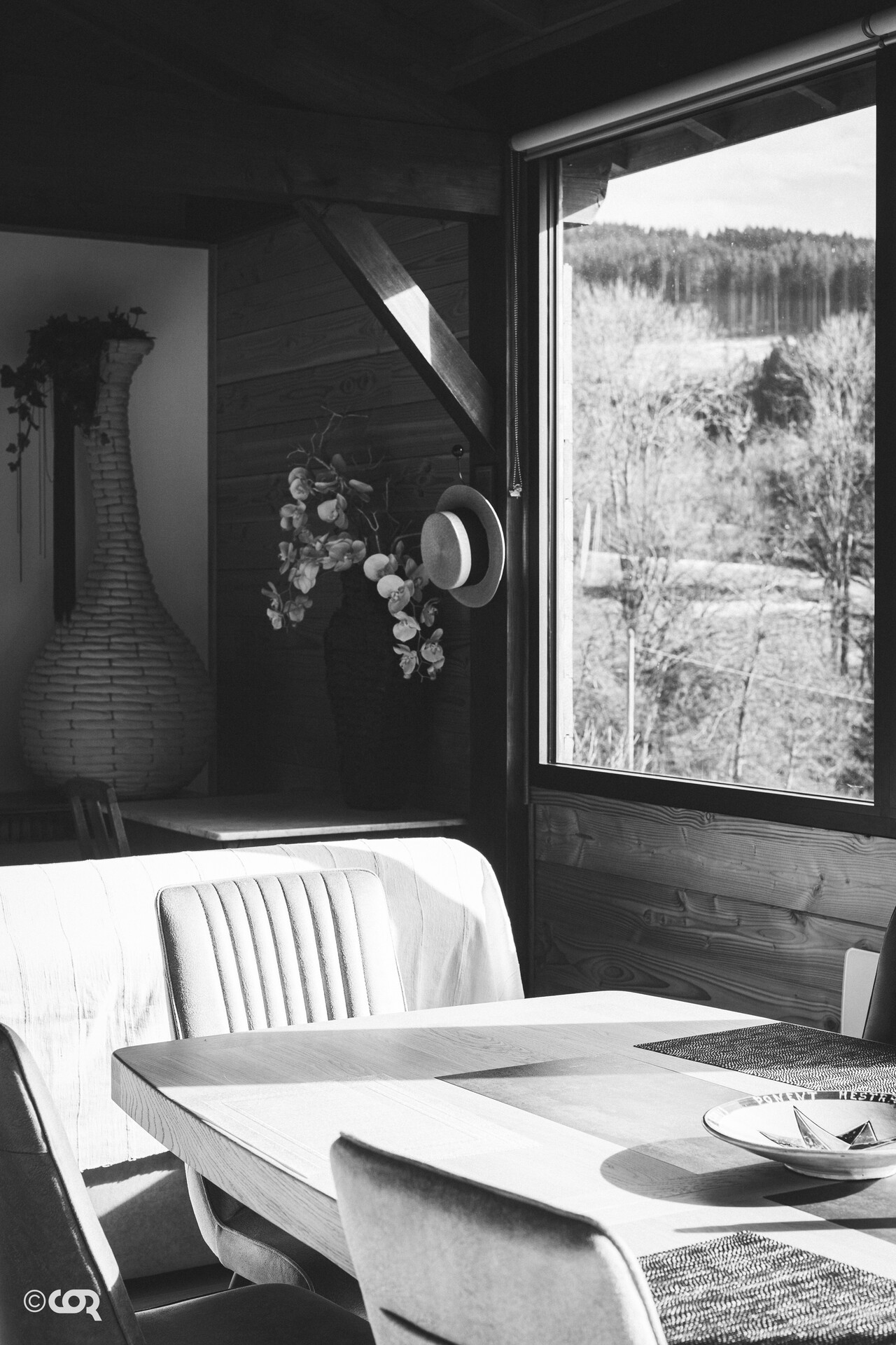 Vous apprécierez l'excellent confort de son intérieur alliant la modernité et le caractère chaleureux du bois. Grande pièce de vie, claire et fonctionnelle, donnant sur une terrasse en bois avec vue sur notre belle campagne. Cette pièce de vie est équipée d'un espace cuisine et d'un coin salon. La chambre est une suite parentale, lit de 160/200, possibilité d'ajouter un lit bébé sur demande.