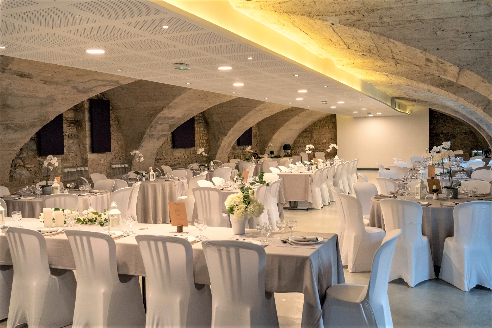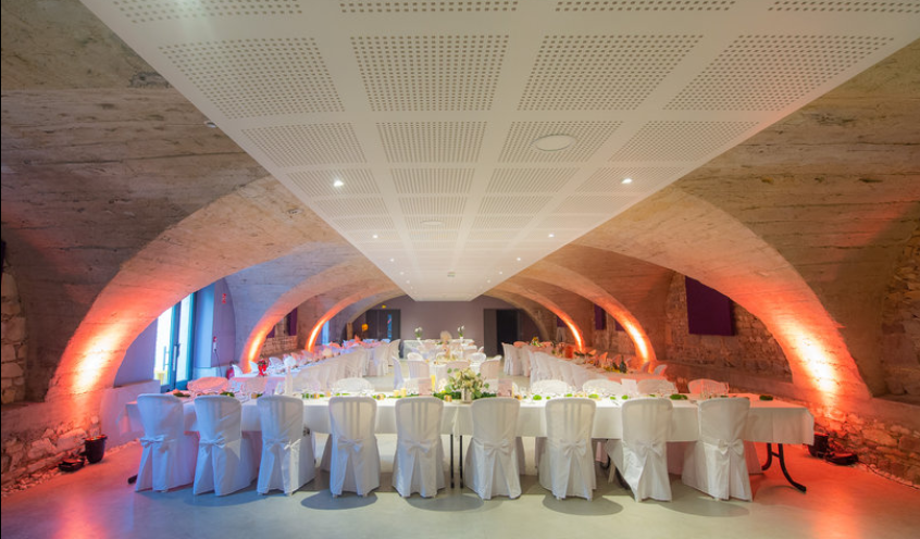 Aux Chais / Communs, pour l'accueil de 50 à 150 personnes: une grande salle de réception de 180 m² vous permettra d’accueillir jusqu’à 120 personnes assises en conservant une petite piste de danse et jusqu’à 150 personnes sans piste de danse. Ceci complété d’un espace pour les traiteurs (pas d'équipement de cuisson, frigos uniquement), d’une entrée avec vestiaires, et de sanitaires dont un WC PMR. Une grande pièce de 74m² est aussi mise à disposition au dessus des Chais. Possibilité de couchage aux dortoirs des Communs comprenant 44 lits avec lavabos dans les chambres et douches et sanitaires sur palier + possibilité de louer également le Château pour avoir accès à la cuisine équipée et aux 31 couchages supplémentaires.
