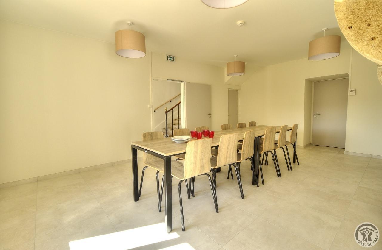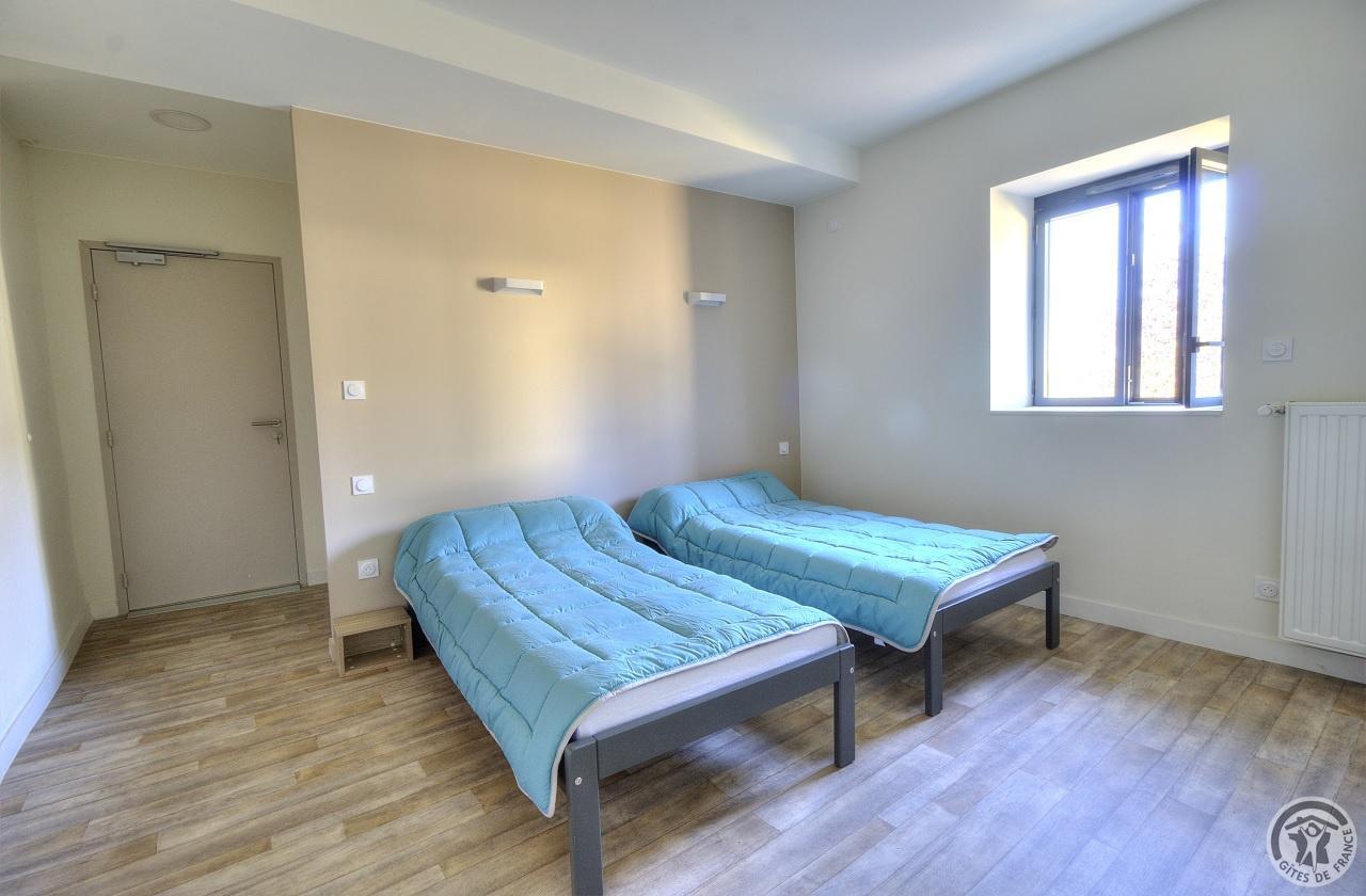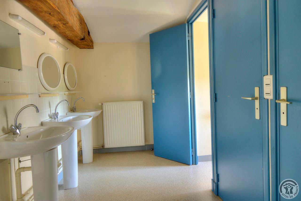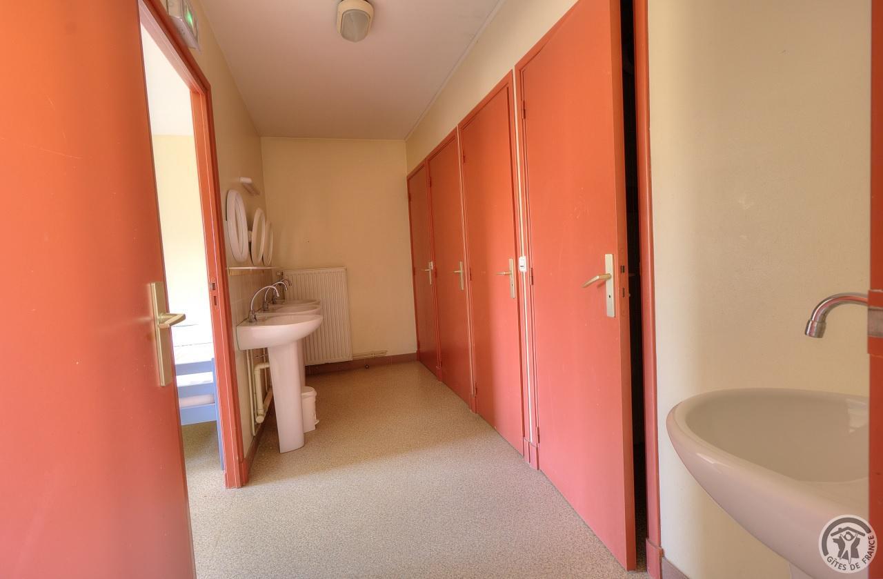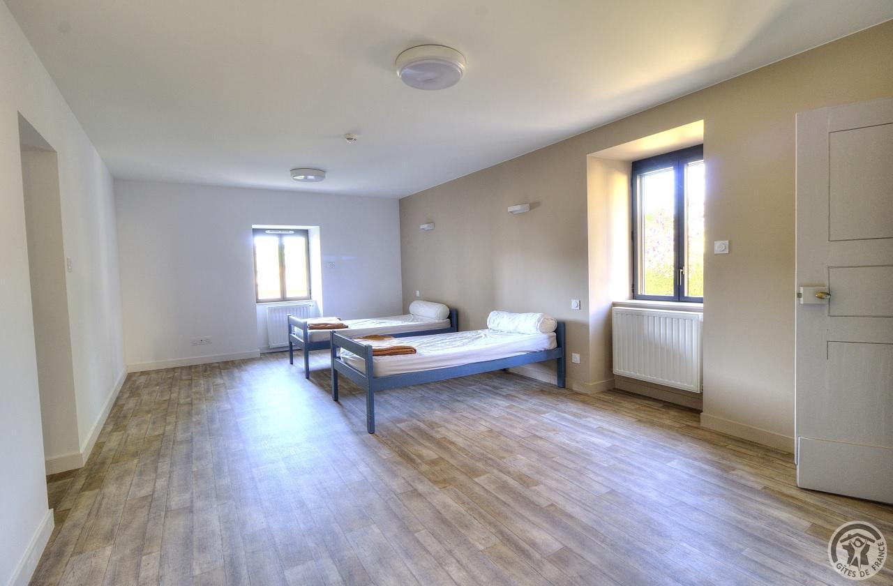 R.d.c. : pièce de jour, coin-cuisine tout équipé (l.vaisselle) donnant directement sur l'extérieur (terrain aménagé privatif non clos). Sanitaires. 1 ch. (1 lit 1 pers.), sanit. privés pr accueil d'une pers. handicapée. Sur 2 étages : 3 ch. (4 lits 1 pers.), 2 ch. (2 lits 1 pers.), et 1 dortoir (5 lits 1 pers.). Armoire de rangement dans chaque chambre. Sanit. privatifs (2 douches, 2 wc, lavabos pour 2 ch.). Bon confort. Ch. central. Poss. salle suppl. pour activité. Au village, salle des fêtes. Auberge à 200 m. (poss. paniers pique-nique). Idéal pour un regroupement en famille ou amis.