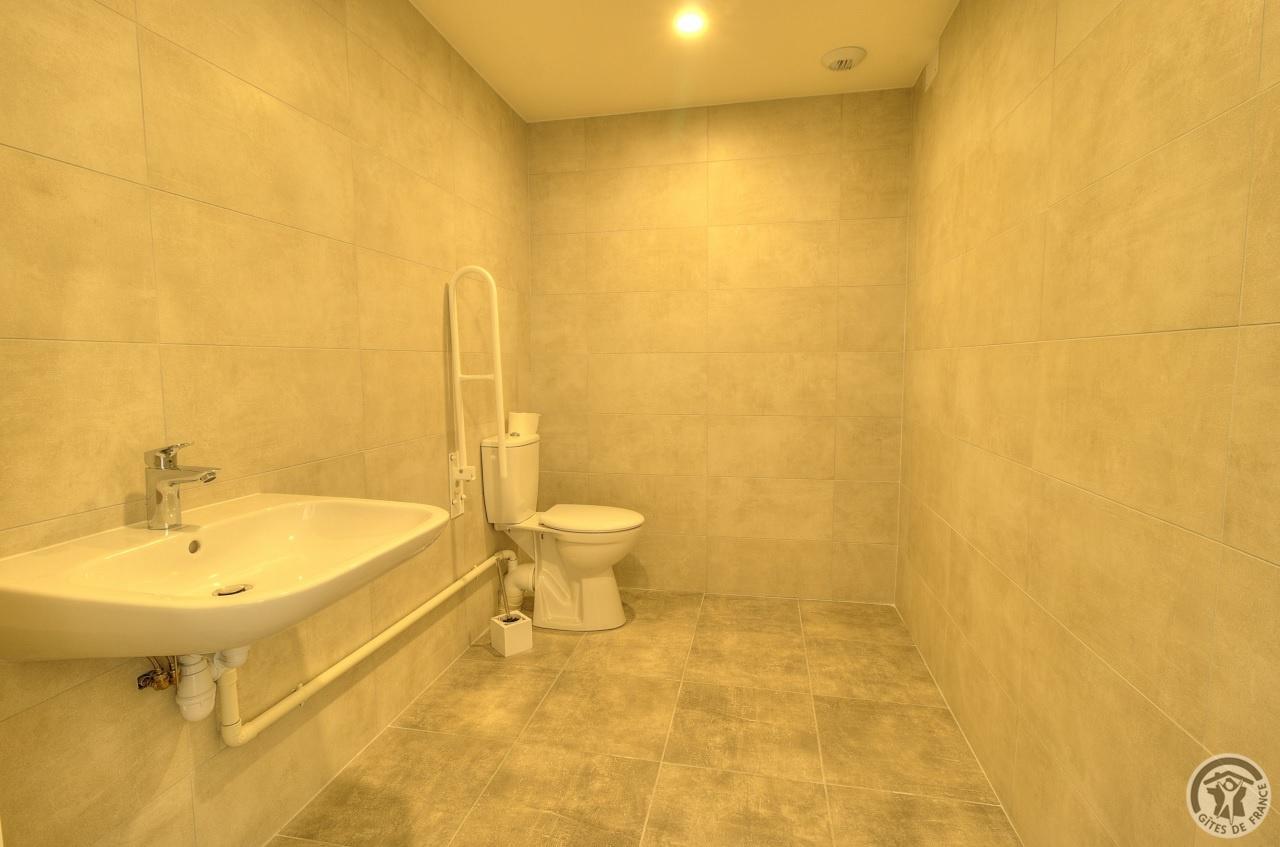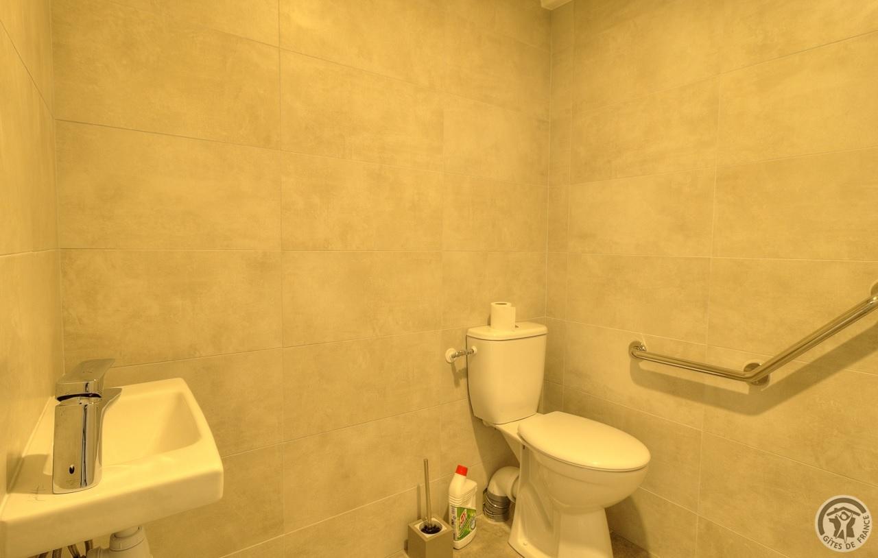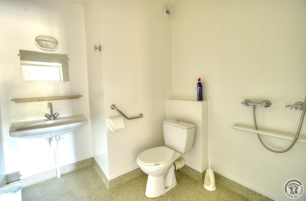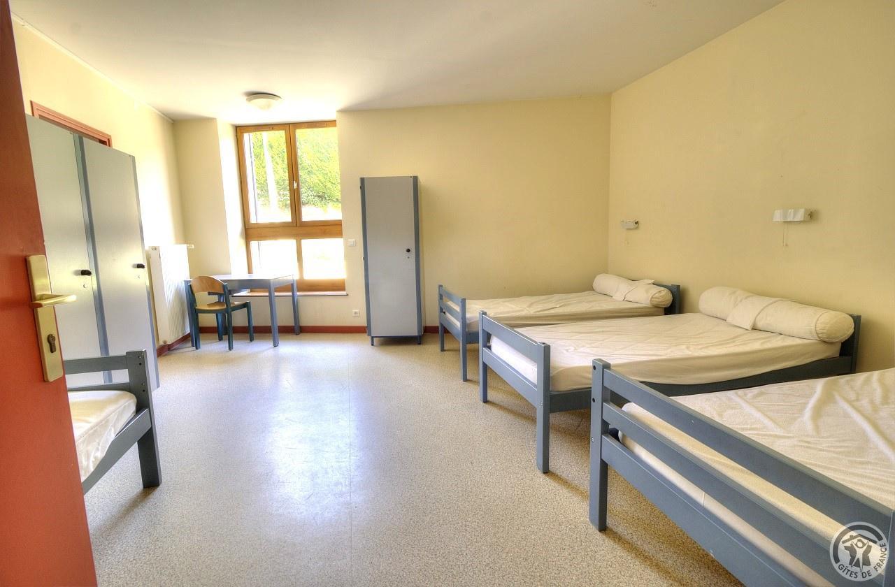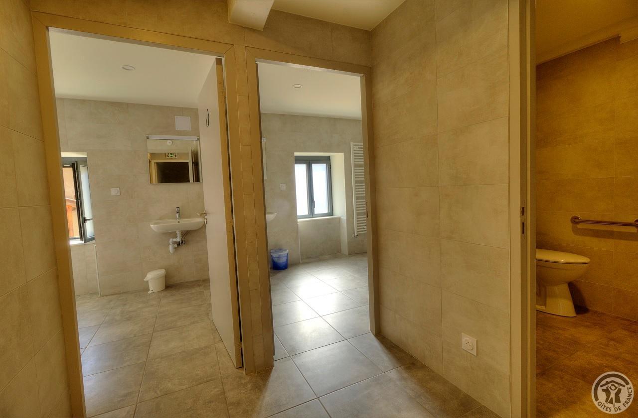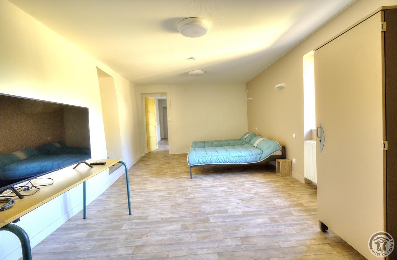 R.d.c. : pièce de jour, coin-cuisine tout équipé (l.vaisselle) donnant directement sur l'extérieur (terrain aménagé privatif non clos). Sanitaires. 1 ch. (1 lit 1 pers.), sanit. privés pr accueil d'une pers. handicapée. Sur 2 étages : 3 ch. (4 lits 1 pers.), 2 ch. (2 lits 1 pers.), et 1 dortoir (5 lits 1 pers.). Armoire de rangement dans chaque chambre. Sanit. privatifs (2 douches, 2 wc, lavabos pour 2 ch.). Bon confort. Ch. central. Poss. salle suppl. pour activité. Au village, salle des fêtes. Auberge à 200 m. (poss. paniers pique-nique). Idéal pour un regroupement en famille ou amis.