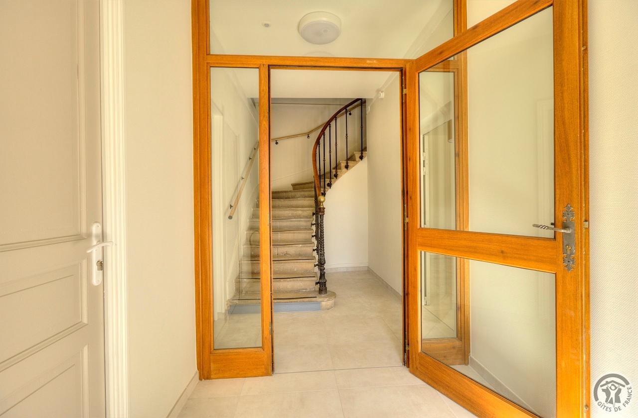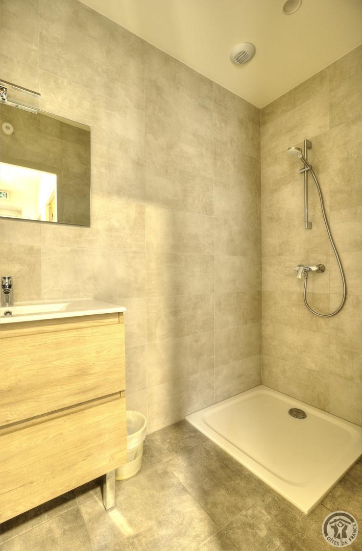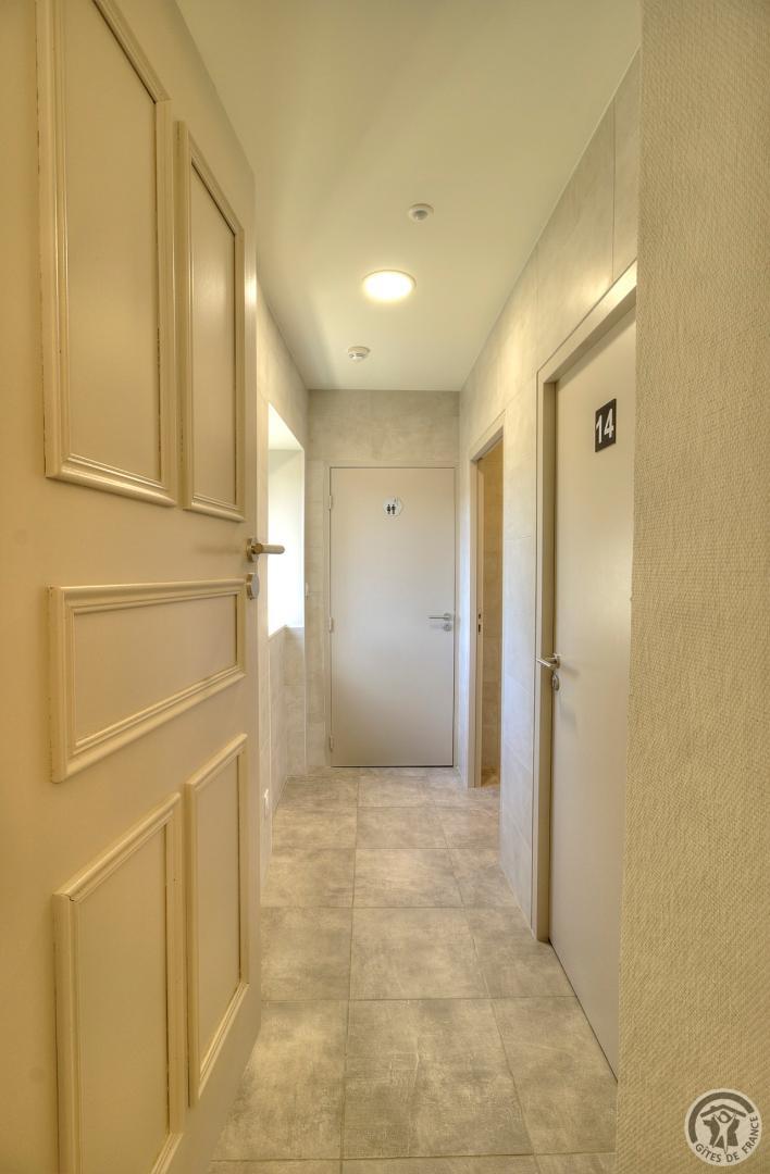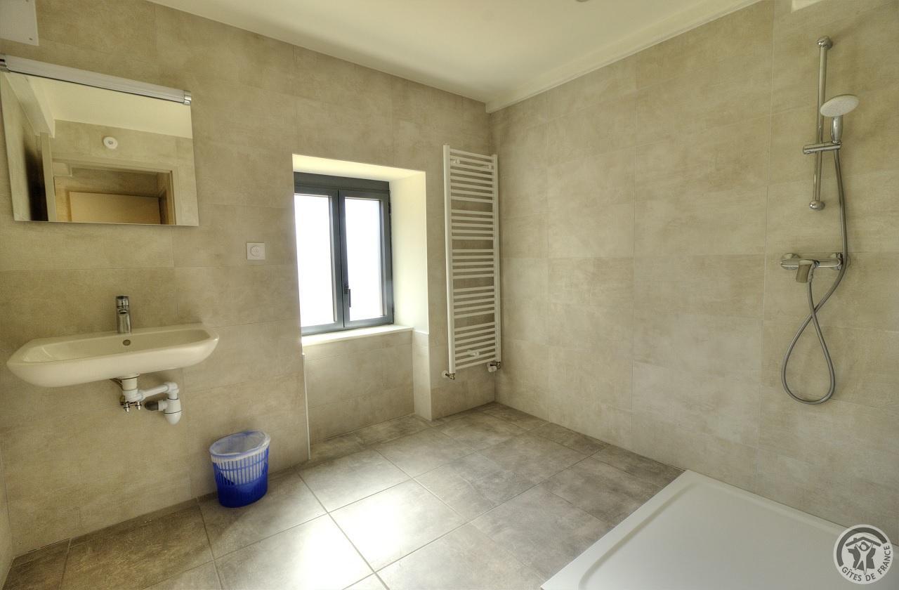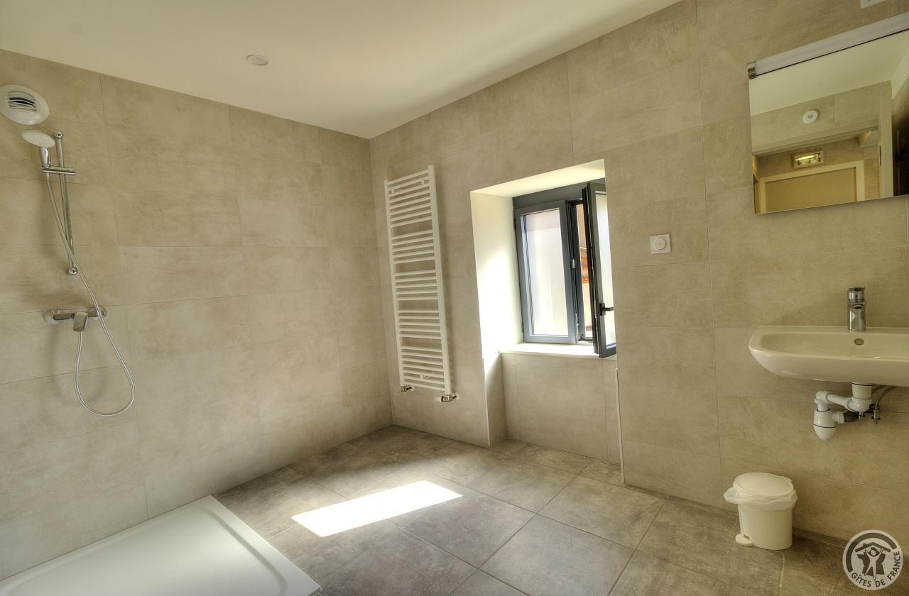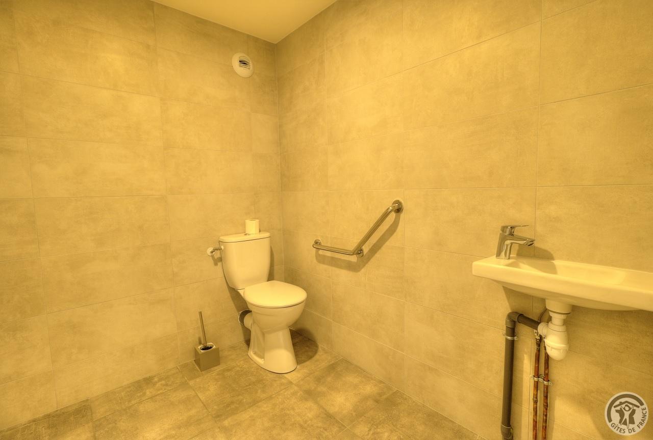 R.d.c. : pièce de jour, coin-cuisine tout équipé (l.vaisselle) donnant directement sur l'extérieur (terrain aménagé privatif non clos). Sanitaires. 1 ch. (1 lit 1 pers.), sanit. privés pr accueil d'une pers. handicapée. Sur 2 étages : 3 ch. (4 lits 1 pers.), 2 ch. (2 lits 1 pers.), et 1 dortoir (5 lits 1 pers.). Armoire de rangement dans chaque chambre. Sanit. privatifs (2 douches, 2 wc, lavabos pour 2 ch.). Bon confort. Ch. central. Poss. salle suppl. pour activité. Au village, salle des fêtes. Auberge à 200 m. (poss. paniers pique-nique). Idéal pour un regroupement en famille ou amis.