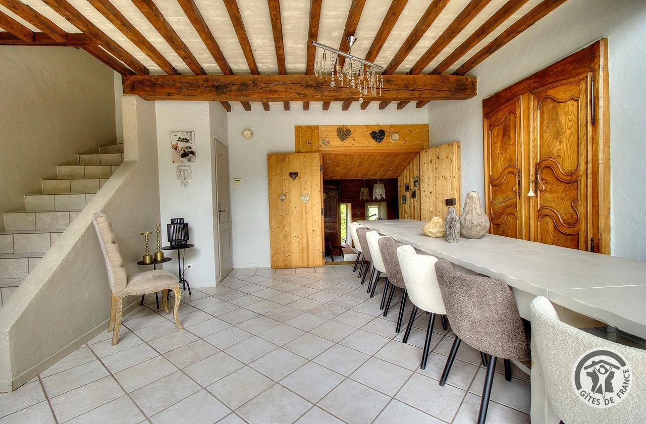 Dans un cadre nature et totalement indépendant, gîte avec piscine et terrain extérieur comprenant: un gite principal"la Bergerie"composée de 15 couchages et pouvant accueillir 20/25 personnes à table et 1 gîte "le Chalet" d'une capacité de 6/10 couchages.