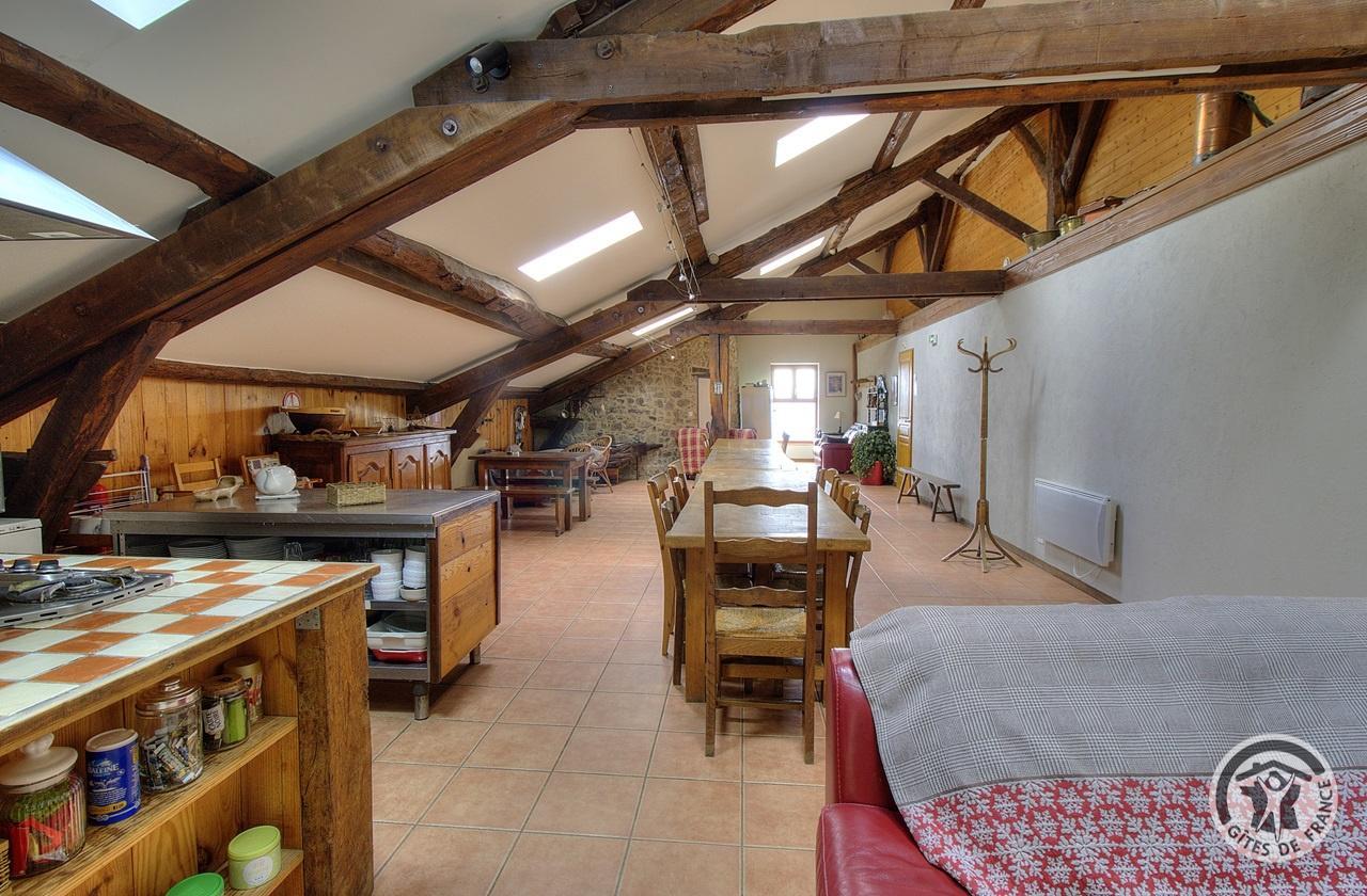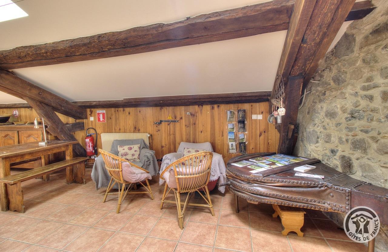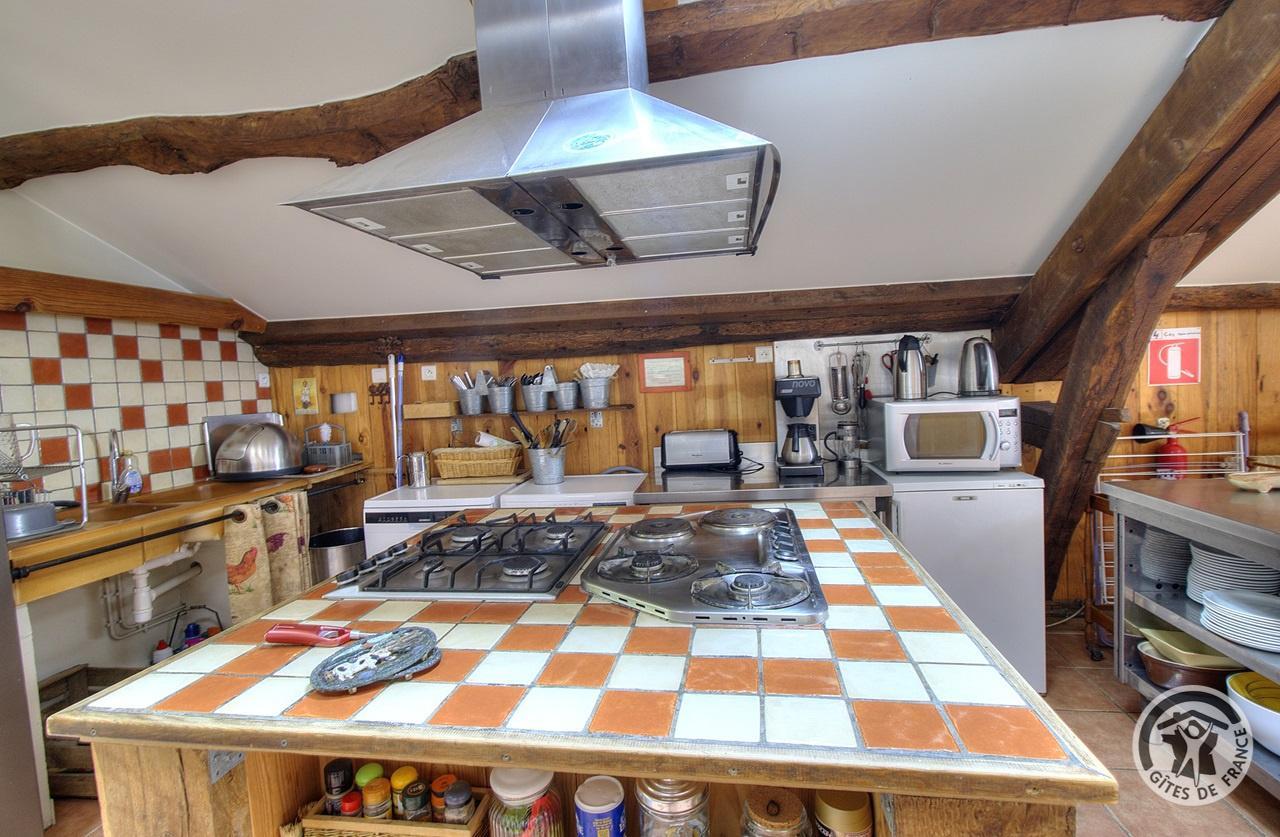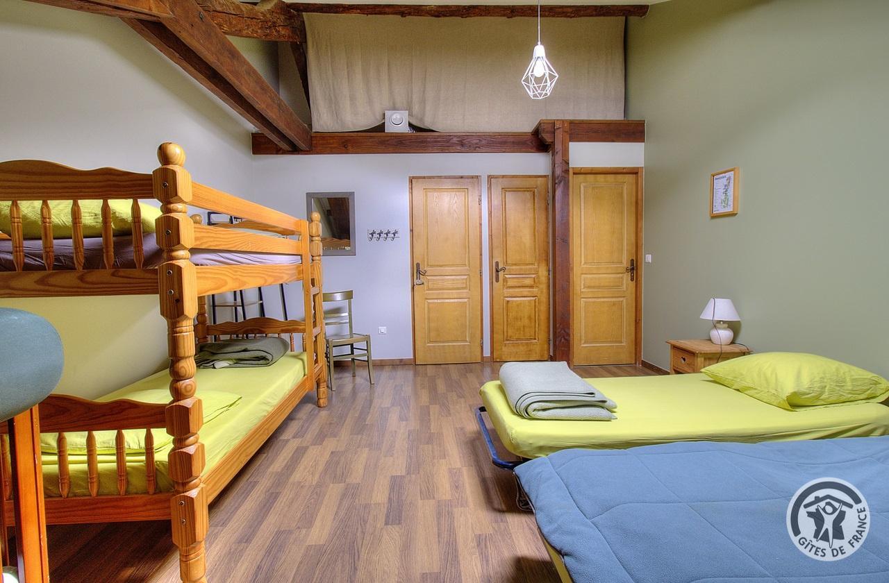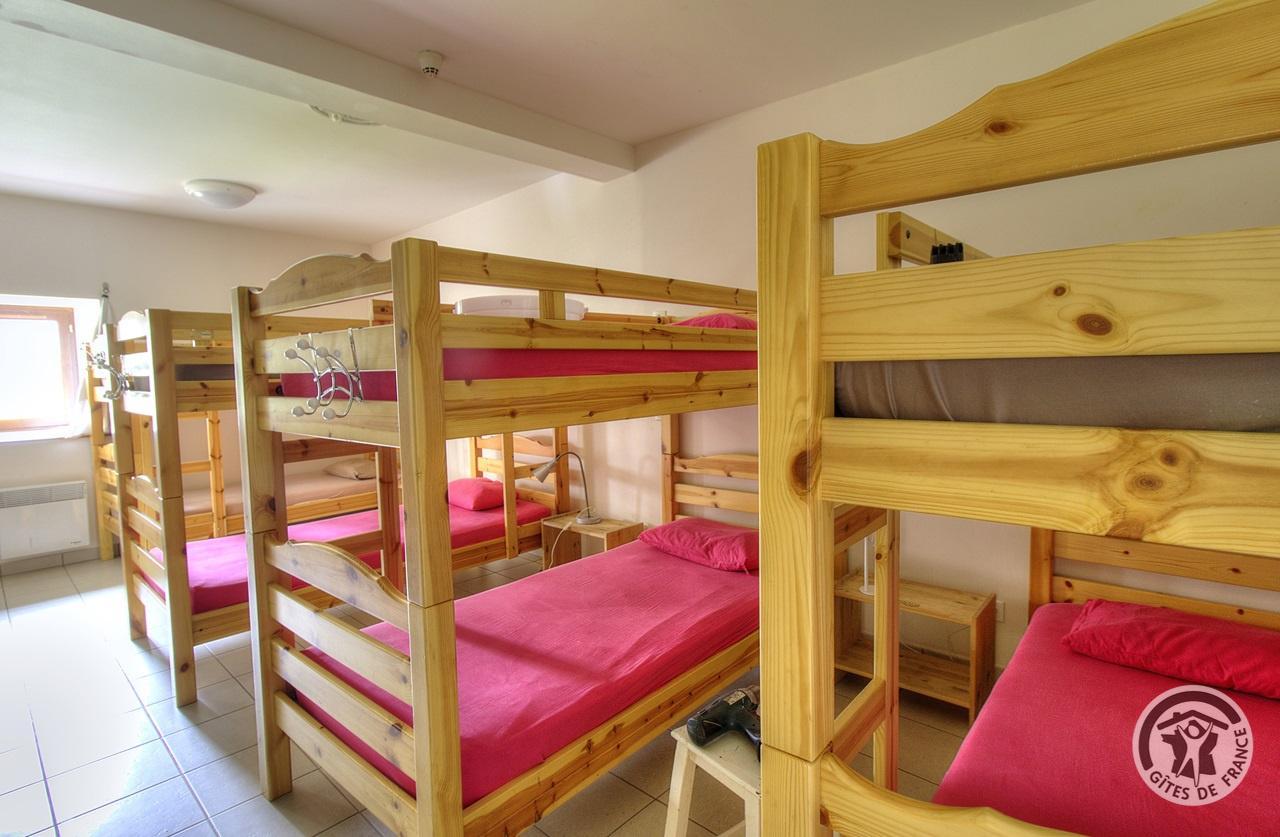 Sur place, l'auberge est à votre service (menus à base de produits locaux). Des poneys peuvent accompagner vos randonnées pour promener les plus petits. Ambiance sympathique, dans un cadre exceptionnel en pleine nature. Au dessus d'un cuvage, possibilité de location en supplément pour vos soirées, accès indépendant : 2 dortoirs (5 lits 1 pers.), 2 dortoirs (1 lit 2 pers. et 3 lits 1 pers.). Sanitaires privés ds chacun. Grande pièce à vivre (100 m²) donnant sur une terrasse privée, coin-cuisine, coin-repas, coin détente (cheminée) Possibilité de couchages supplémentaire dans une partie annexe pour 12 personnes avec sanitaires + 5 dans une petite maison sur le même site. Salle de réception (30 pers.) dans un ancien cuvage.