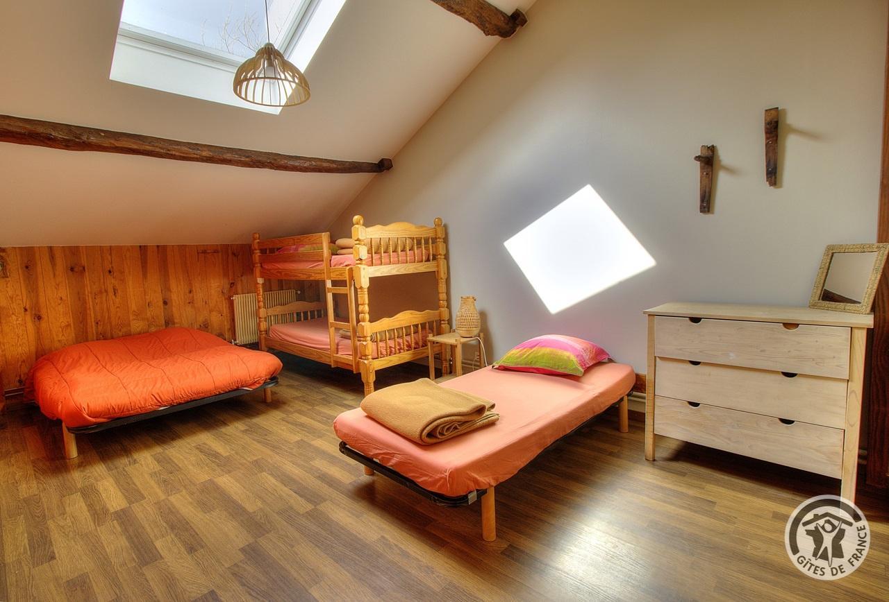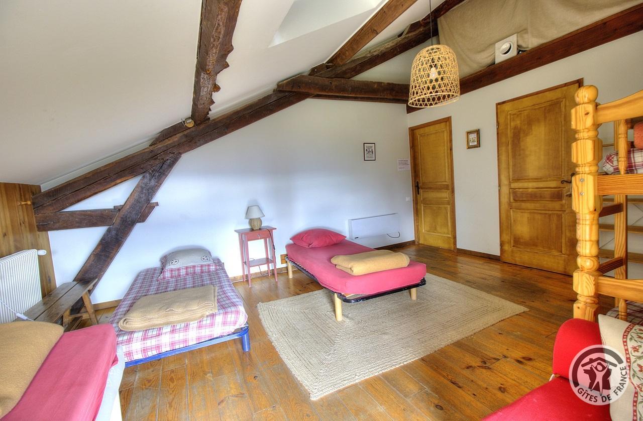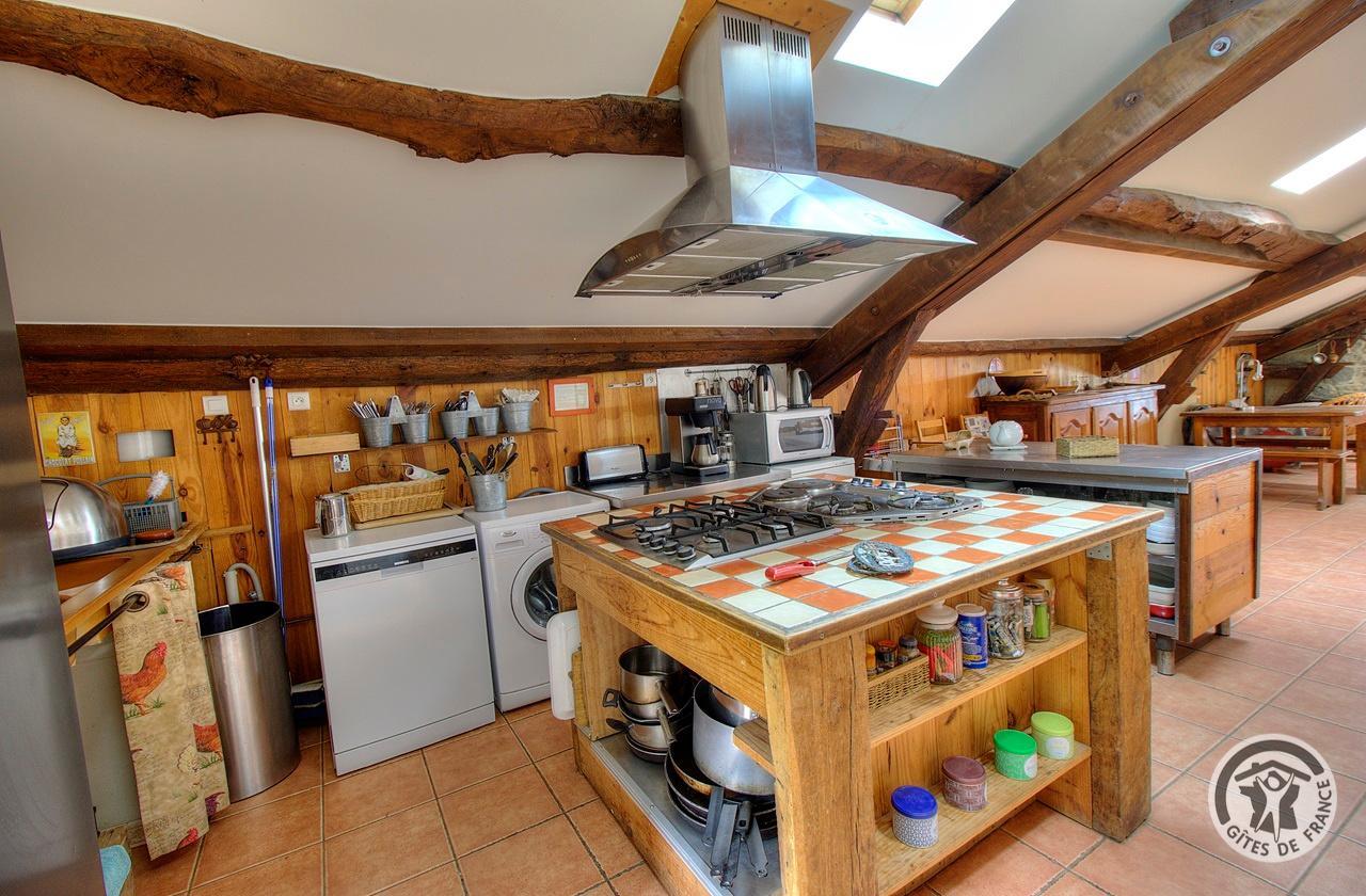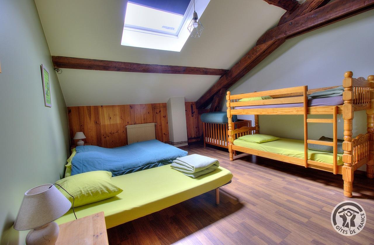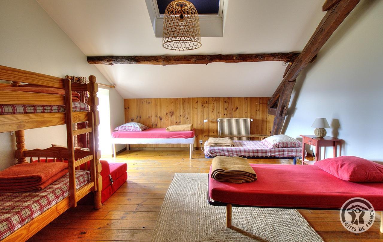 Sur place, l'auberge est à votre service (menus à base de produits locaux). Des poneys peuvent accompagner vos randonnées pour promener les plus petits. Ambiance sympathique, dans un cadre exceptionnel en pleine nature. Au dessus d'un cuvage, possibilité de location en supplément pour vos soirées, accès indépendant : 2 dortoirs (5 lits 1 pers.), 2 dortoirs (1 lit 2 pers. et 3 lits 1 pers.). Sanitaires privés ds chacun. Grande pièce à vivre (100 m²) donnant sur une terrasse privée, coin-cuisine, coin-repas, coin détente (cheminée) Possibilité de couchages supplémentaire dans une partie annexe pour 12 personnes avec sanitaires + 5 dans une petite maison sur le même site. Salle de réception (30 pers.) dans un ancien cuvage.