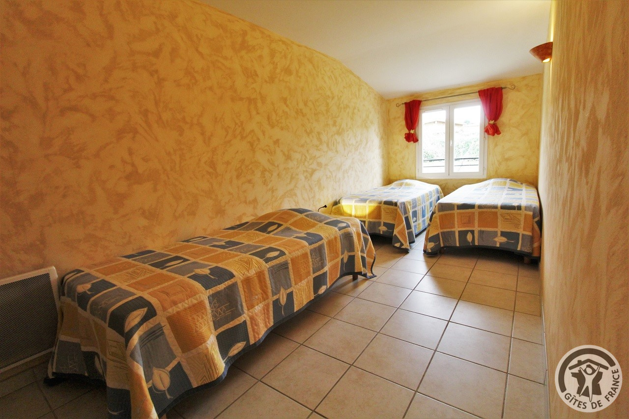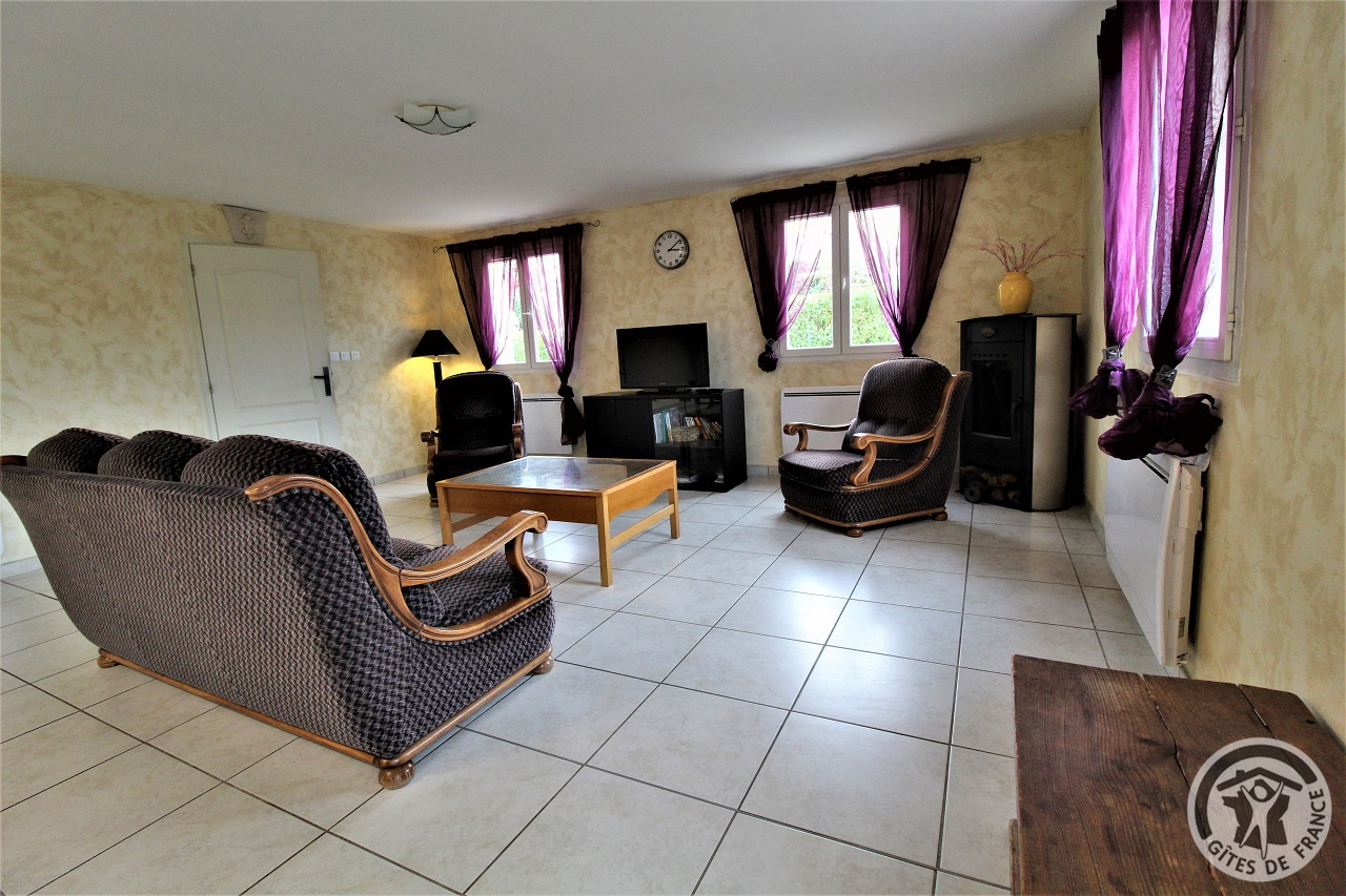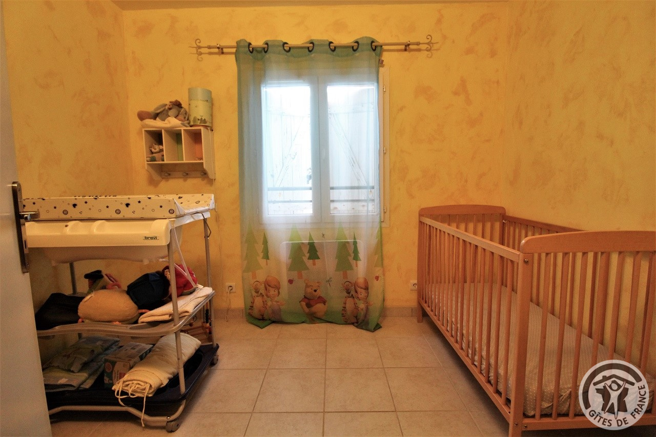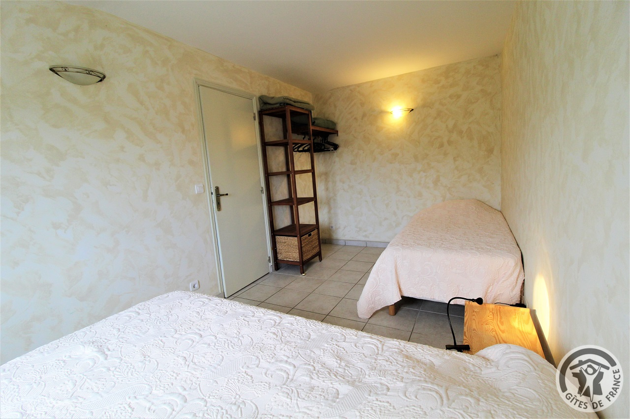 A l'extérieur : terrain aménagé clos, pelouse avec salon de jardin couvert. Vaste terrain non clos pour parking et jeux. Idéal pour un regroupement familial. Convient aussi pour la clientèle individuelle (à la nuitée uniquement en semaine).