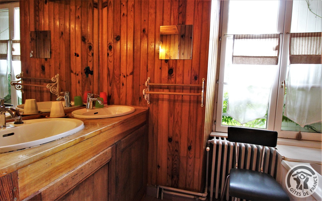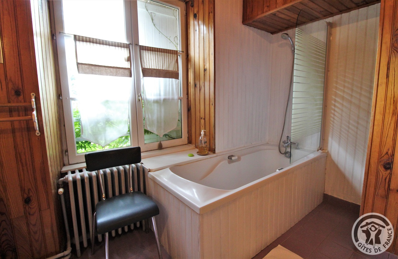 salle de bains avec baignoire et douche, wc séparé. Sur place, vous