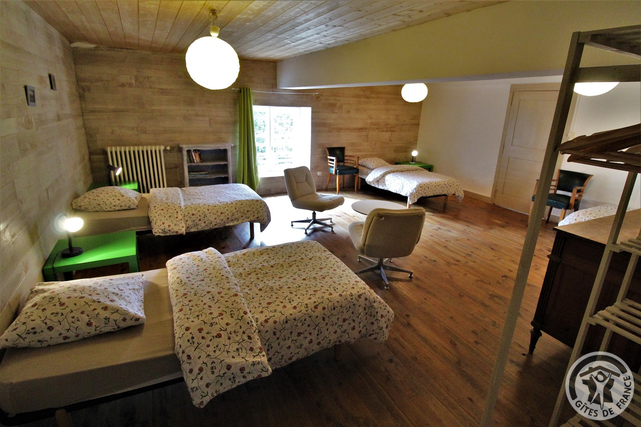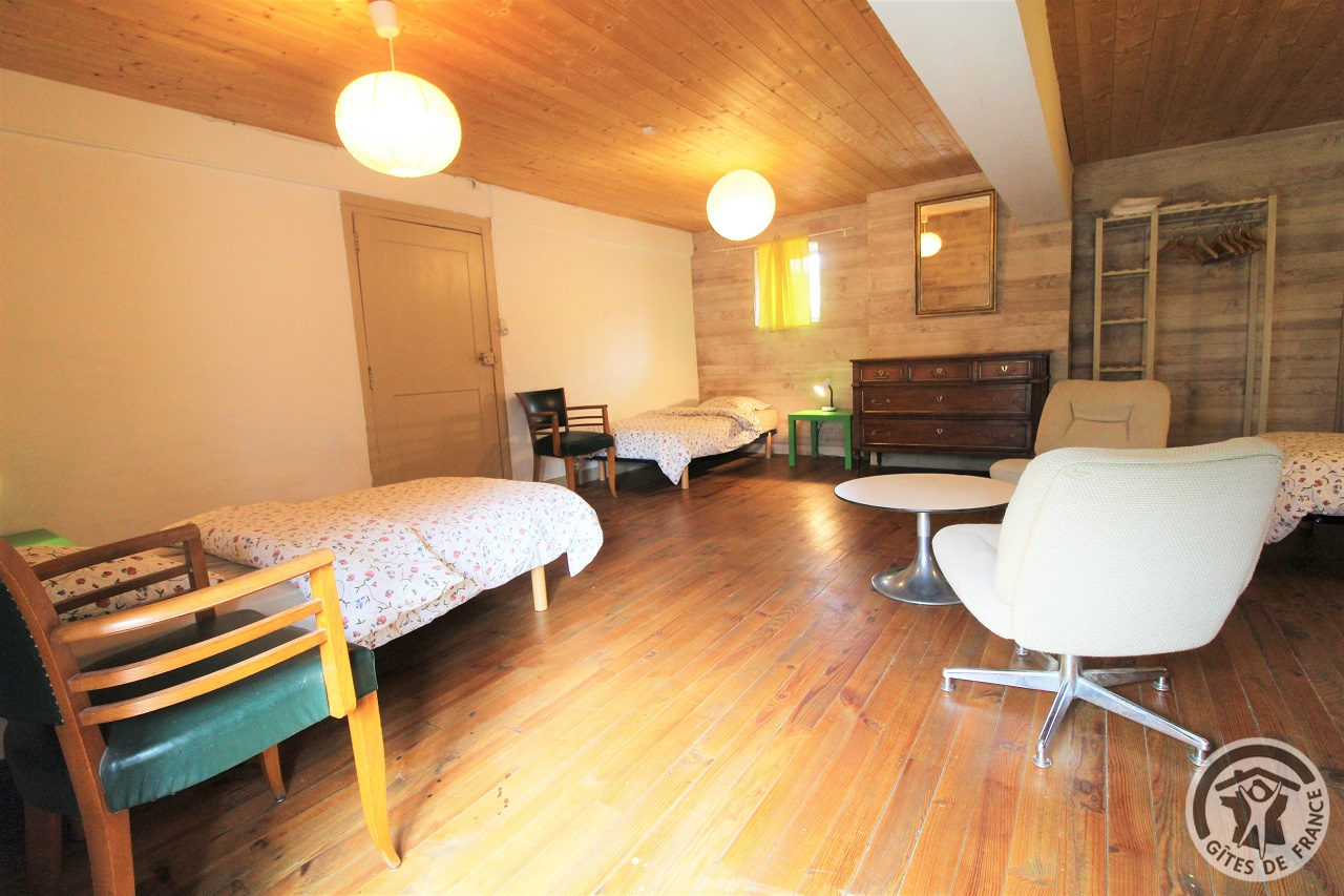 chambres (1 chambre 4 lits 1 pers., 2 chambres 1 lit 2 pers. ds chacune,