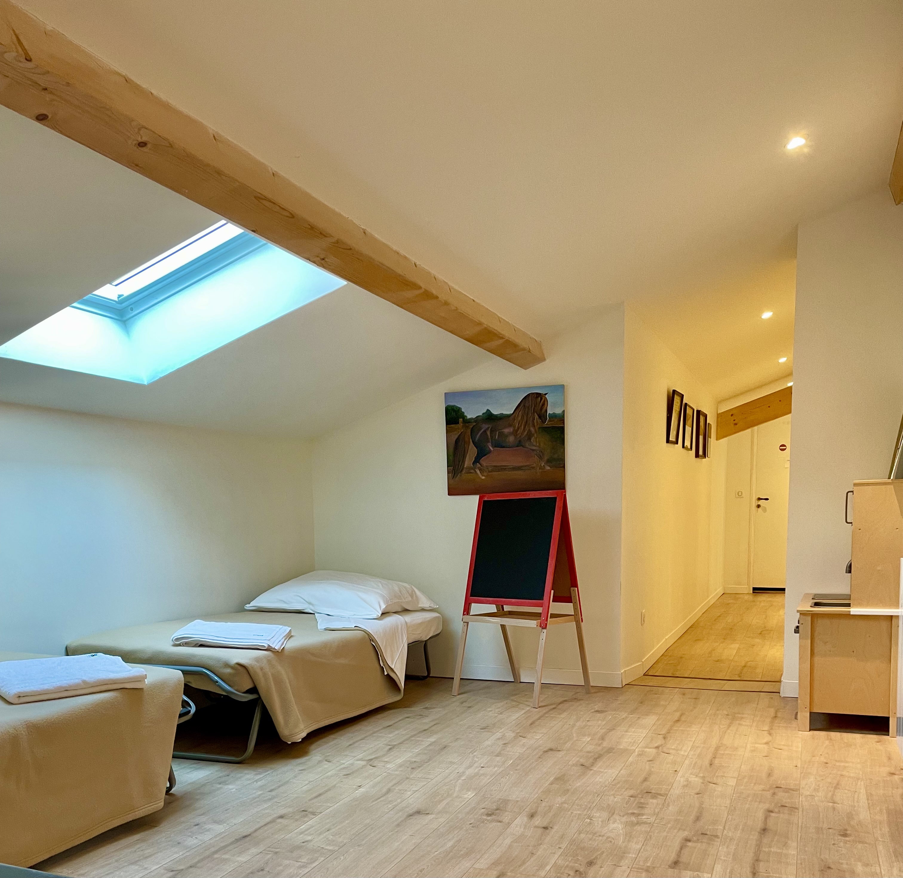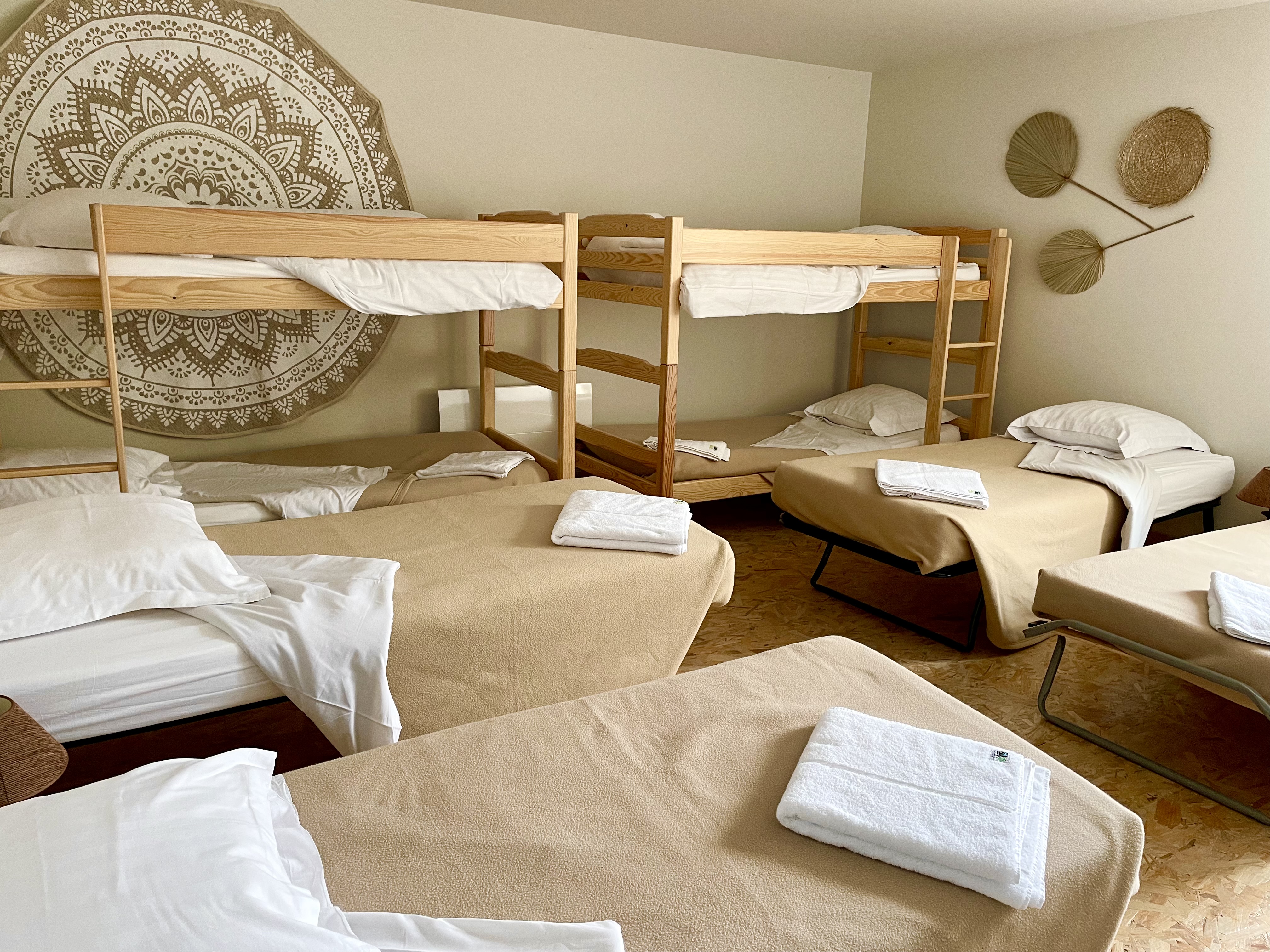 Il est idéal pour vos regroupements en famille ou entre amis. Grande maison indépendante, de caractère. La maison d’hôtes dispose au rez-de-chaussée, d'un salon, et une chambre pour 2 personnes (avec son sanitaire privatif, douche, lavabo et wc). Toutes les pièces ouvrent directement sur la terrasse. A l'étage : 6 chambres avec chacune leur sanitaire complet (1 chambre de 2, 1 chambre de 3 et 2 chambres familiales pour 4 personnes, 1 chambre de 5 et un dortoir). Cette maison a été entièrement restaurée avec de superbes matériaux (poutres apparentes, sol parquet ou béton de ciment...), les couchages sont en grande dimension, les draps et linge de toilette fournis. La salle de réception ainsi que la cuisine sont là pour vous accueillir dans un espace de 170m2. Les extérieurs vous raviront pour leur calme et leur charme