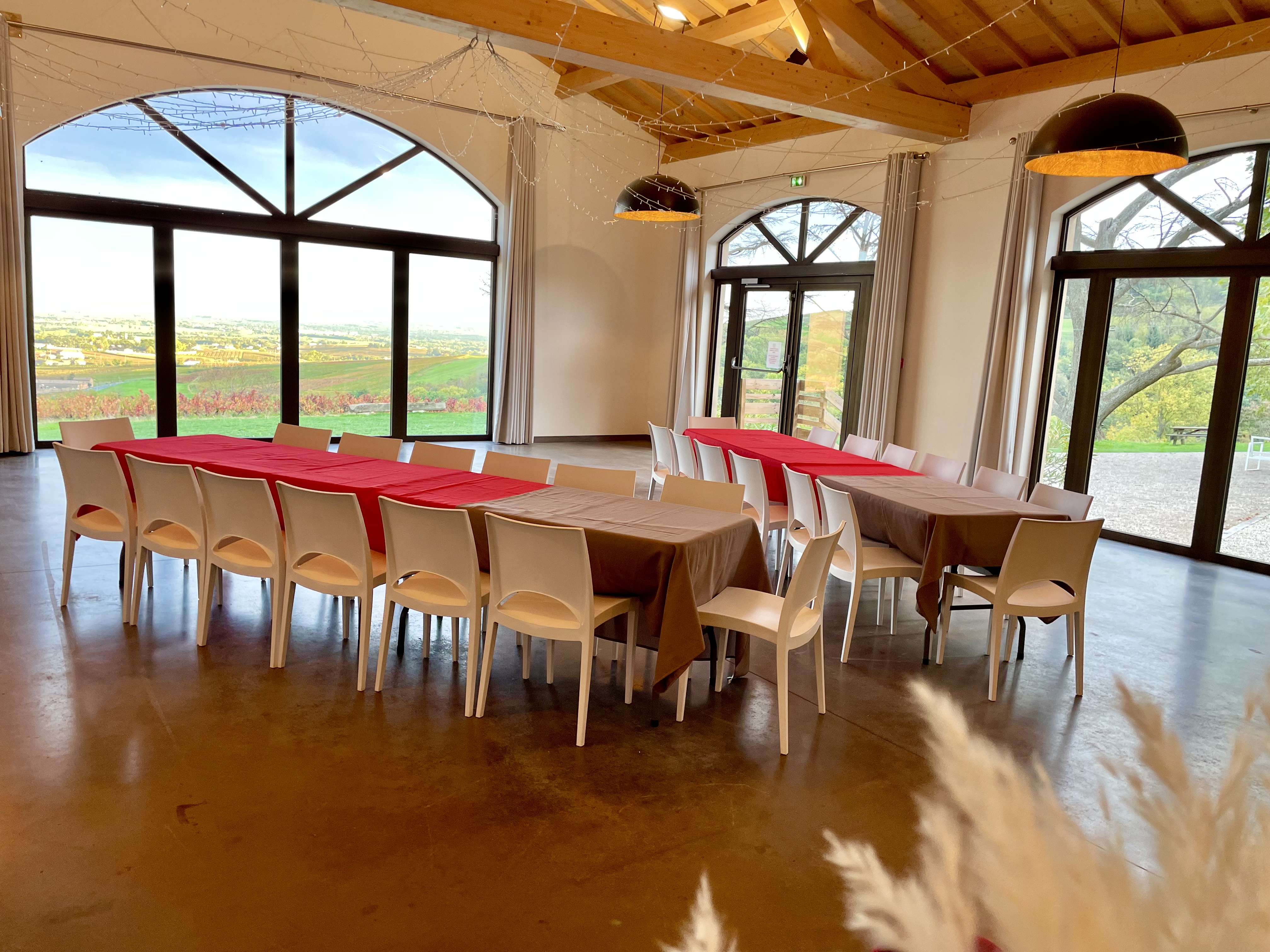 A découvrir ce superbe hébergement pour 30 personnes dans 7 chambres situé en plein coeur des vignes et jouissant d'une vue extraordinaire sur le Beaujolais, ses vignobles, le Mont Brouilly et certains jours, la Chaîne des Alpes et le Mont Blanc.