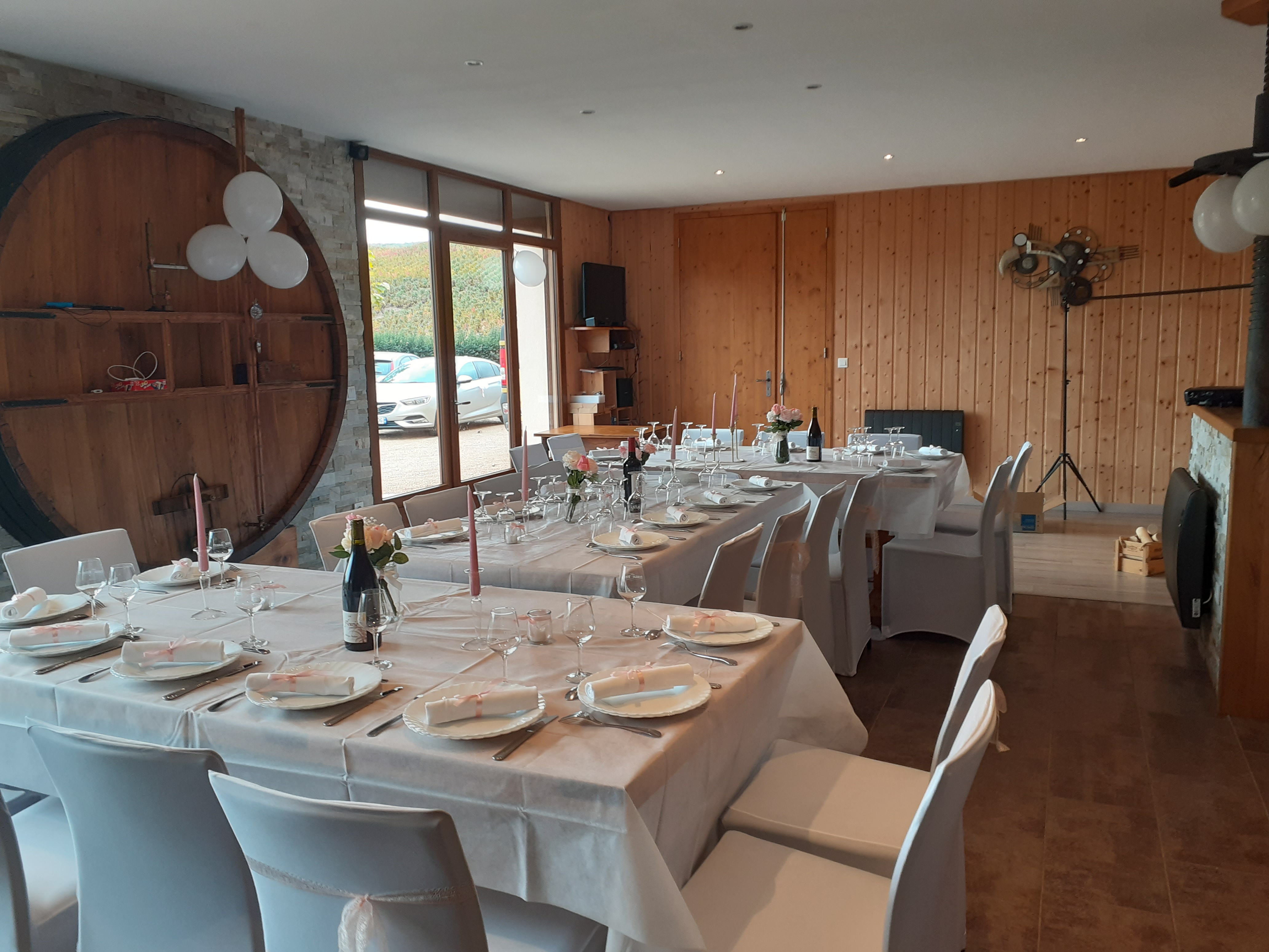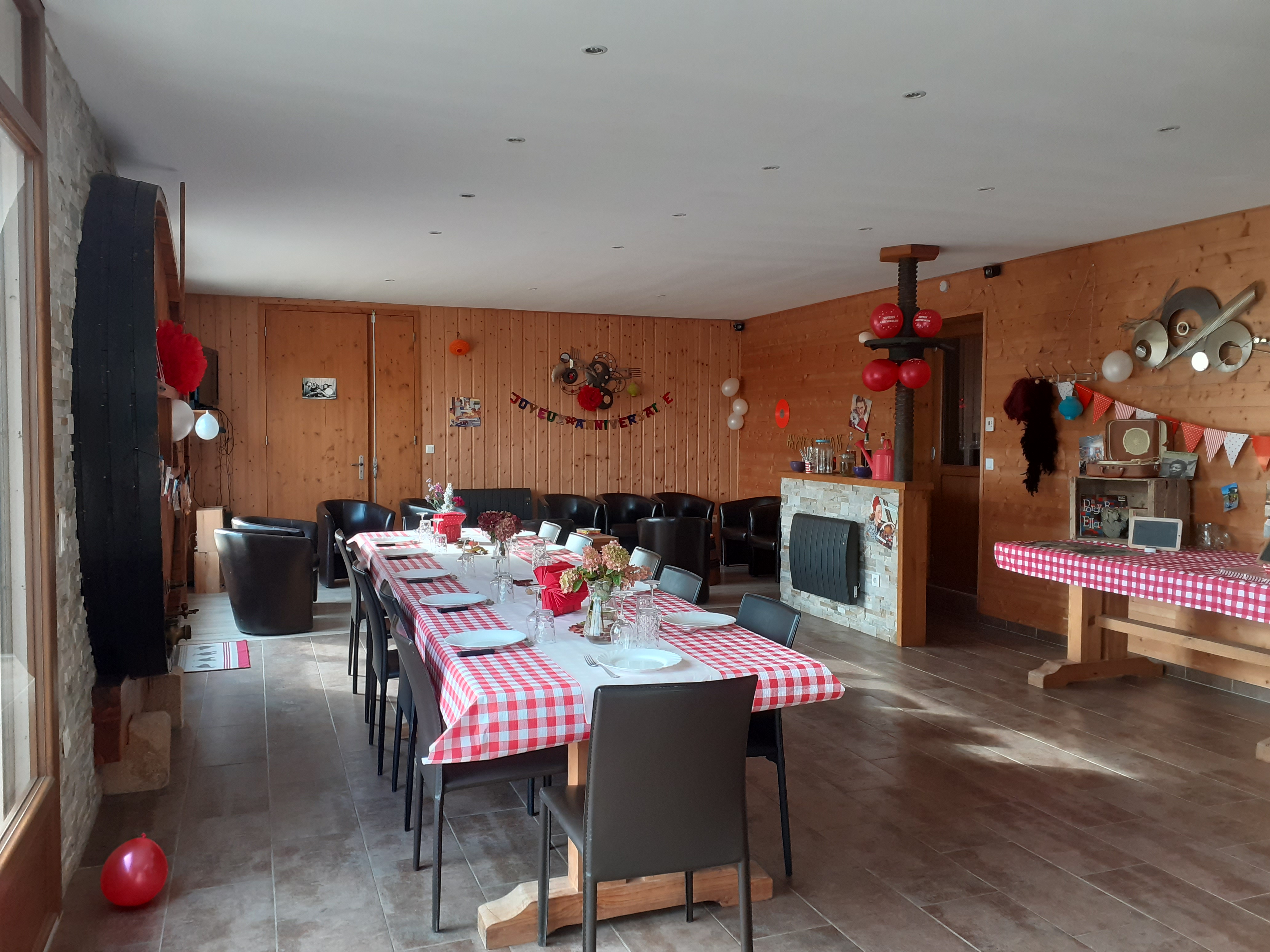 Gîte d'étape et de groupe (12 pers.). Rez-de-chaussée : vaste pièce de jour style caveau , coin-salon, poële à bois, TV. Cuisine toute équipée, semi-professionnelle. Etage : accès de plain-pied dans un sas équipé de porte manteaux, placard à chaussures : 3 chambres style chalet disposant chacune de sanitaires privés (douche, lavabo, wc). 2 chambres 4 lits 1 personnes, 1 chambre 1 lit 2 personnes, 2 lits 1 personne. Au même niveau que les chambres, terrasse en bois, salon de jardin. Cour avec salon de jardin en bois, parking, espace pour jeu de pétanque. Bloc sanitaire avec wc, lavabo, lave-linge. Situé sur une exploitation viticole.