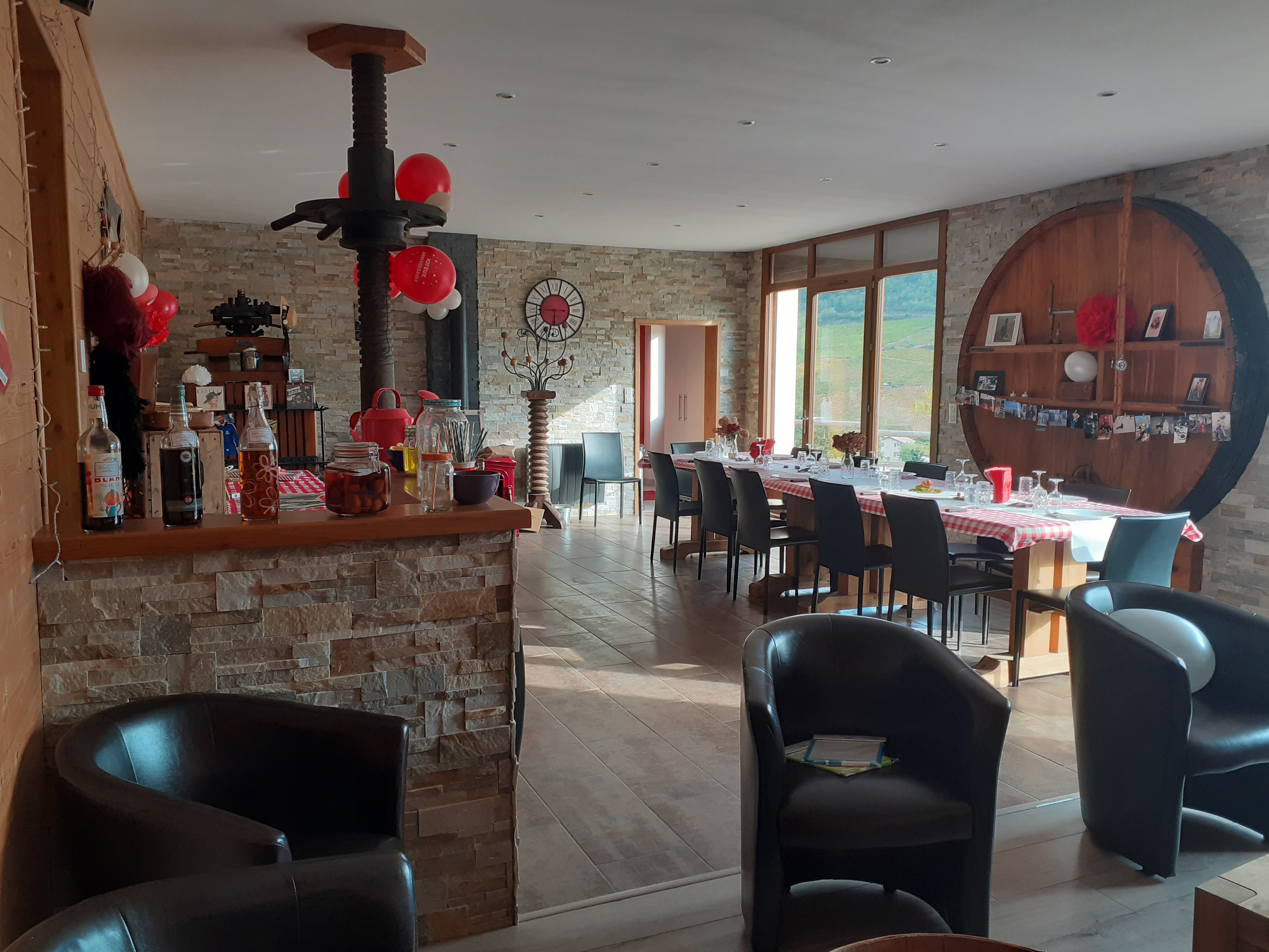 Notre gite de 12 places est le fruit du travail du vigneron, aménagé, décoré dans un style authentique de la région avec une façade de vieux foudre et une vis de pressoir. Grand espace de stationnement et de jeux réservé au gîte.