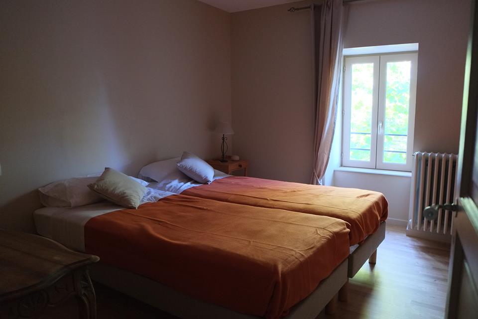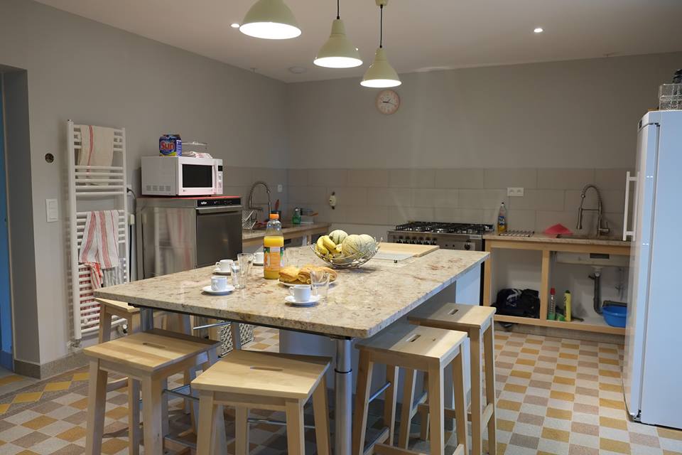 Ancienne ferme entièrement rénovée alliant confort et authenticité, ce gîte de groupe dispose d’un grand réfectoire de 50 m², d’une cuisine équipée, de 13 chambres et 11 salles de bain privatives ainsi que de deux espaces détente et d’une cave voûtée pour partager des moments conviviaux. La capacité maximale est de 32 personnes, location en gestion libre. L’absence de vis-à-vis et d’habitation à proximité sera garante de votre séjour en toute tranquillité. Le gîte dispose également de nombreux aménagements extérieurs tels qu’une cour intérieure (sécurisante pour les familles) ainsi que d’une cuisine d’été avec barbecue et d’espaces de jeux extérieurs (football, pétanque, etc…) tout en vous offrant un magnifique panorama sur les reliefs du Haut-Beaujolais.