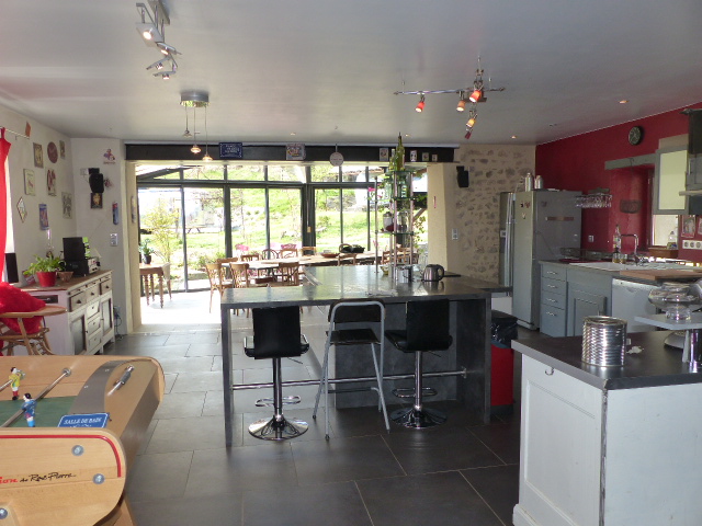 Une grande cuisine américaine ouverte sur la véranda, permet de profiter de la vue sur le jardin.